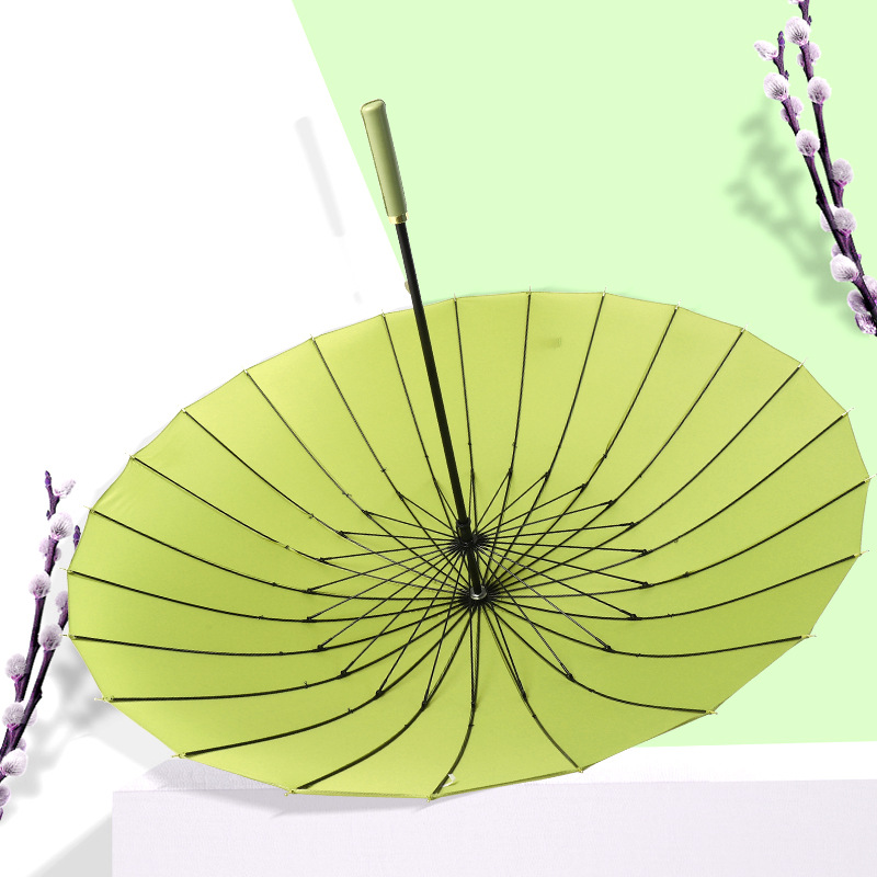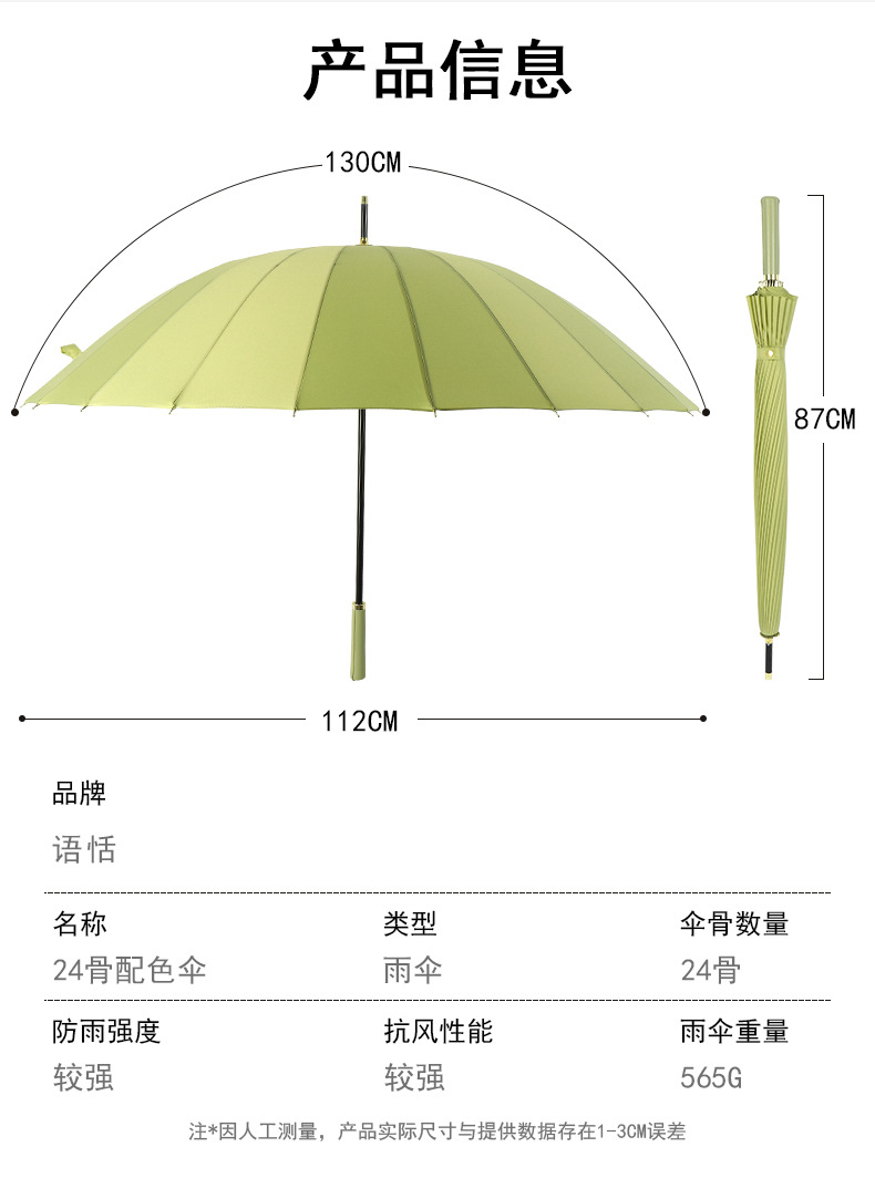小清新24骨长柄雨伞大号男士全纤维加固配色皮柄直杆伞抗风加厚伞