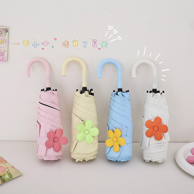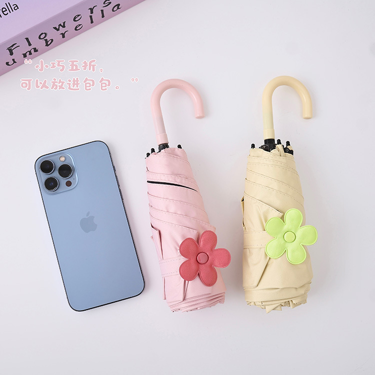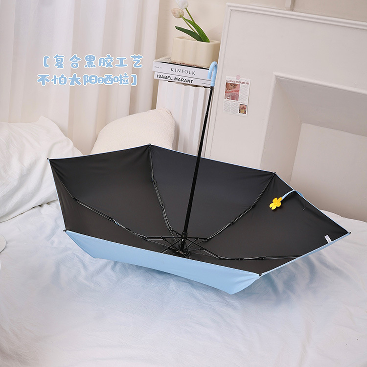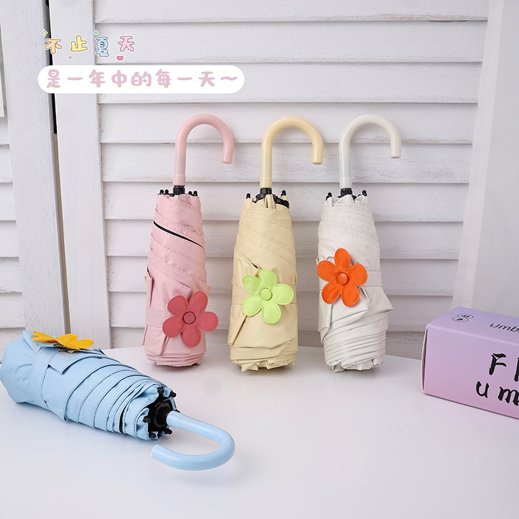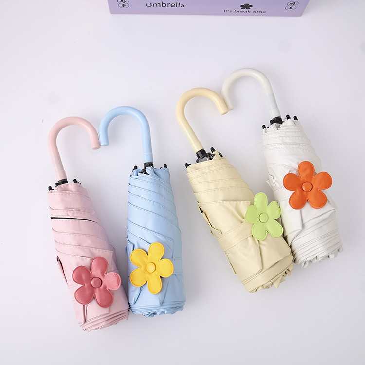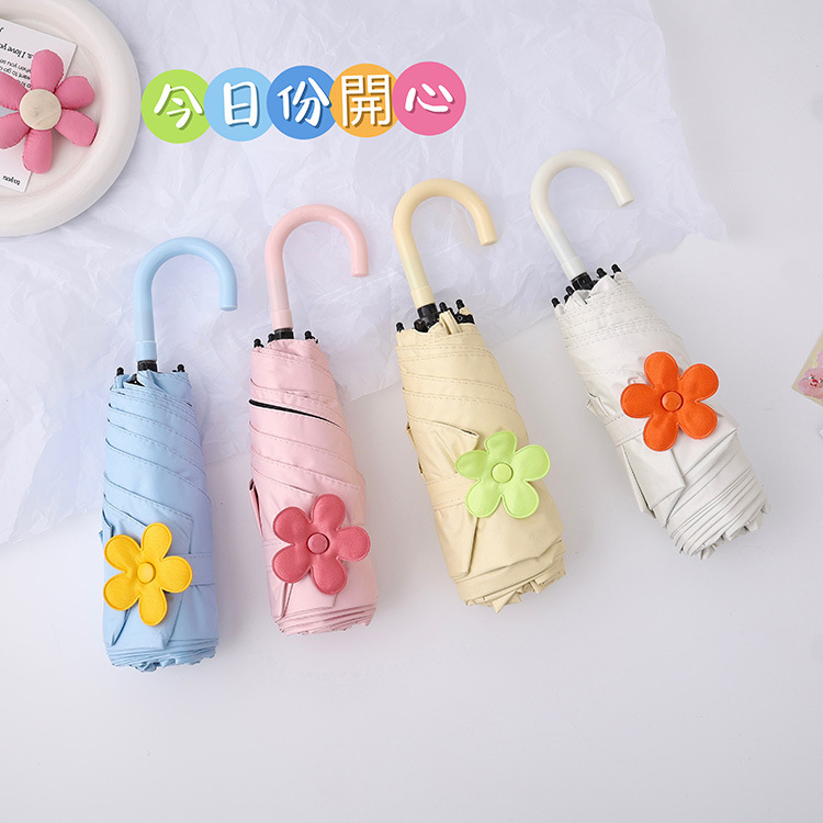 新款五折6骨黑胶伞弯钩手柄防晒防紫外线雨伞个性创意 晴雨两用伞