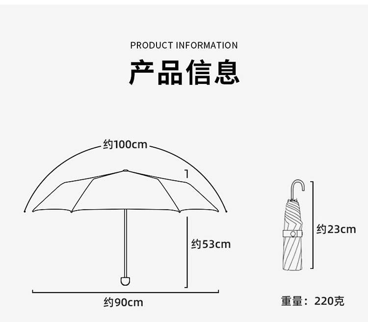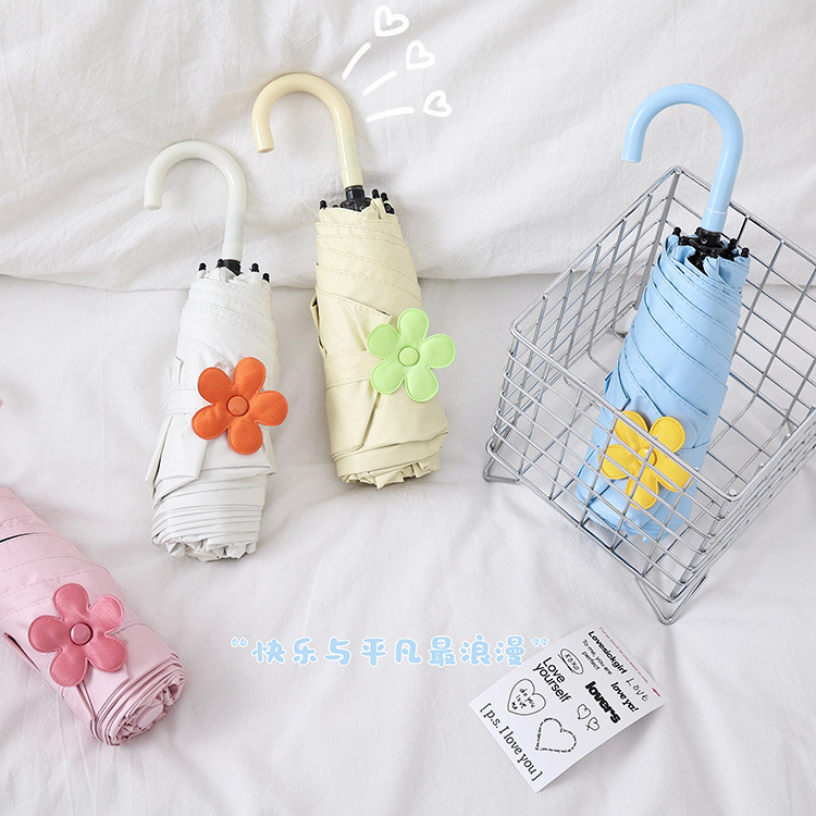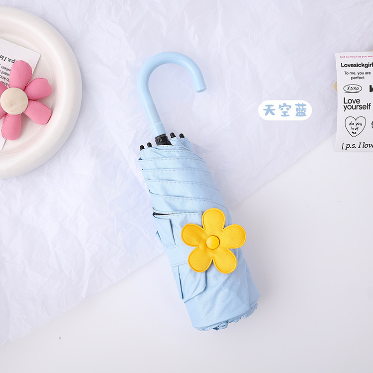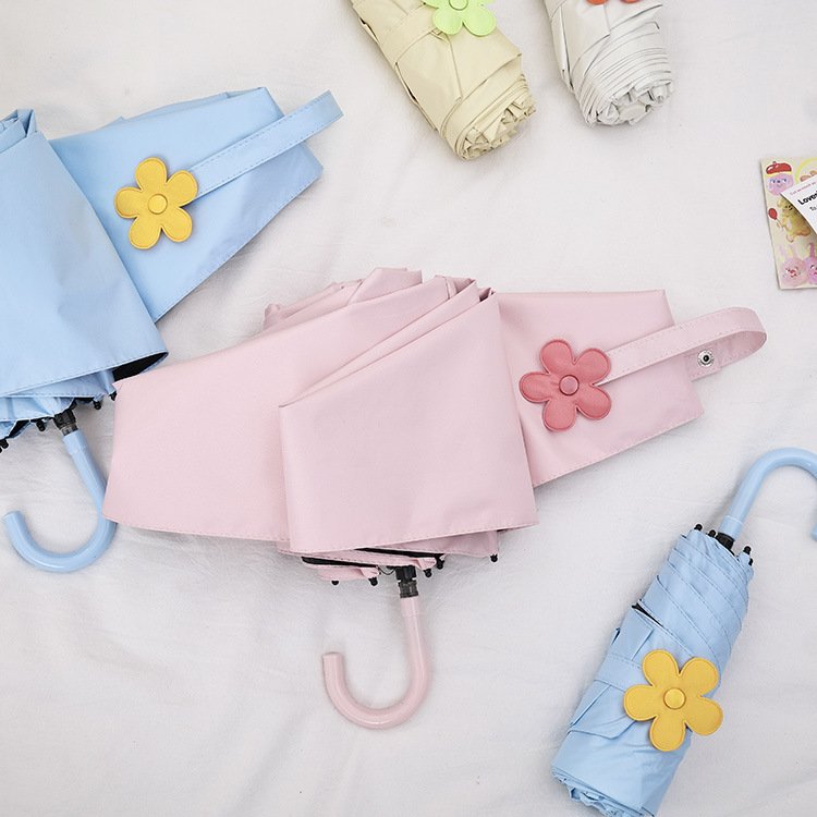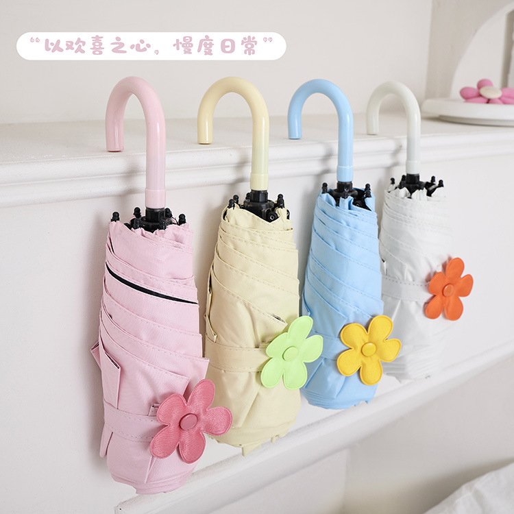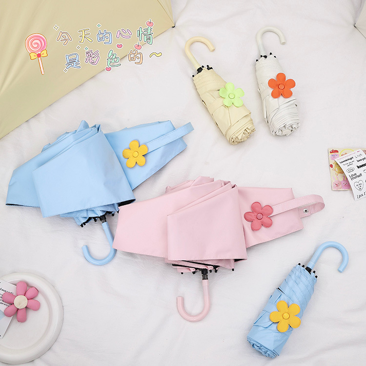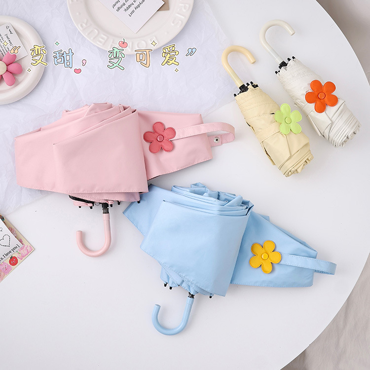 新款五折6骨黑胶伞弯钩手柄防晒防紫外线雨伞个性创意 晴雨两用伞
