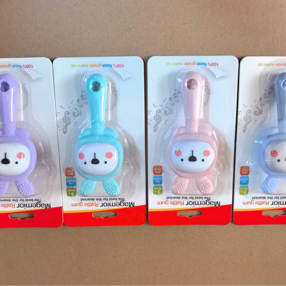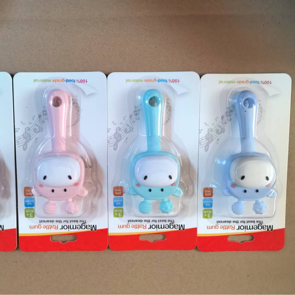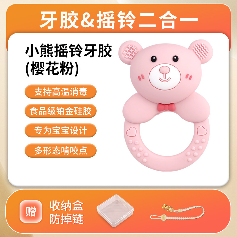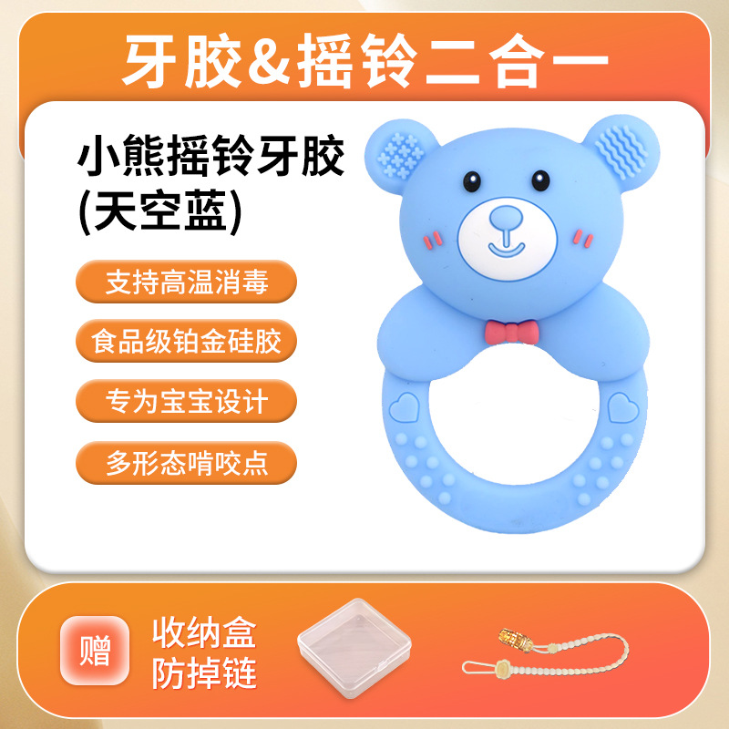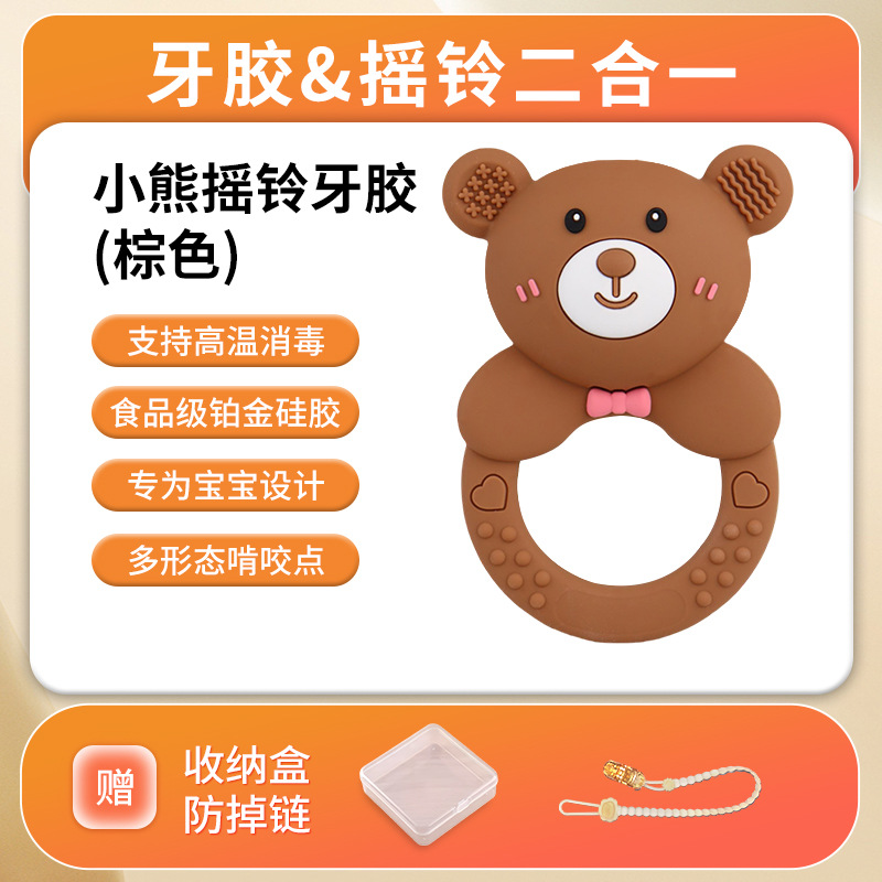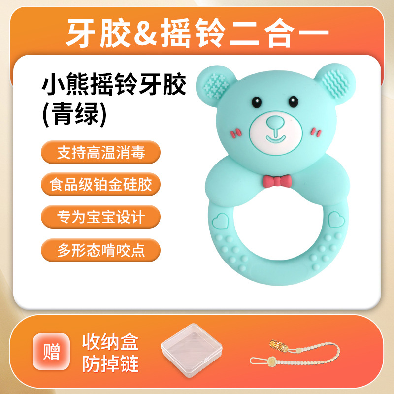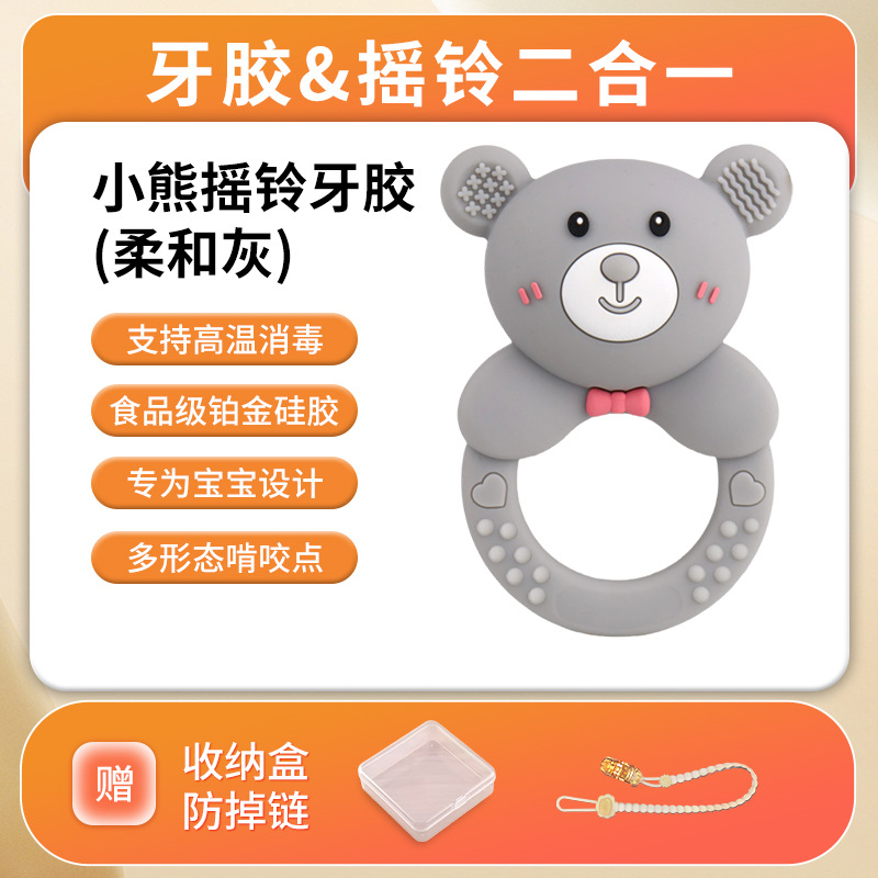 新款宝宝安抚牙胶婴儿硅胶摇铃牙胶防吃手咬咬乐宝宝益智手摇铃