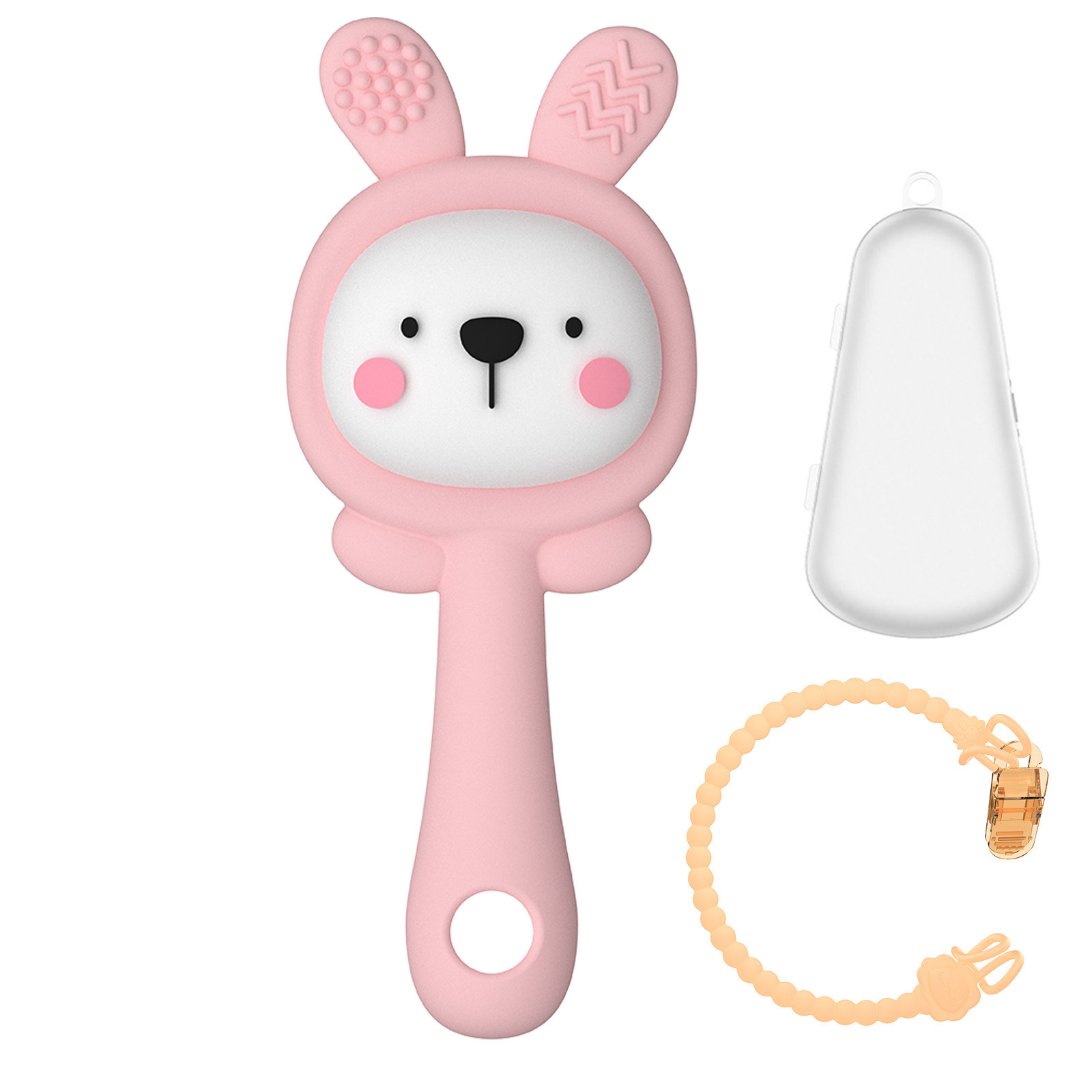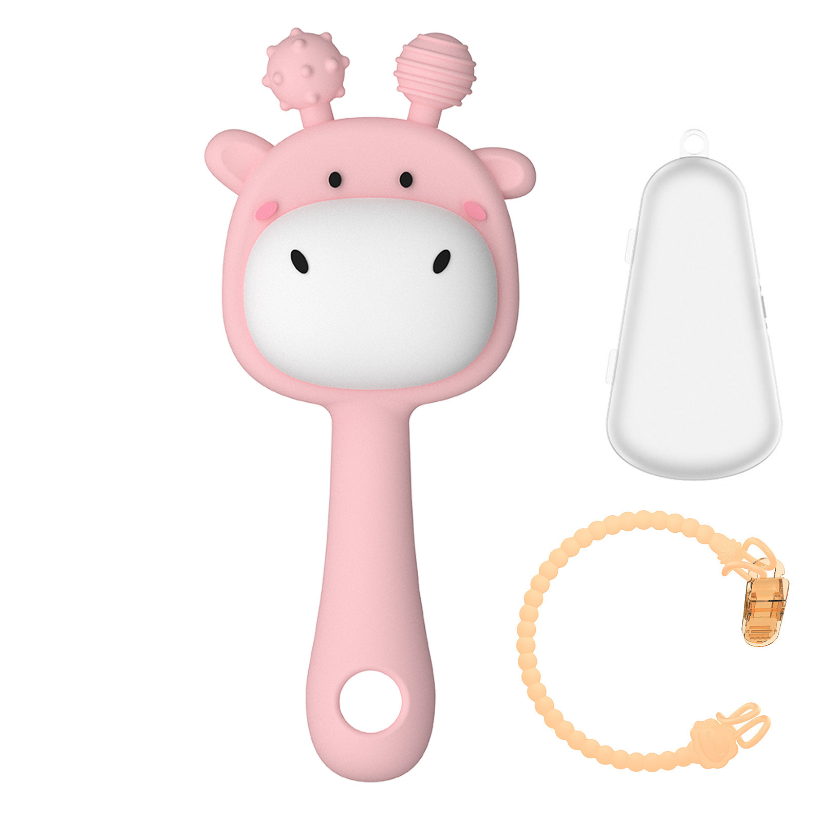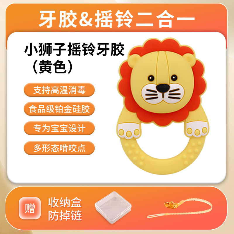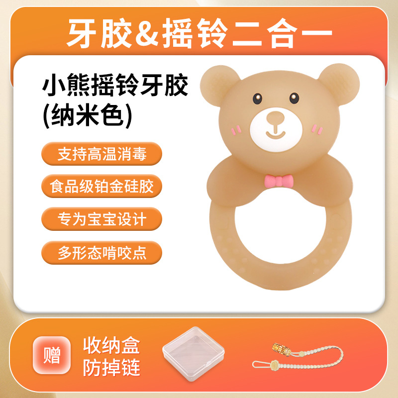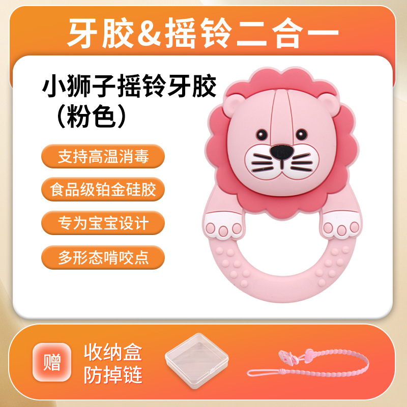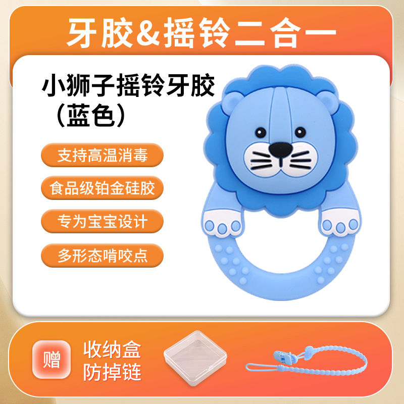 新款宝宝安抚牙胶婴儿硅胶摇铃牙胶防吃手咬咬乐宝宝益智手摇铃
