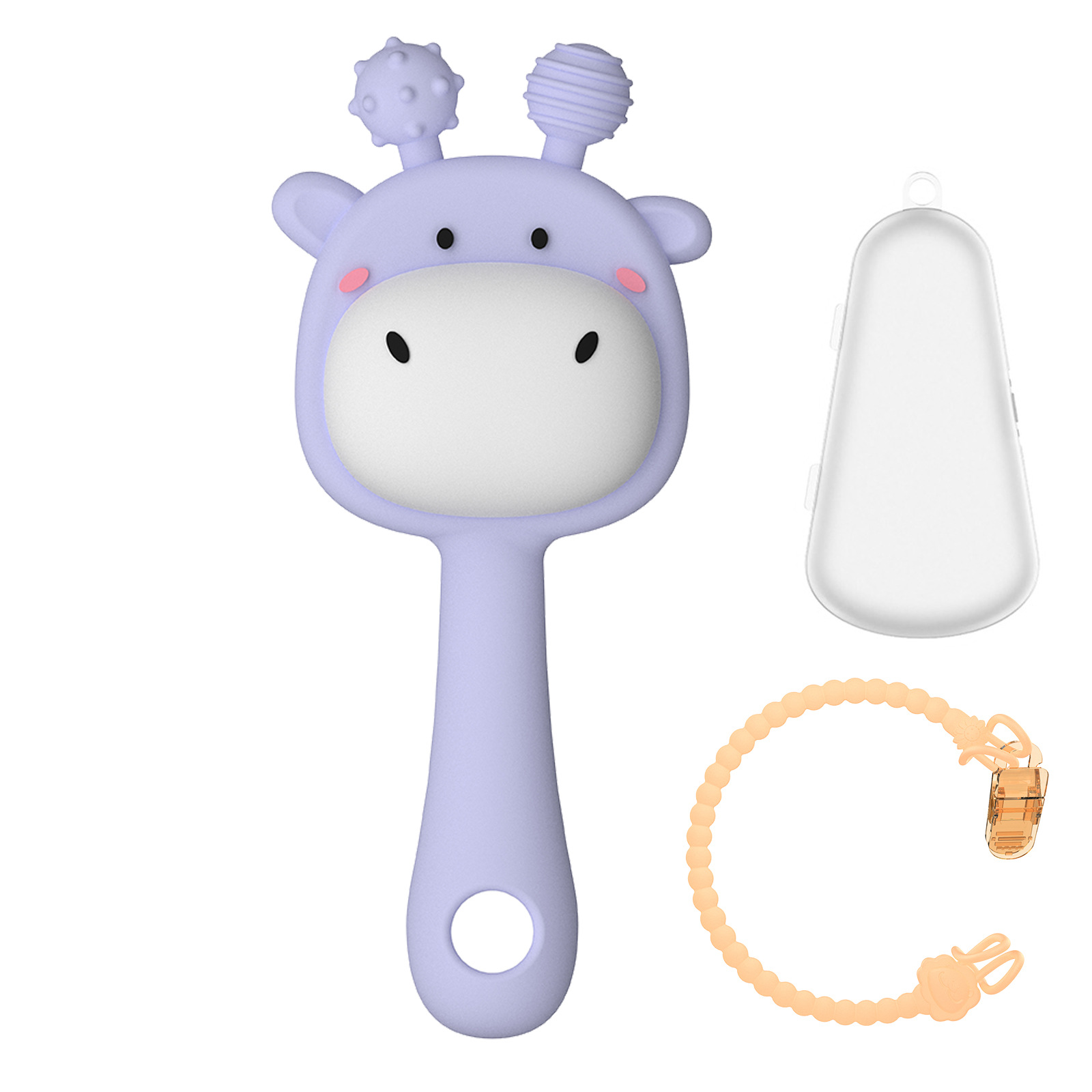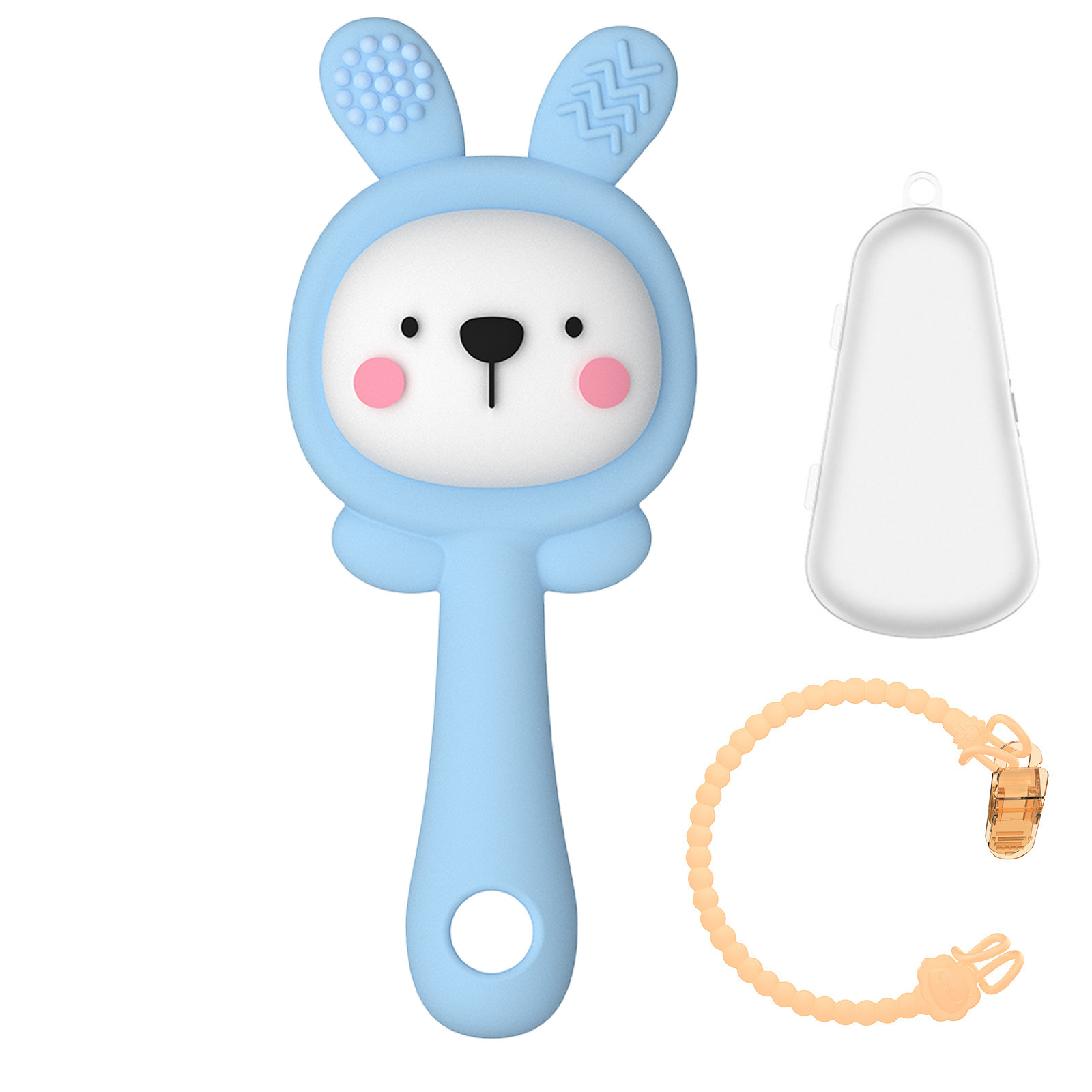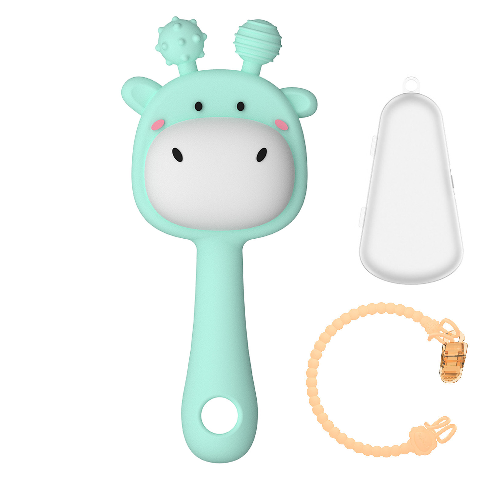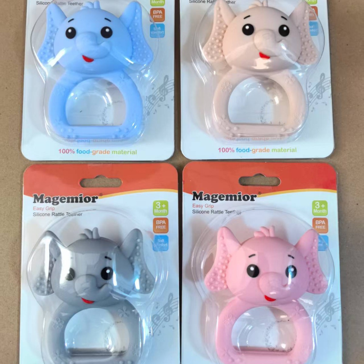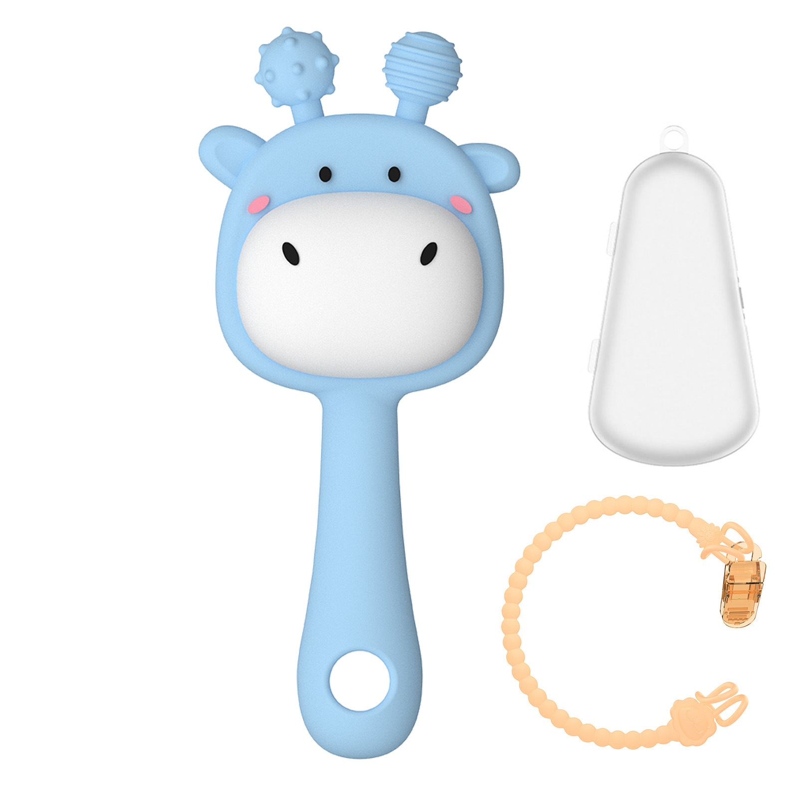 新款宝宝安抚牙胶婴儿硅胶摇铃牙胶防吃手咬咬乐宝宝益智手摇铃