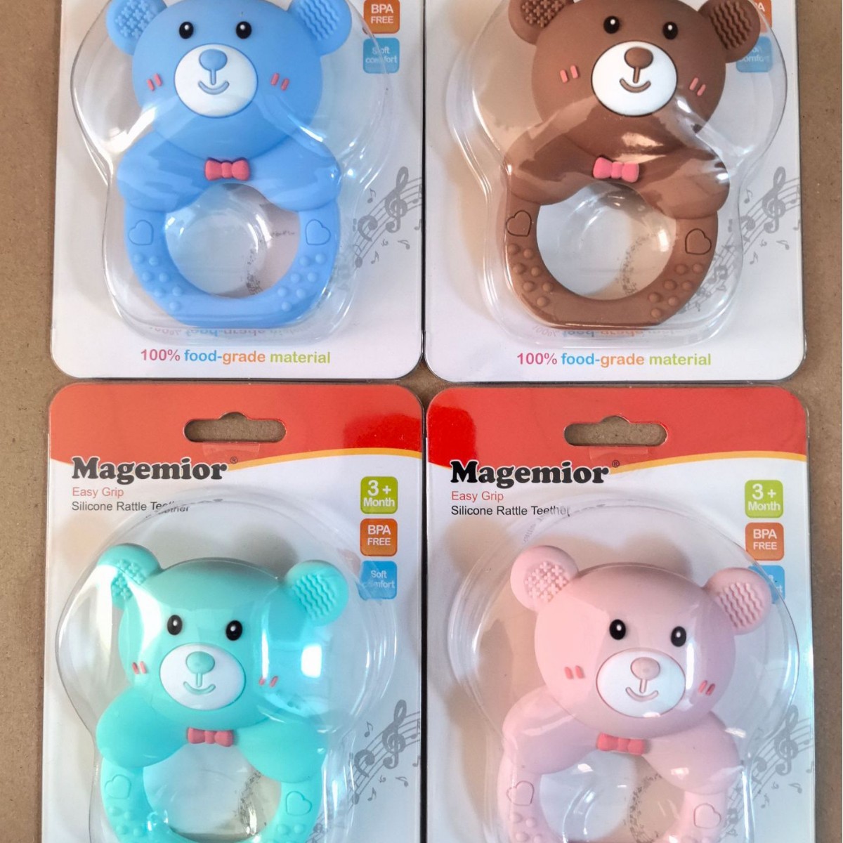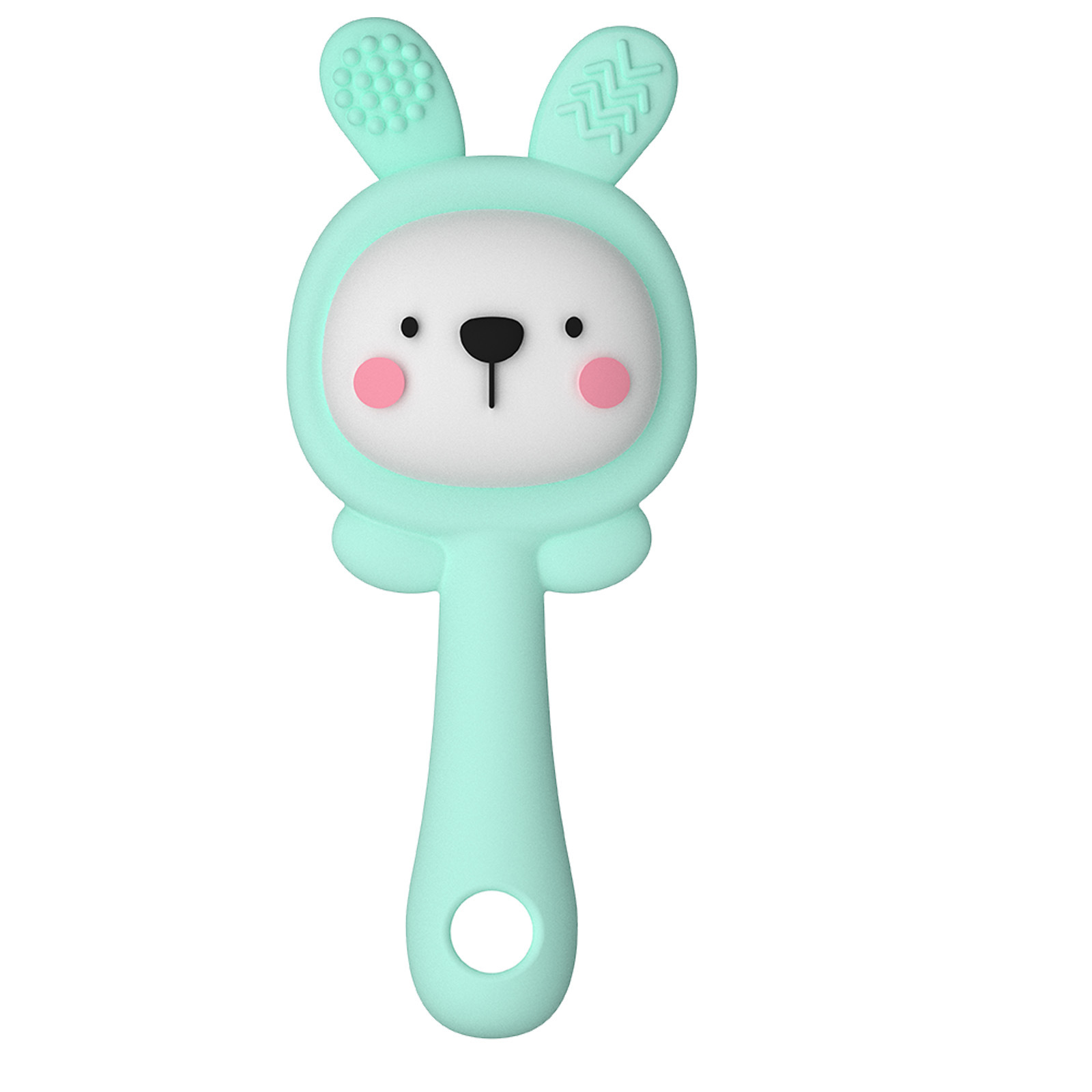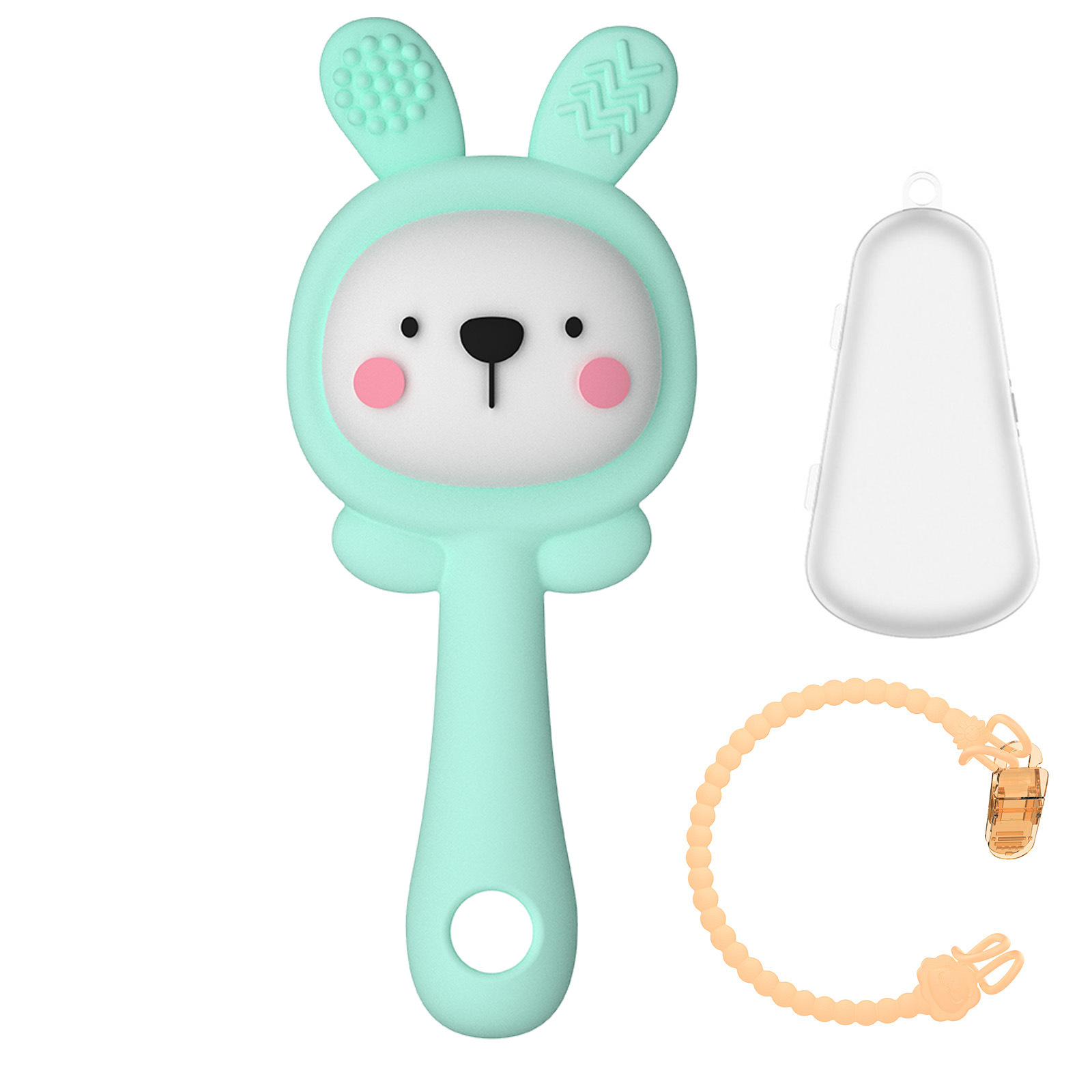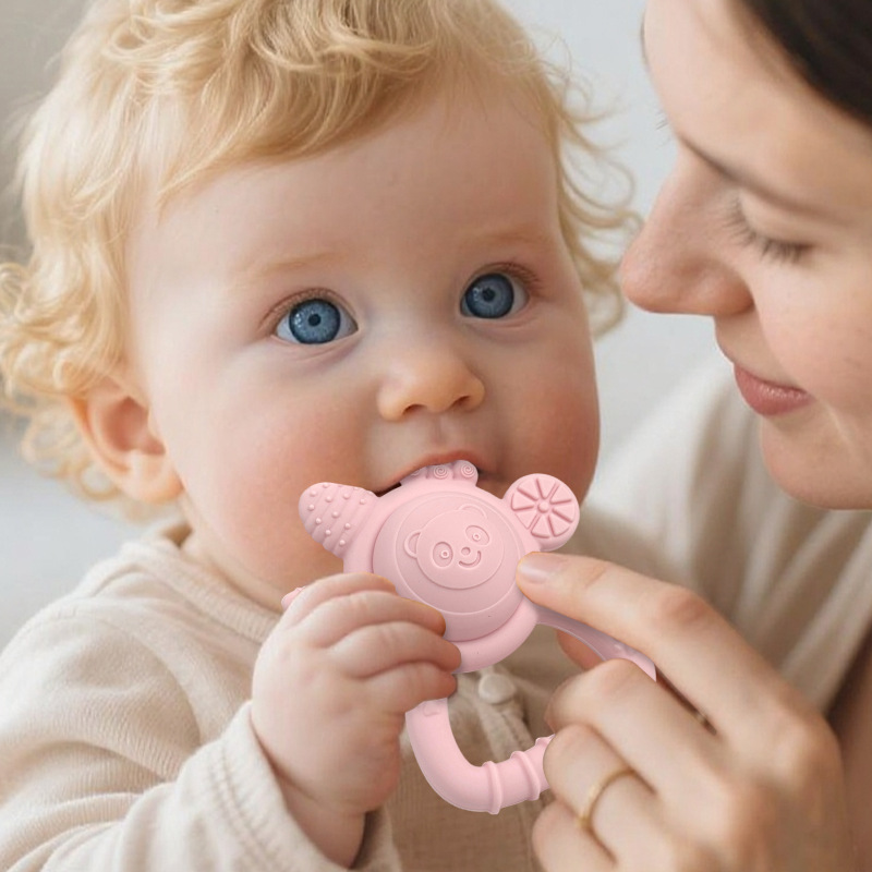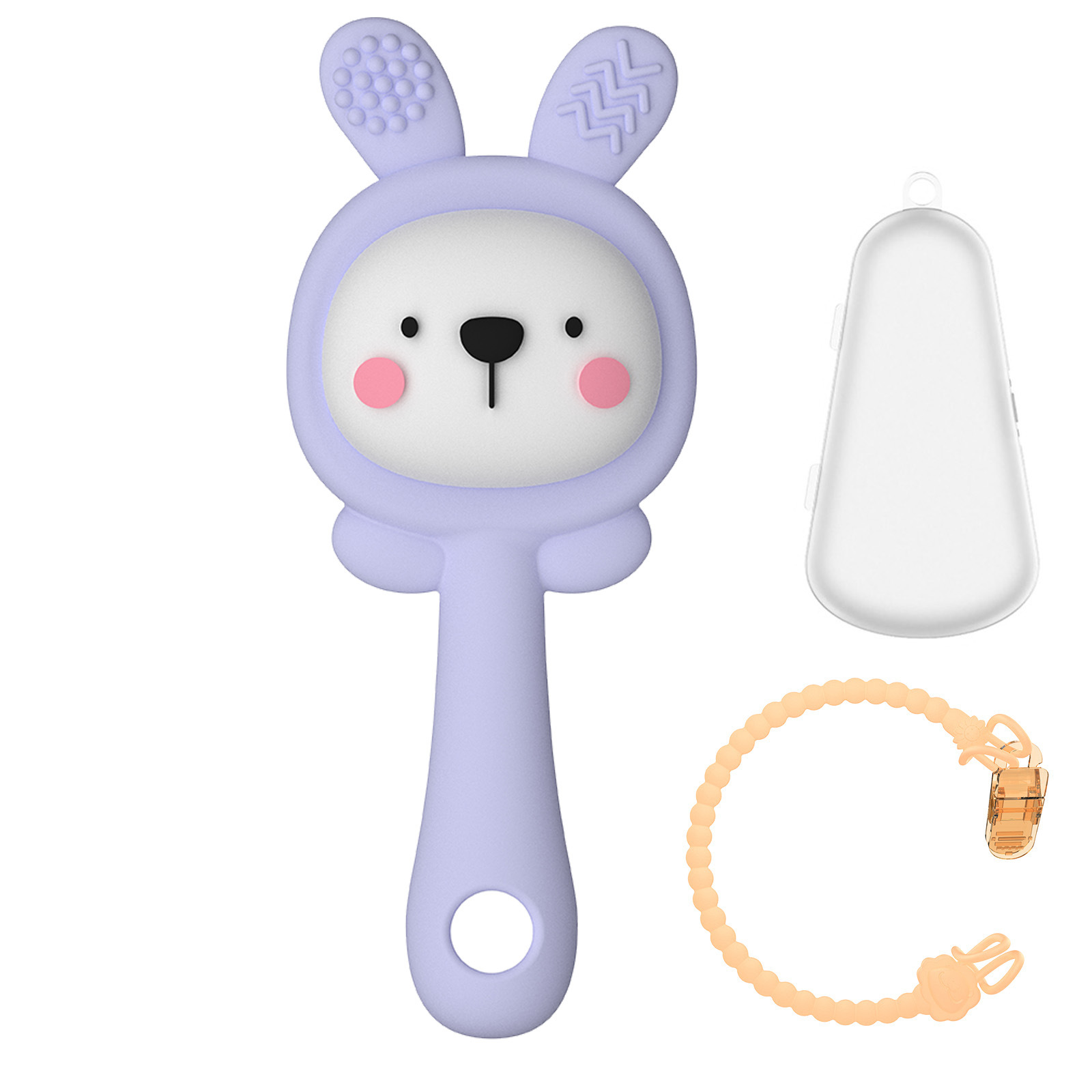 新款宝宝安抚牙胶婴儿硅胶摇铃牙胶防吃手咬咬乐宝宝益智手摇铃