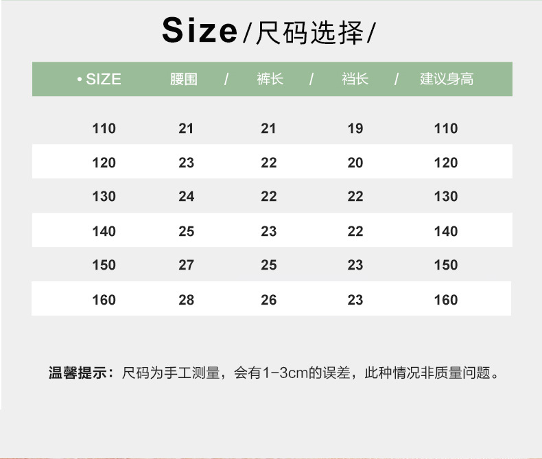 | size 110 is suitable for children weighing 25–30 jin.(110码适合体重25-30斤) | USD $0.0 | 19960 piece available |