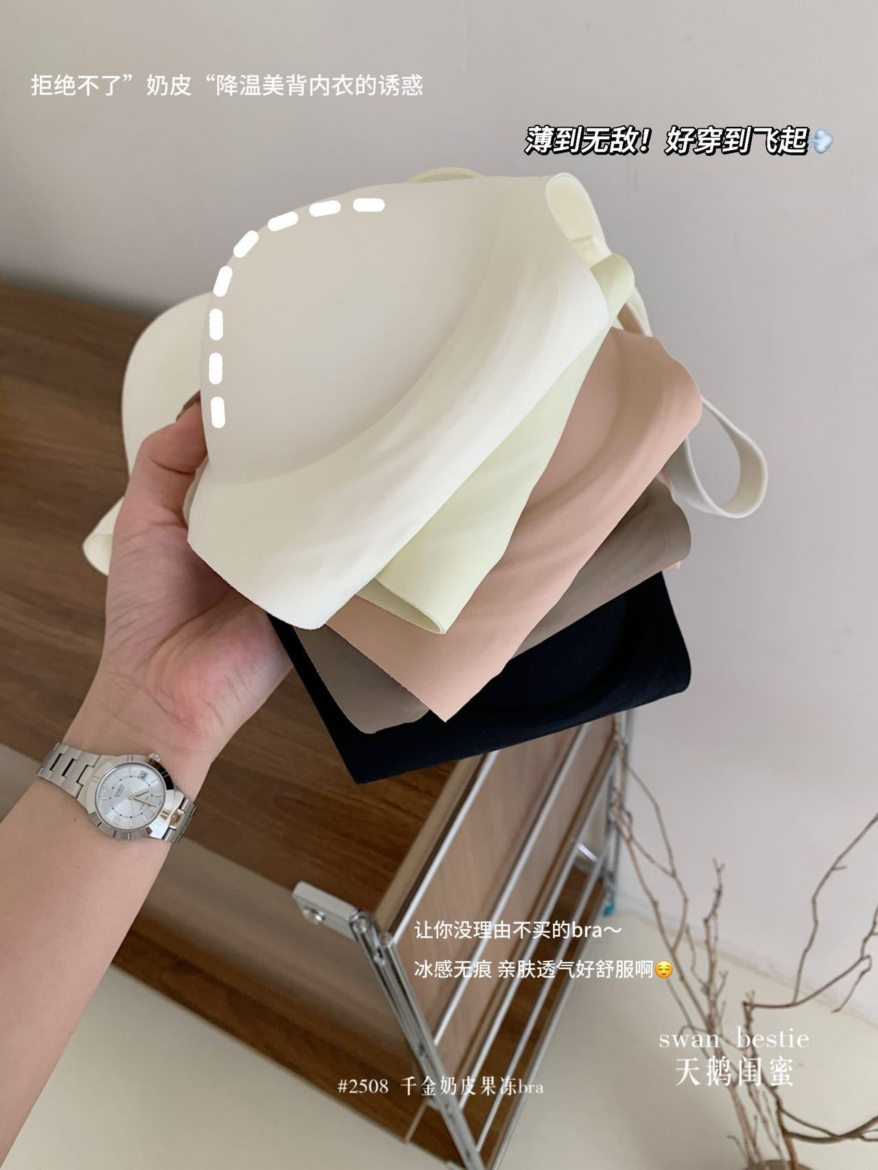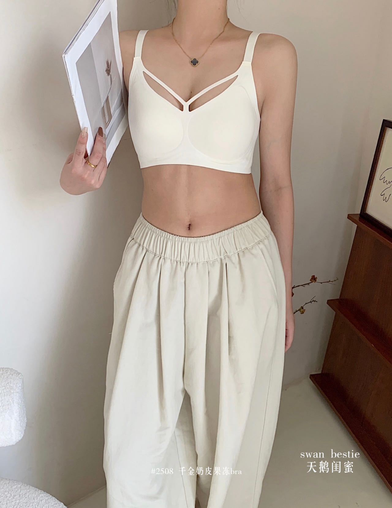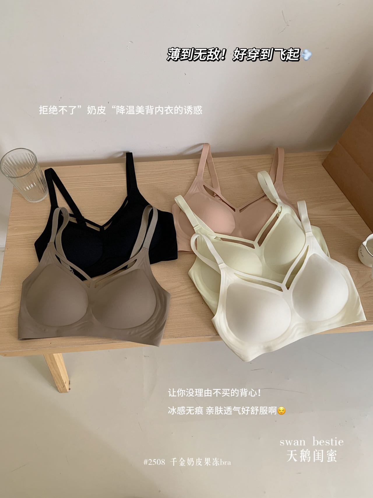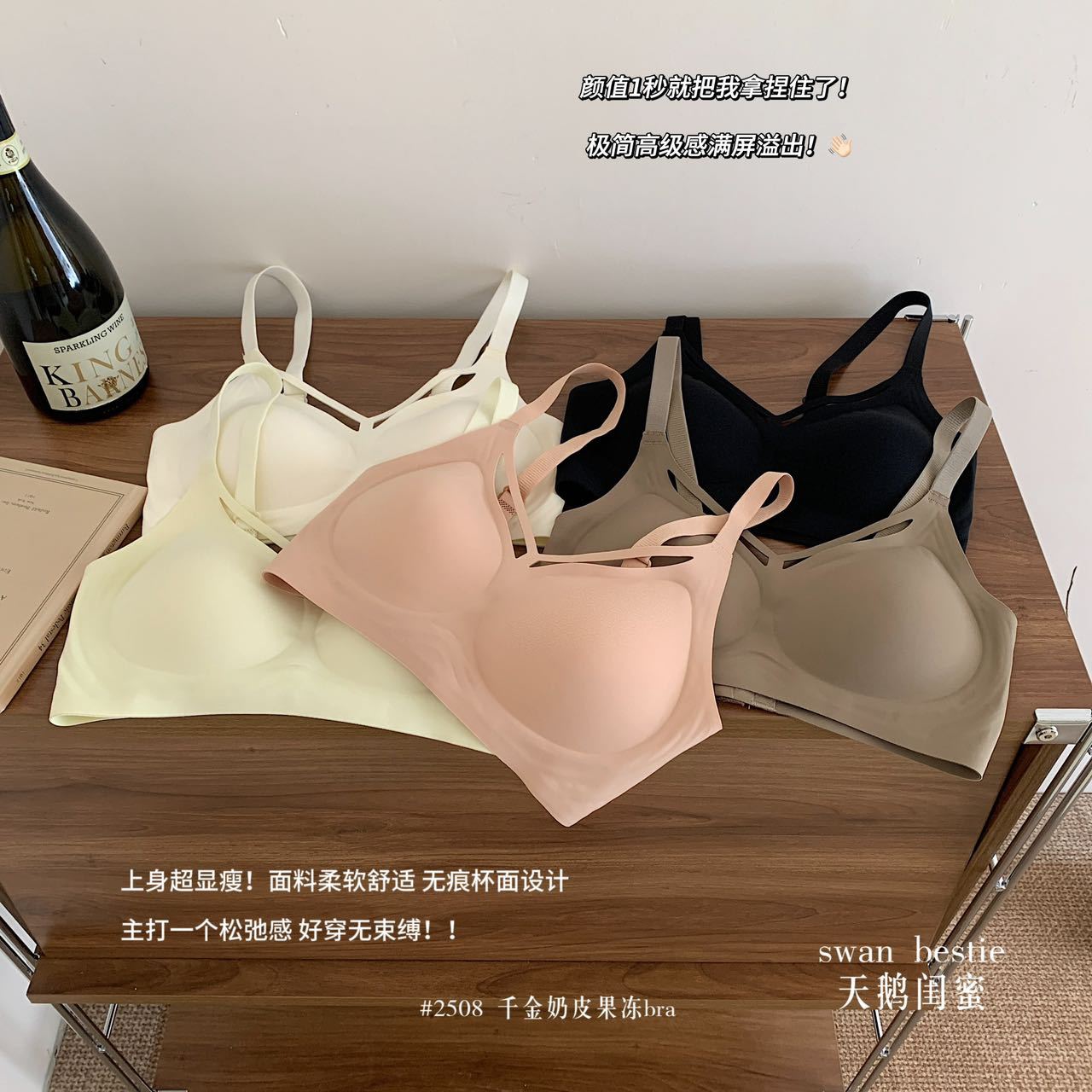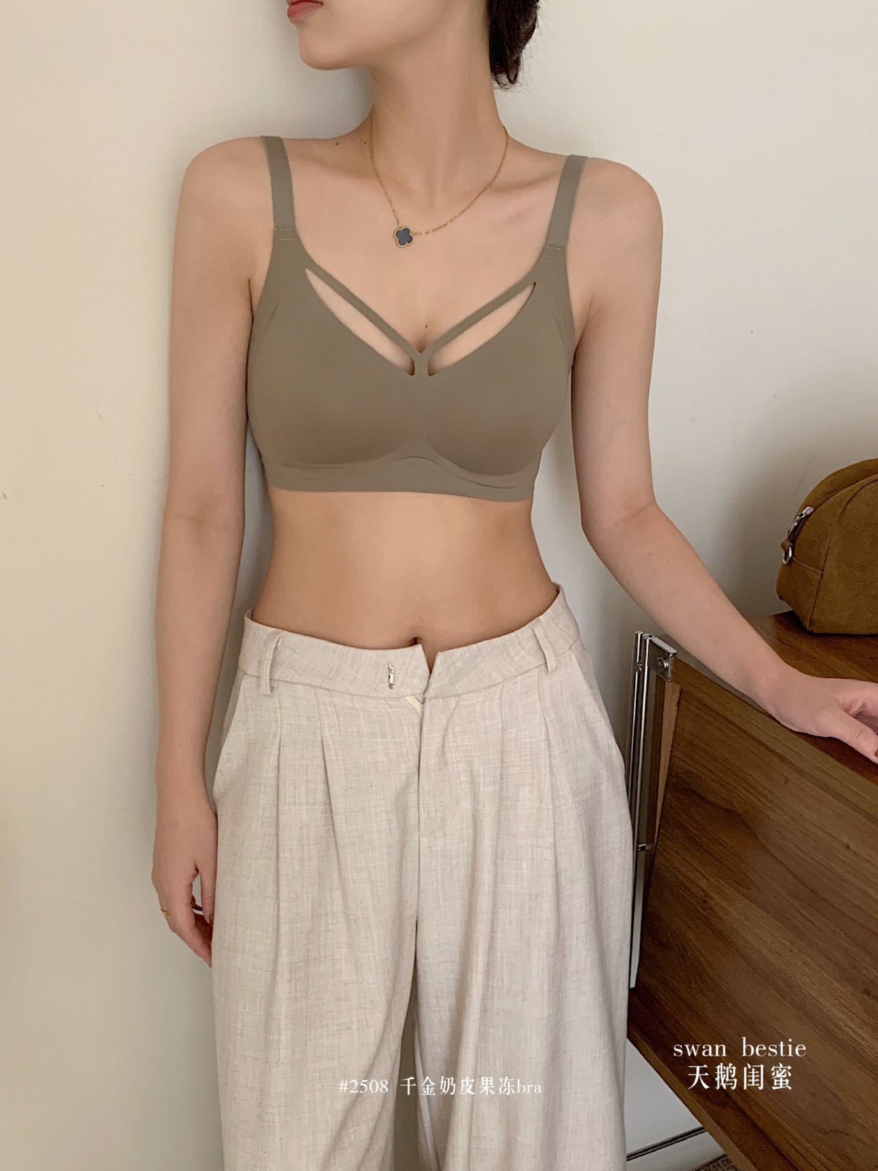 奶皮果冻条无痕内衣女小胸聚拢运动美背固定杯文胸罩薄款大胸显小