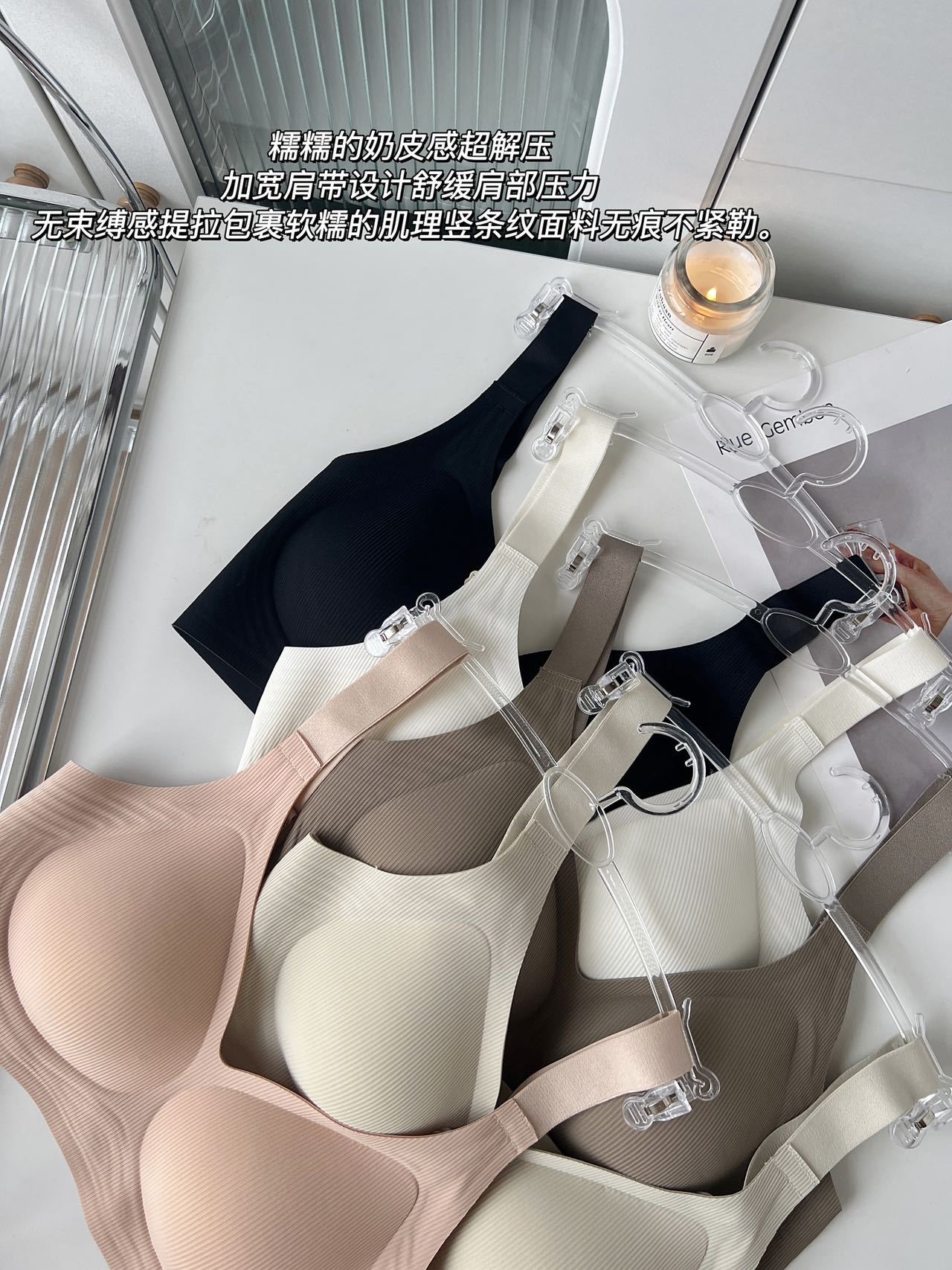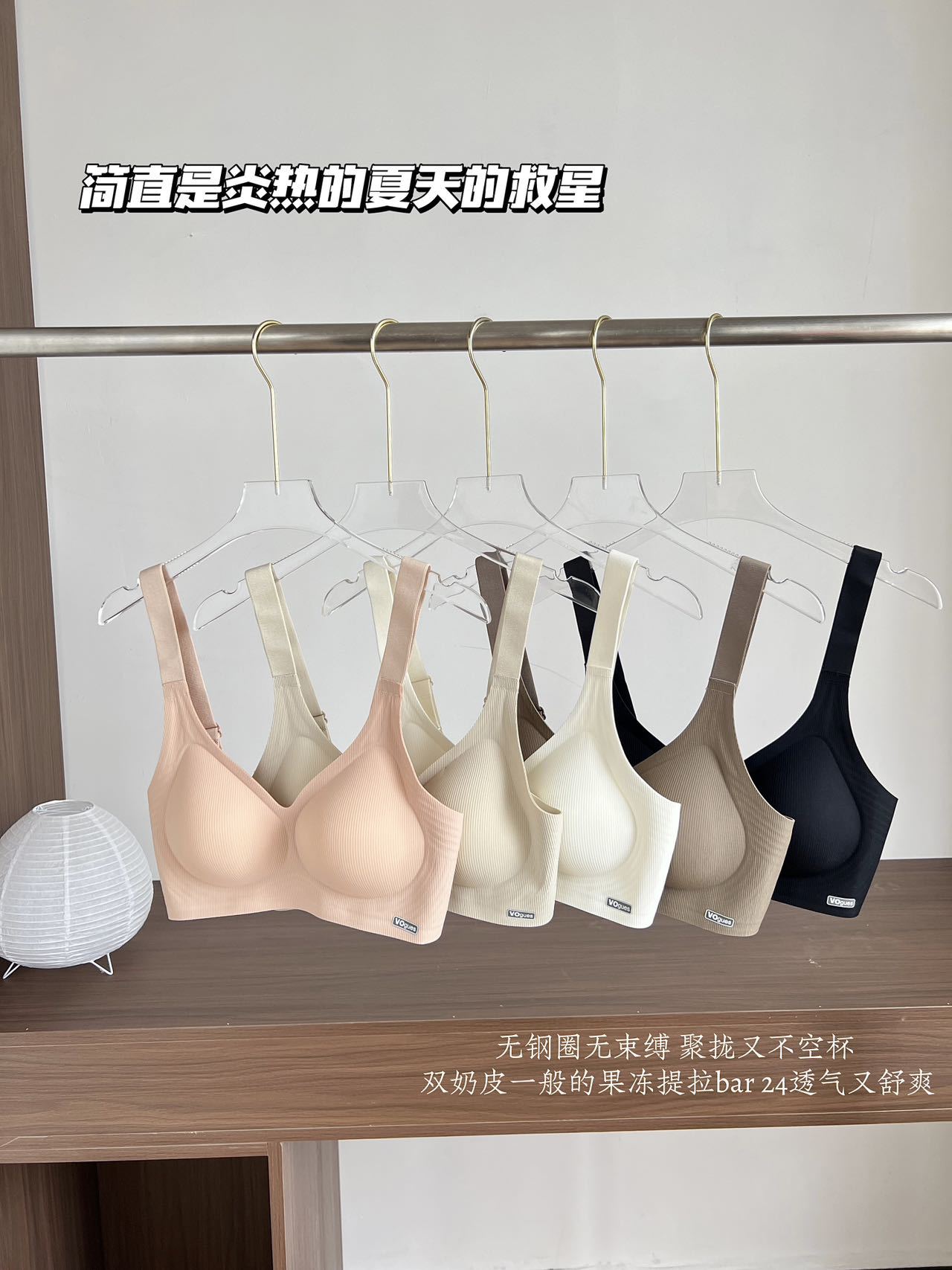 果冻条宽肩带内衣女小胸聚拢无钢圈上托运动无痕美背文胸夏季薄款