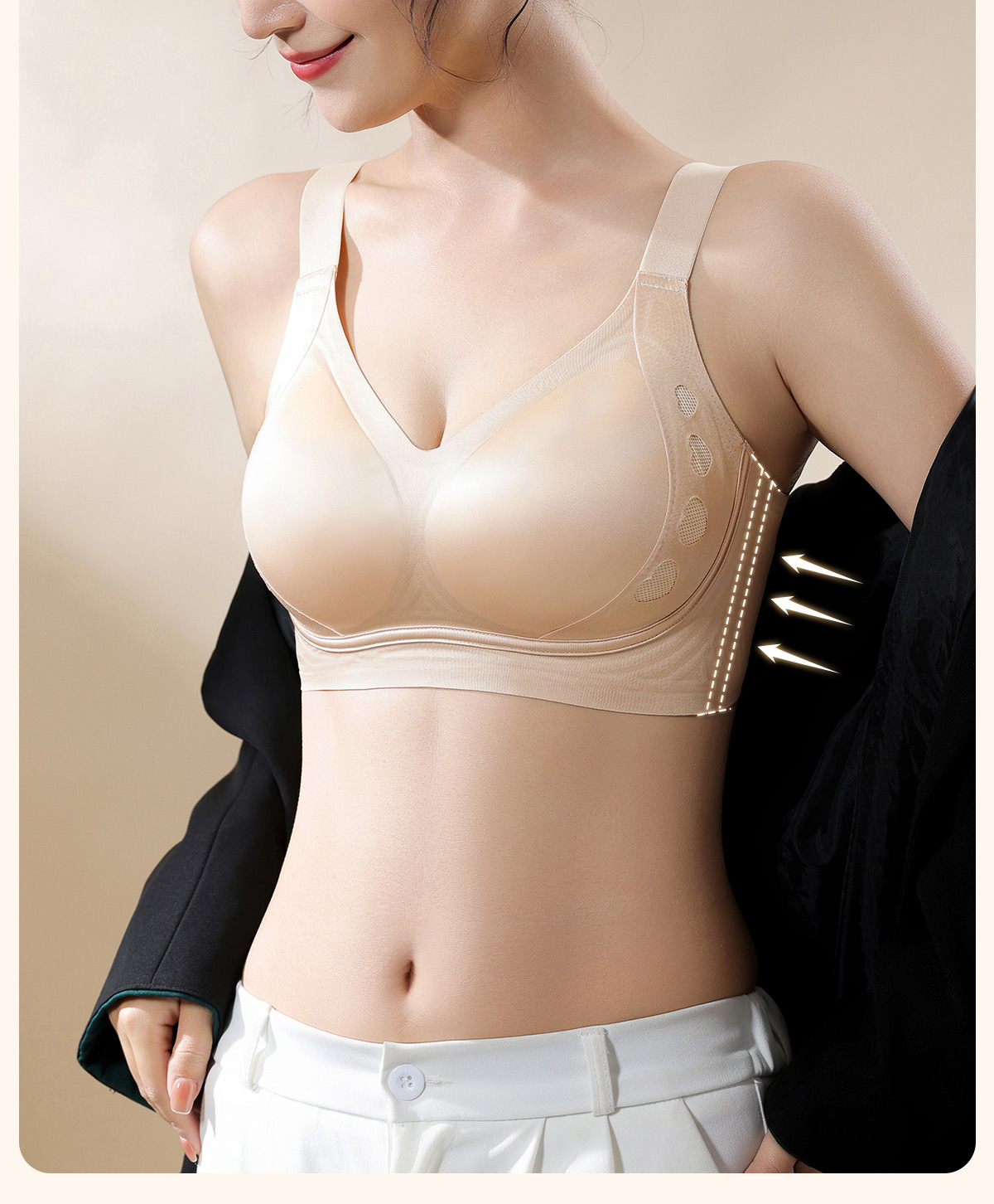 红色内衣大胸显小聚拢上托收副乳防下垂女无痕提拉美背固定杯文胸
