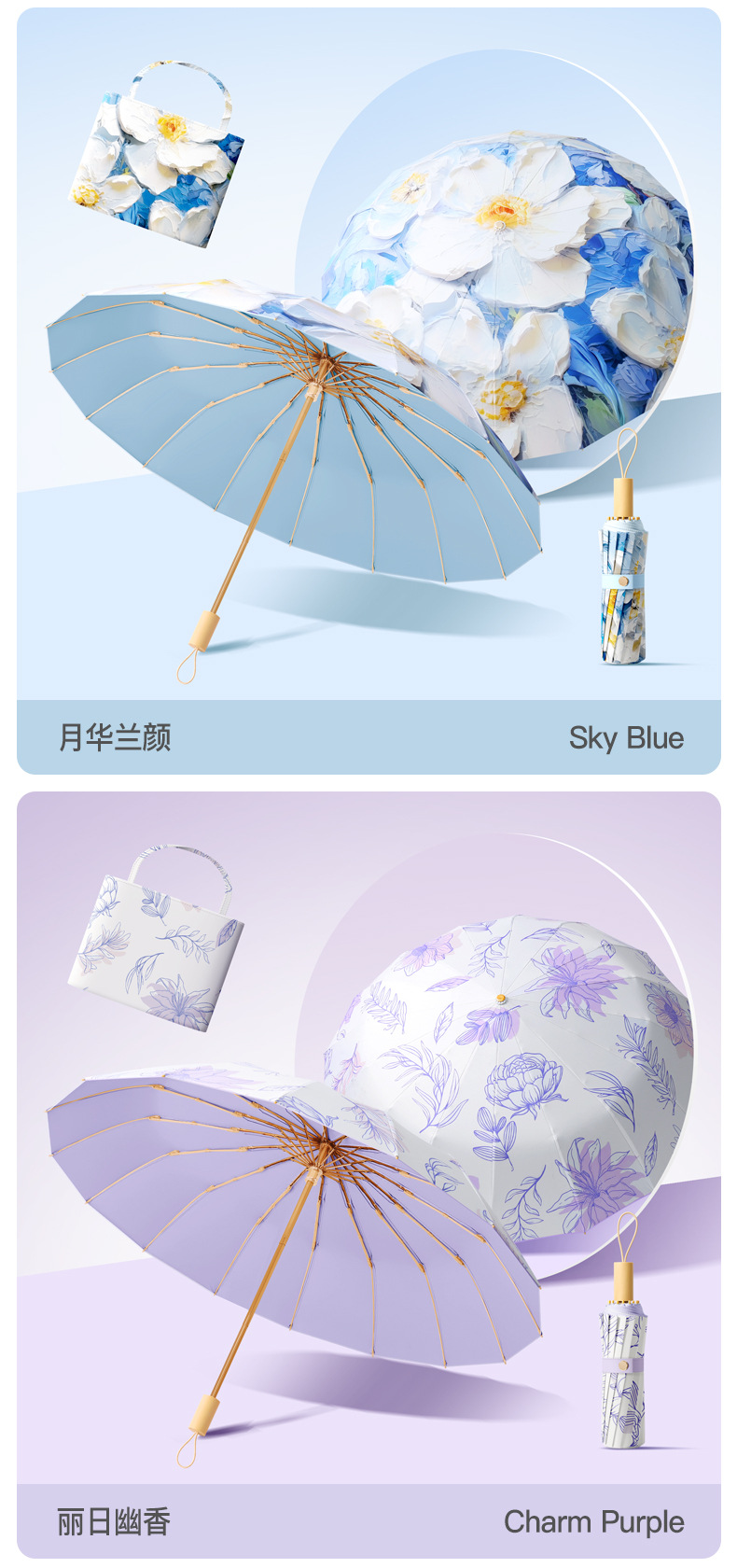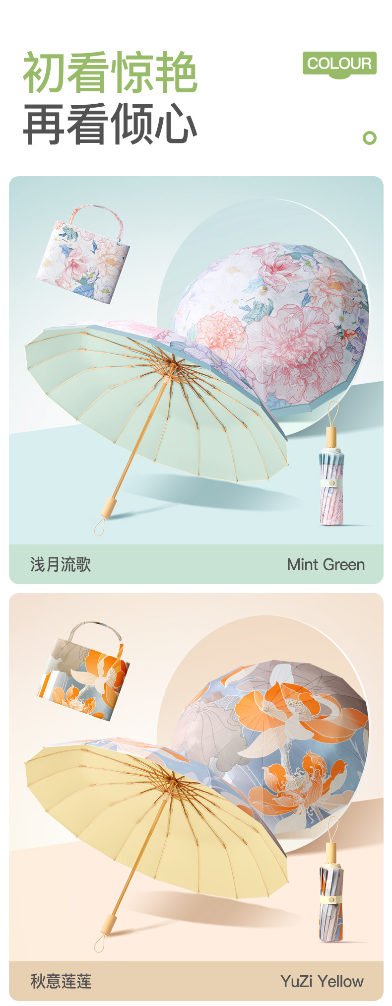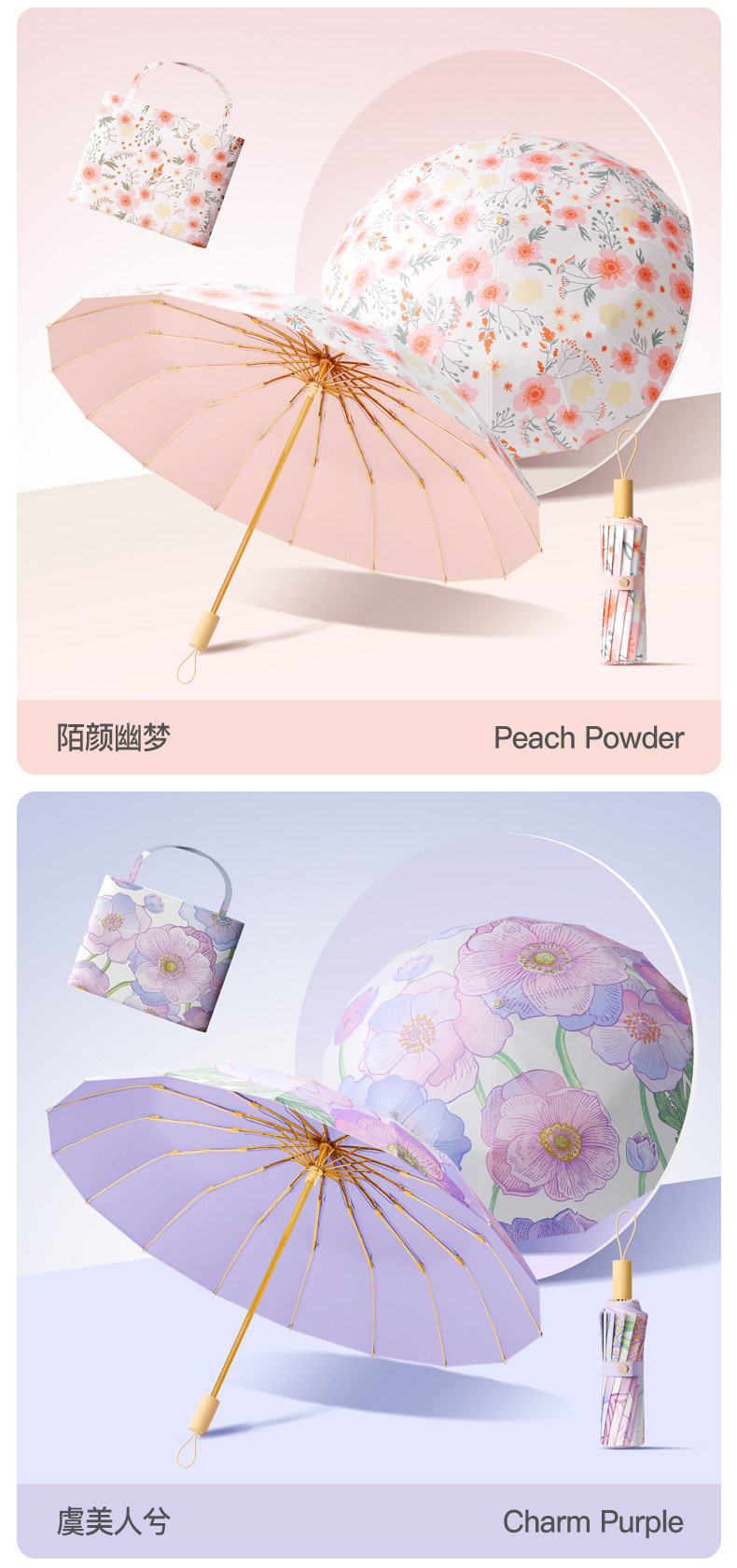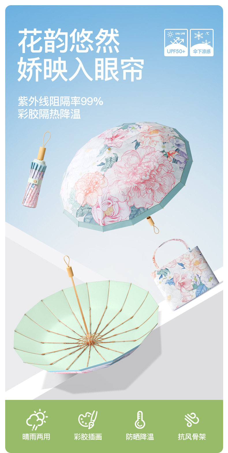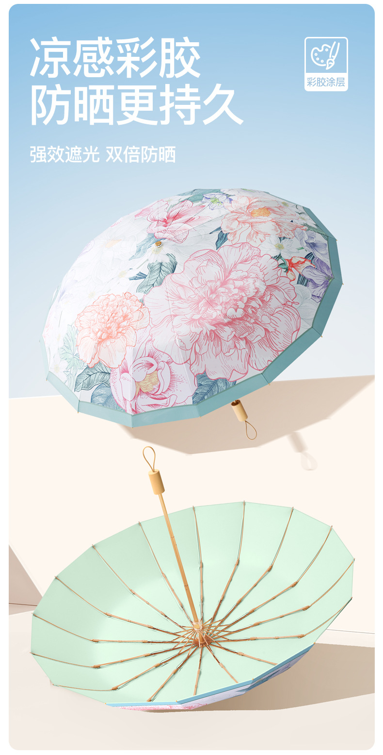 16骨高颜值遮阳伞新款复合彩胶防晒防紫外线法式晴雨两用雨伞定制