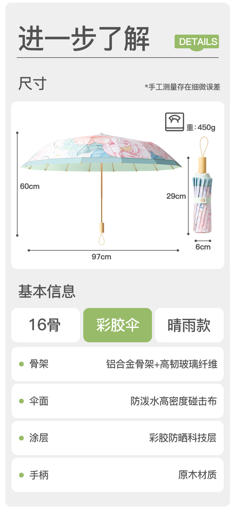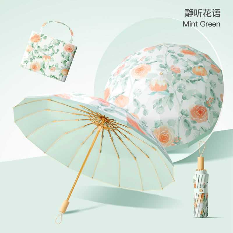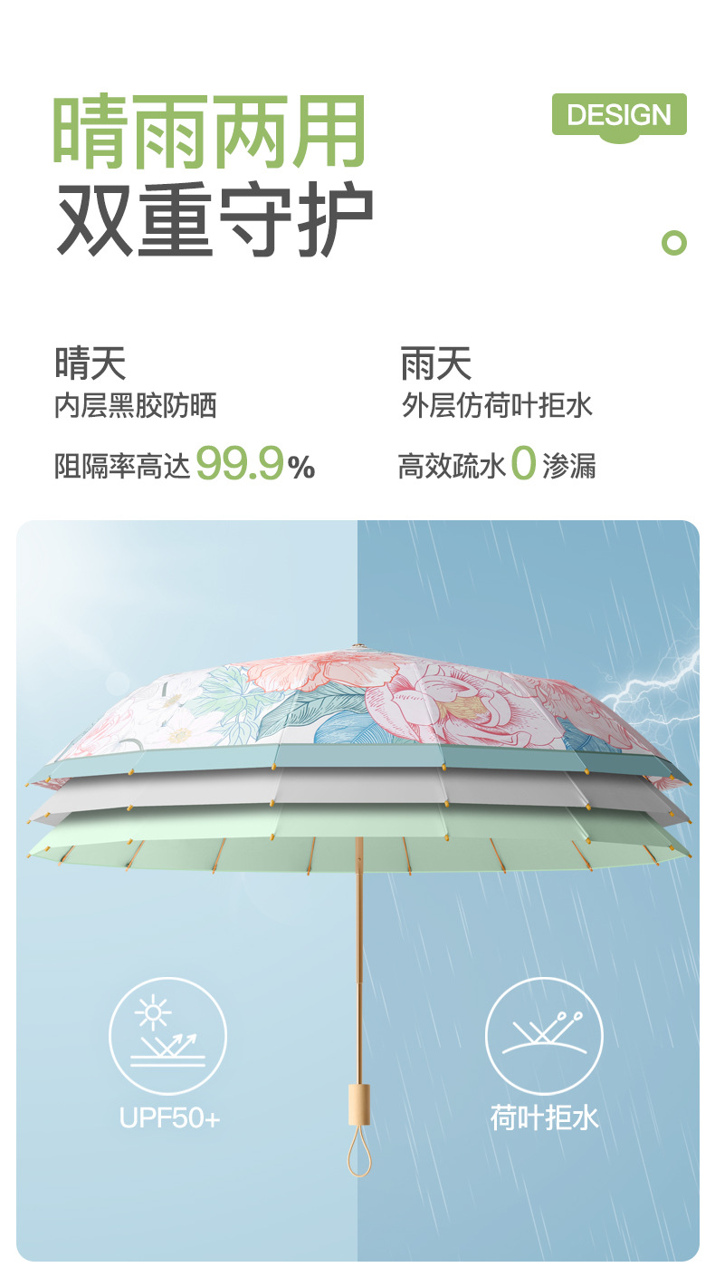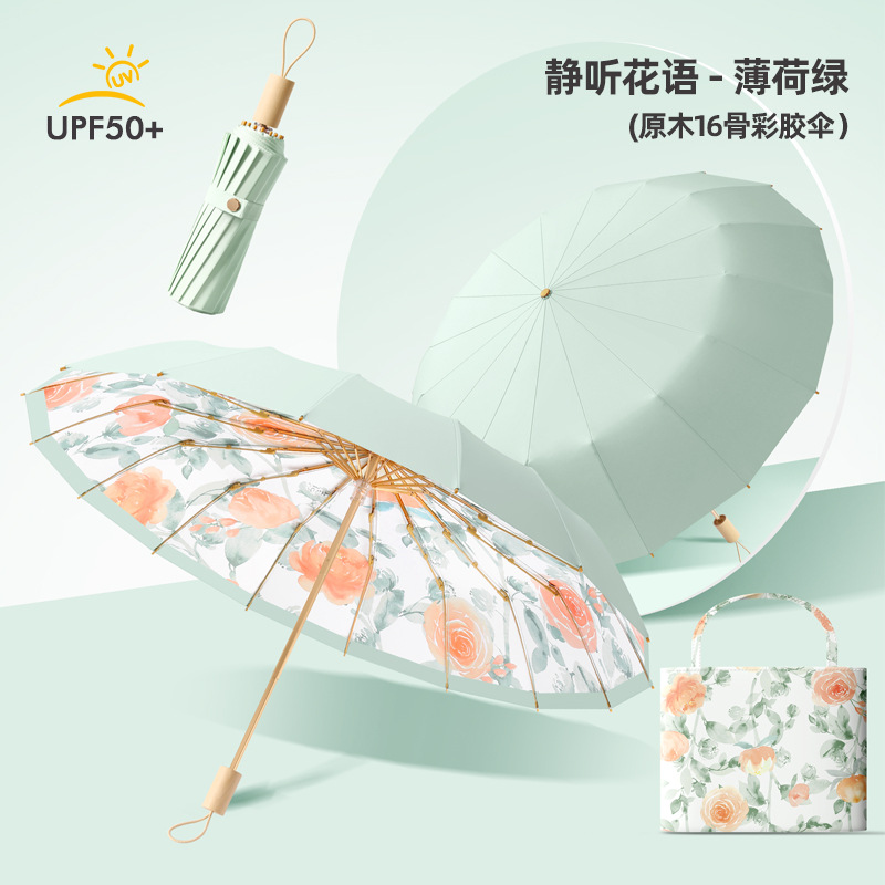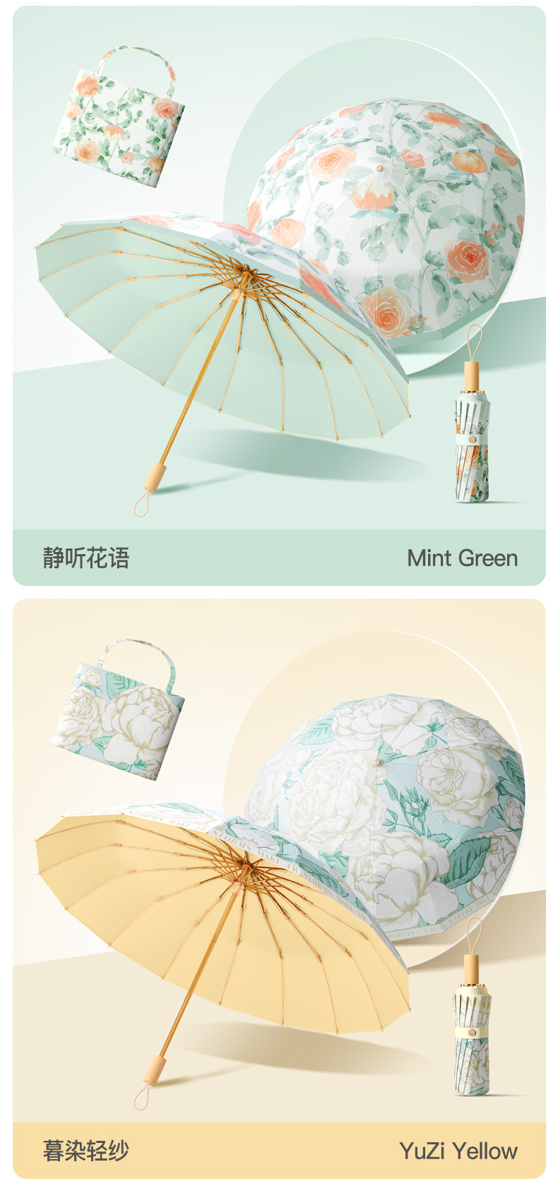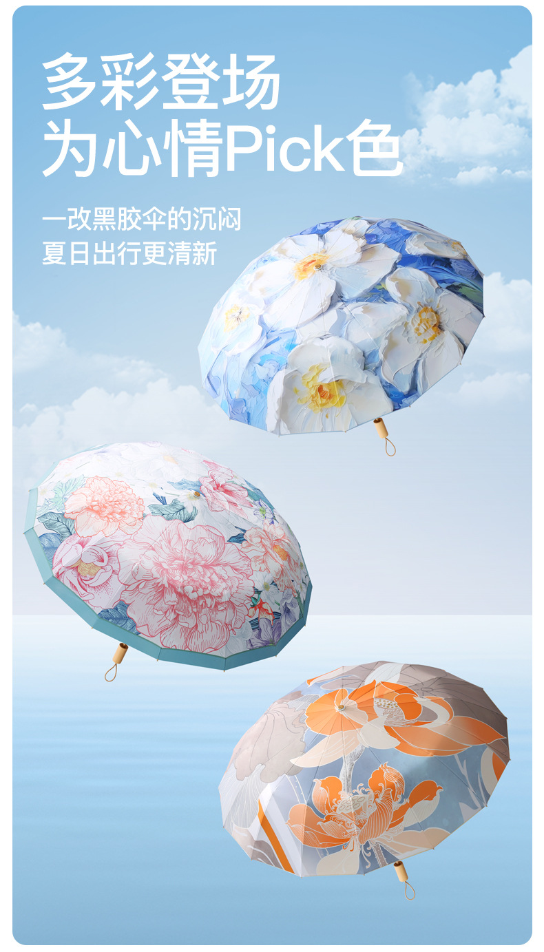 16骨高颜值遮阳伞新款复合彩胶防晒防紫外线法式晴雨两用雨伞定制