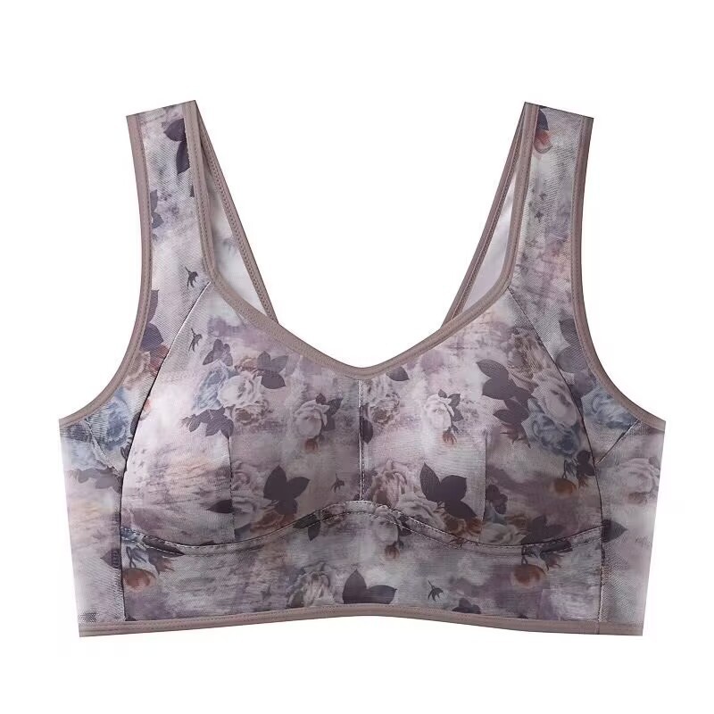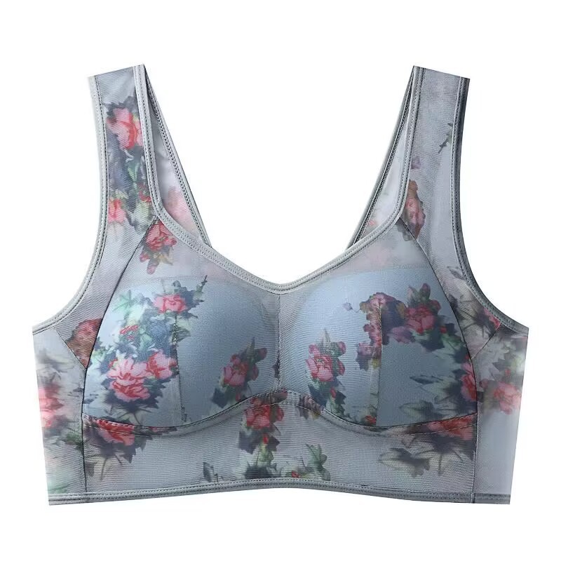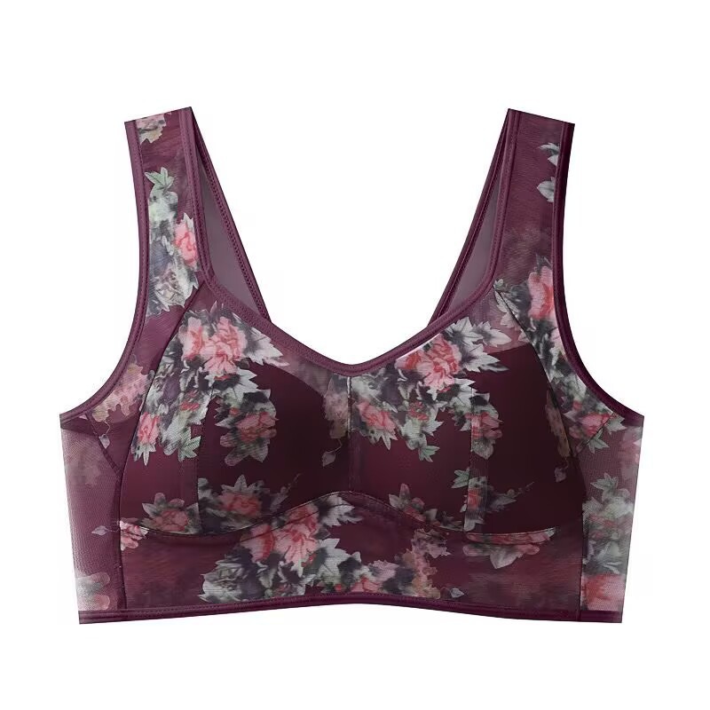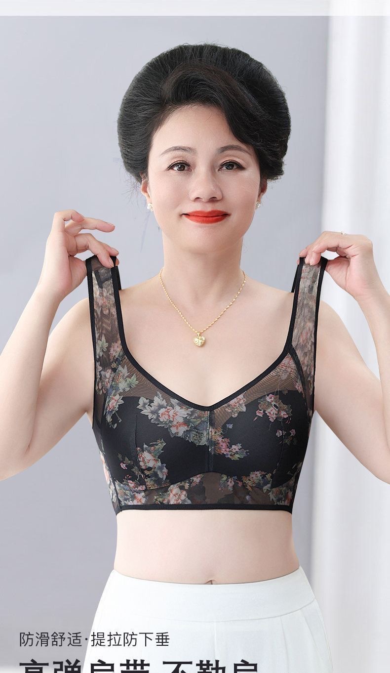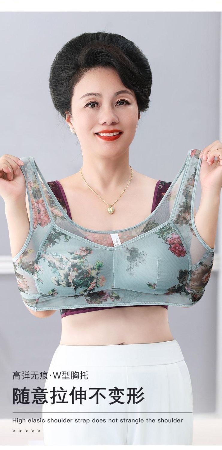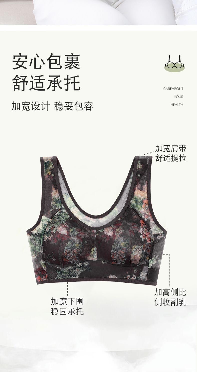 大码蕾丝妈妈文胸无钢圈聚拢内衣女无痕美背心式薄款文胸罩