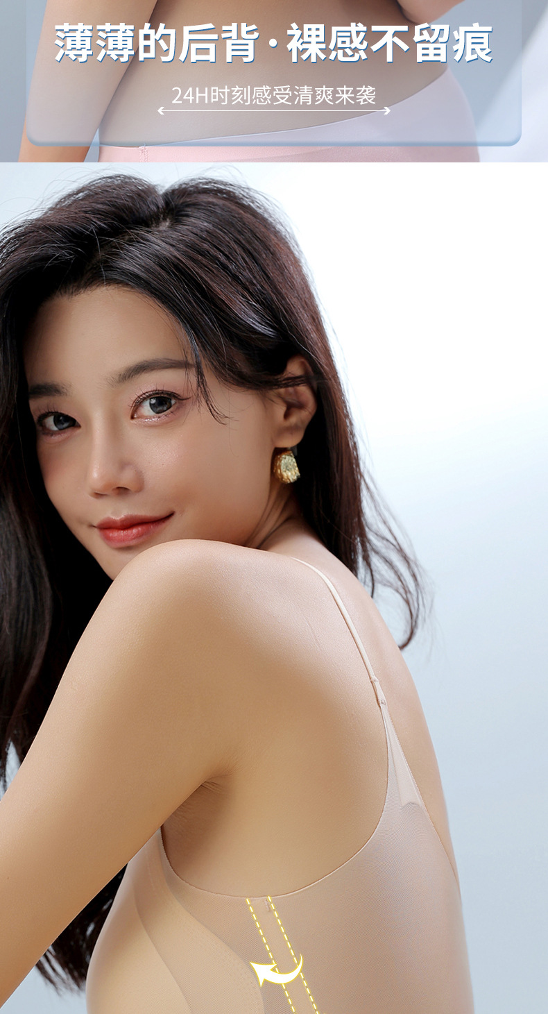 夏季新薄款一体杯无痕内衣女无钢圈吊带背心大胸显小透气舒适文胸