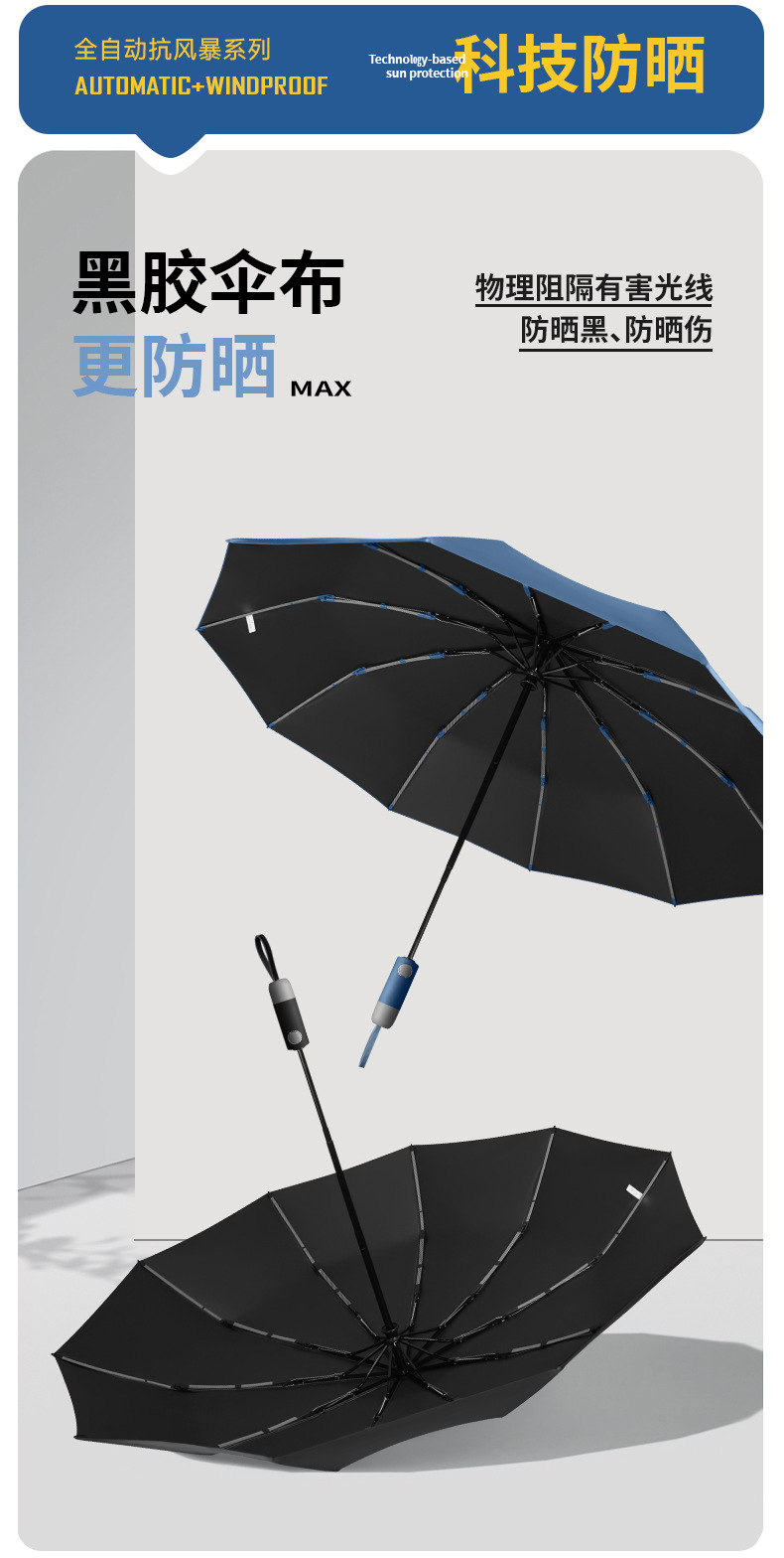 58.5*10 三折自动伞kk5112撞色柄黑胶面料-雾霾蓝 USD $0.0 3000 piece available