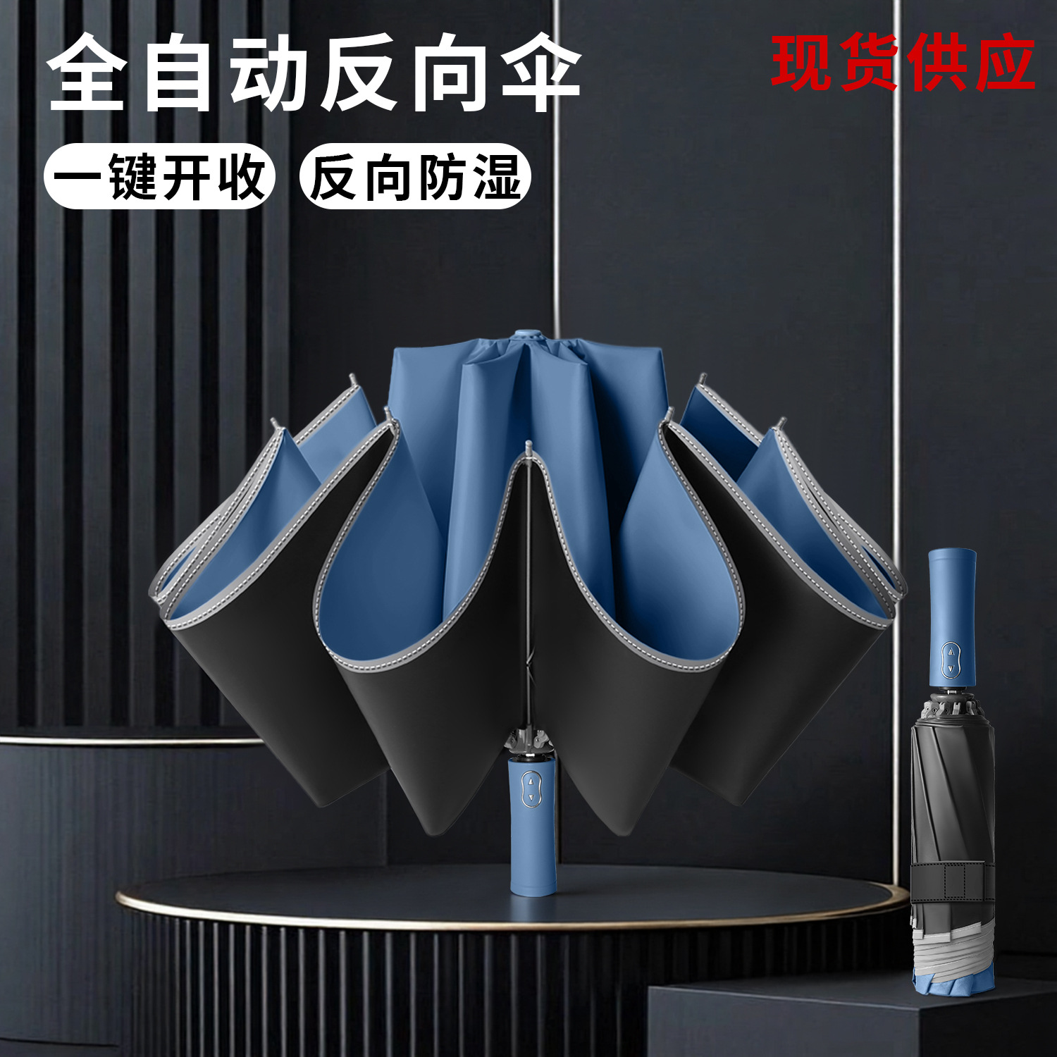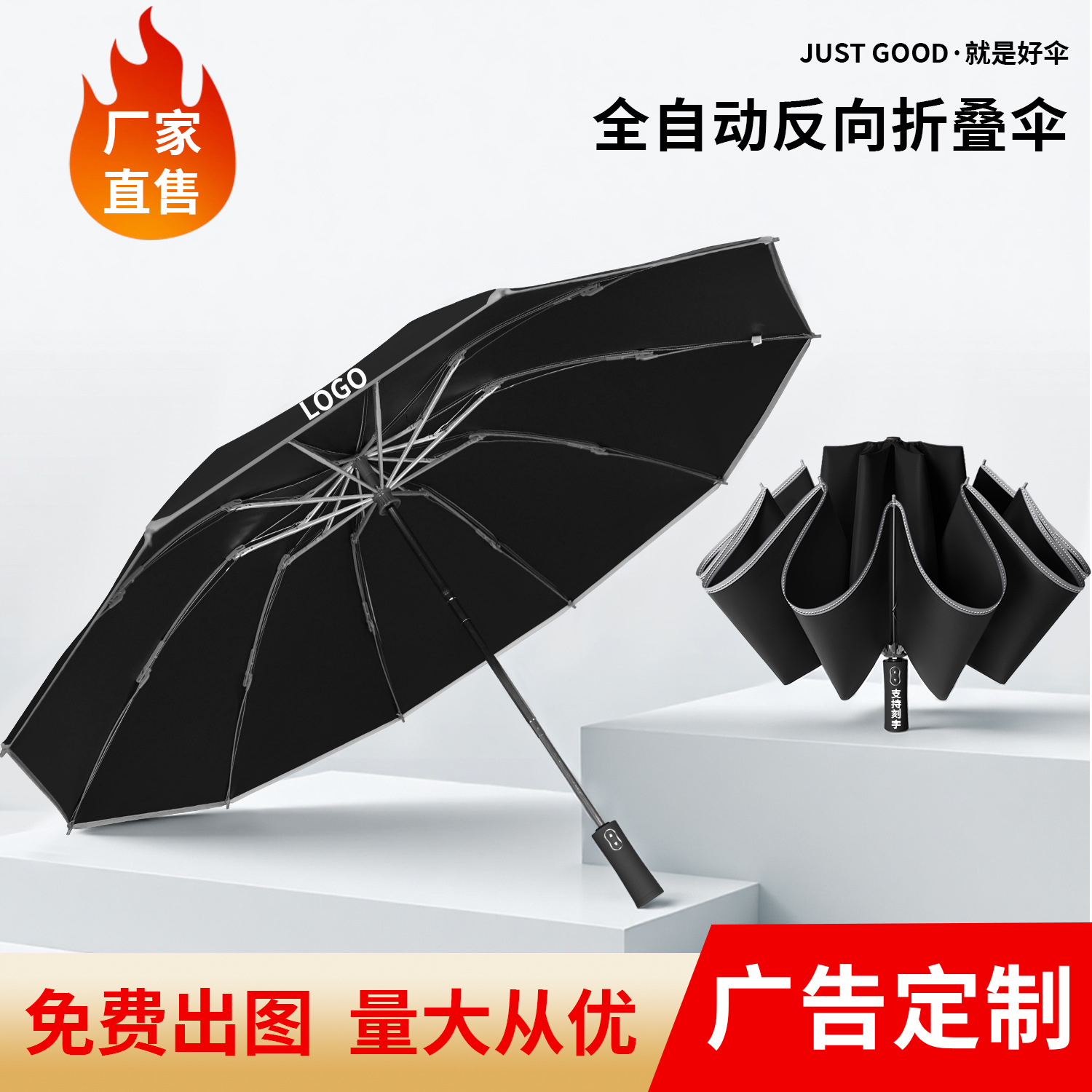 高端10骨全自动反向伞商务加固加厚双人抗风雨伞反光条伞雨伞定制