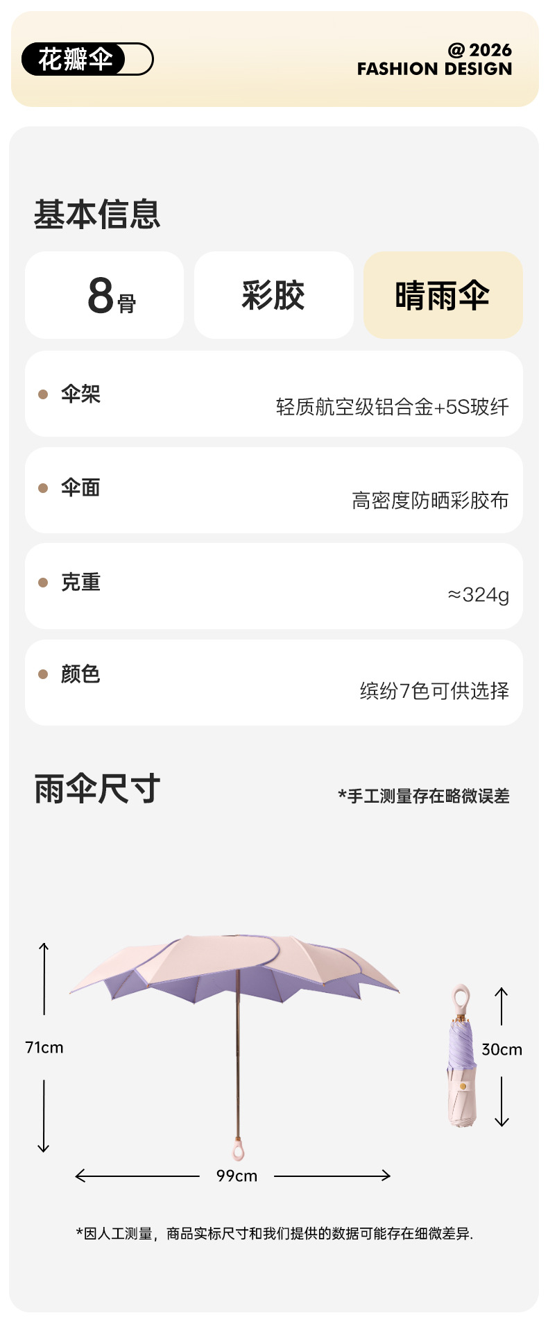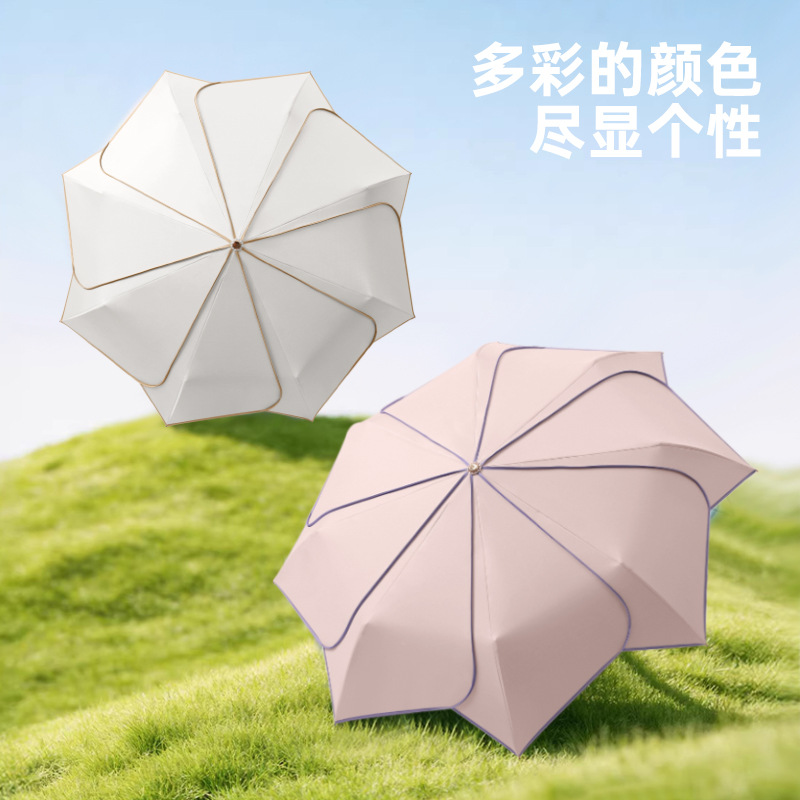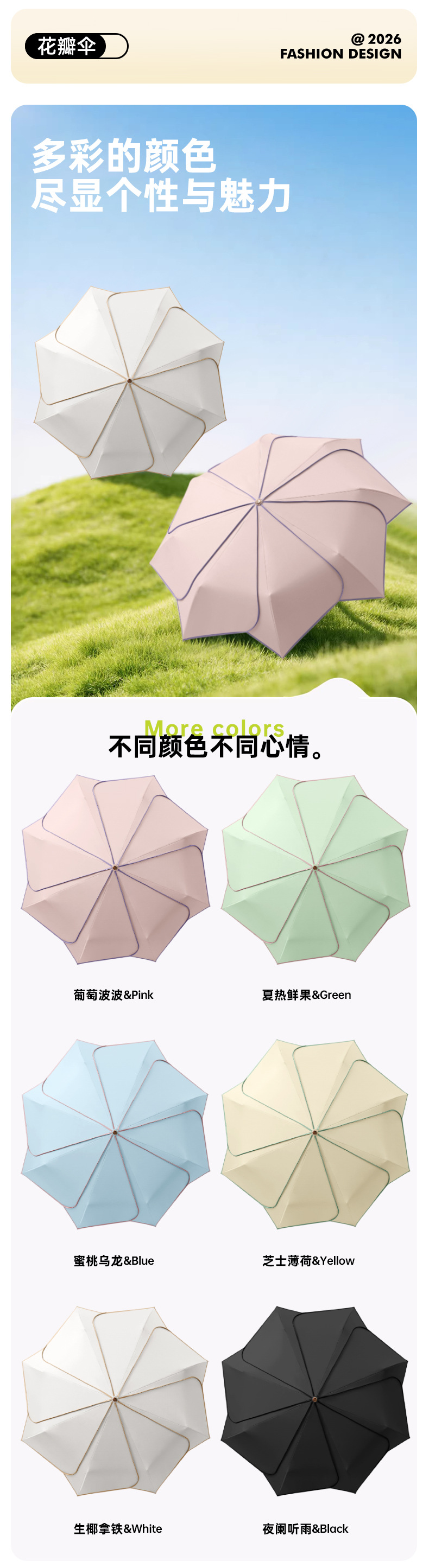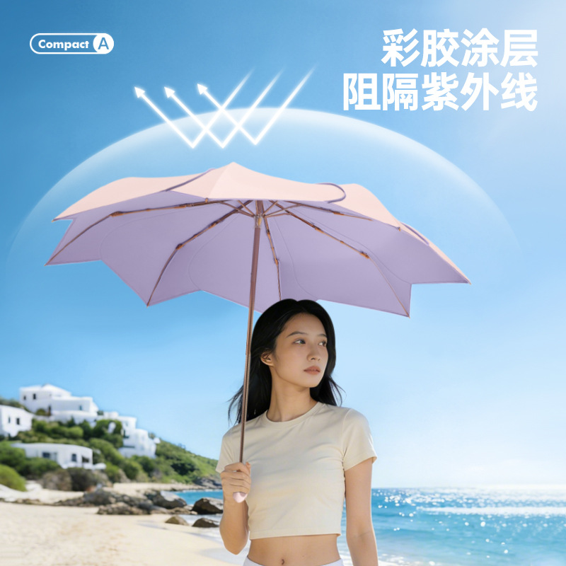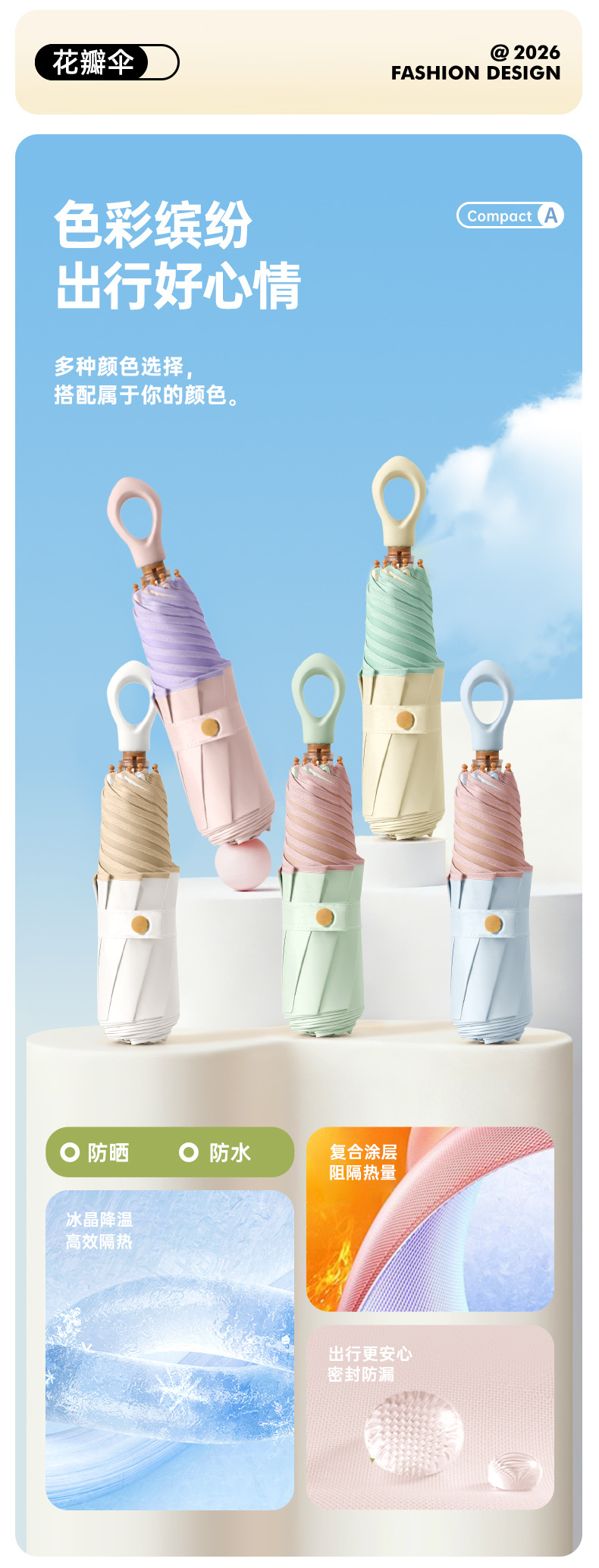 彩胶防晒三折手开伞8骨21寸花瓣伞雨伞爱心手柄可悬挂便携遮阳伞