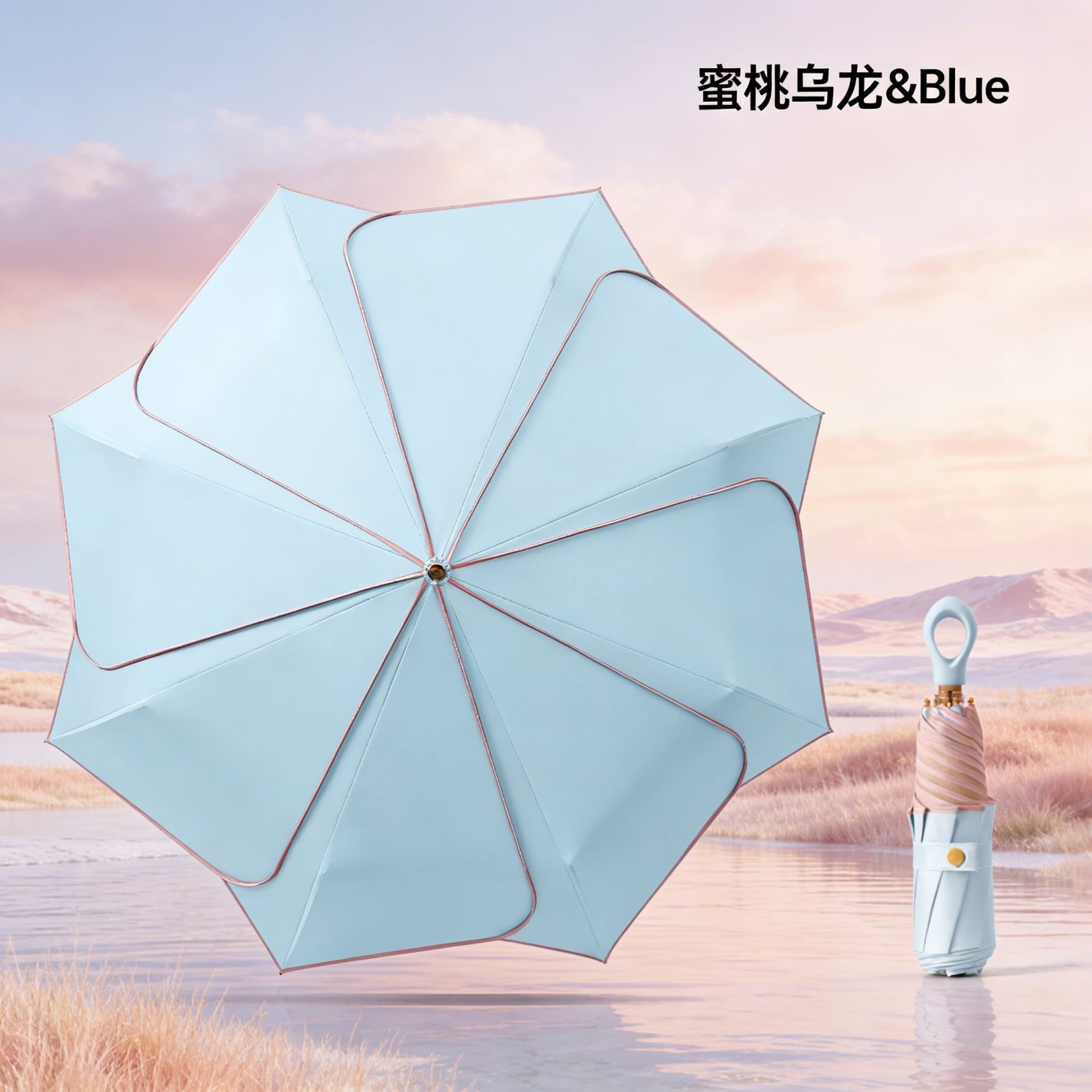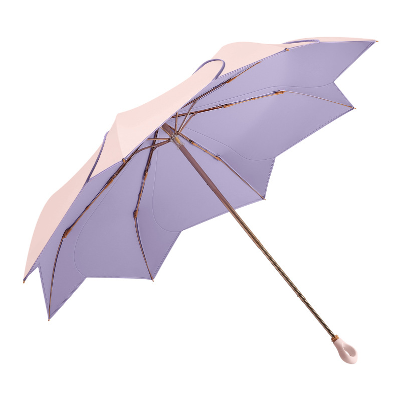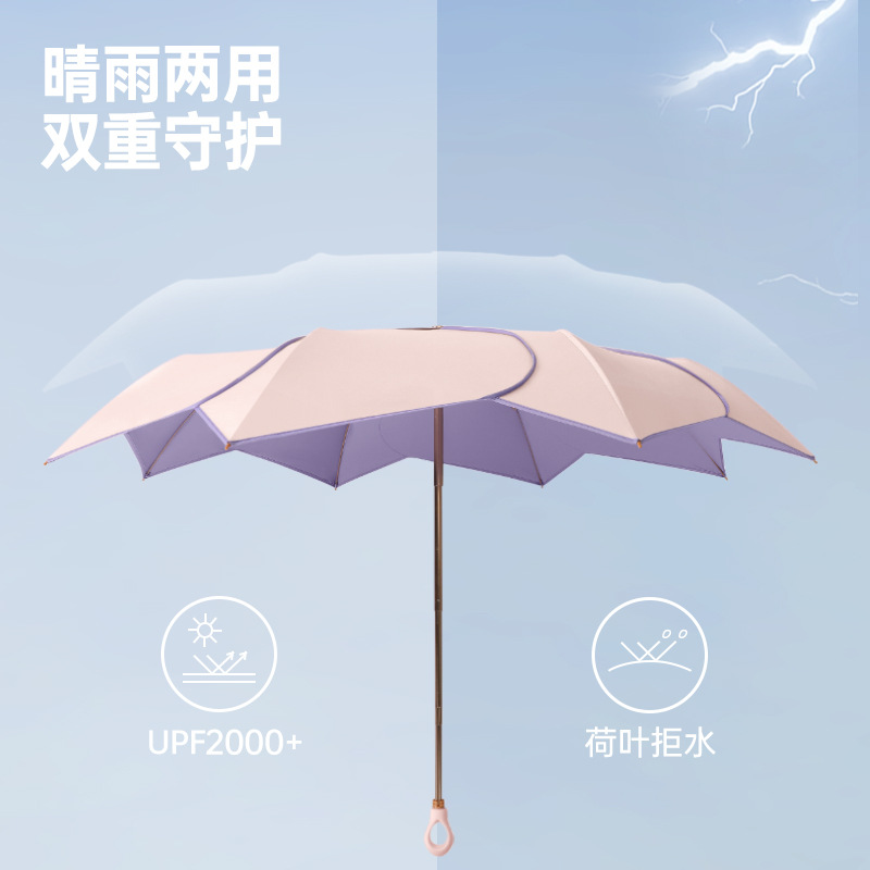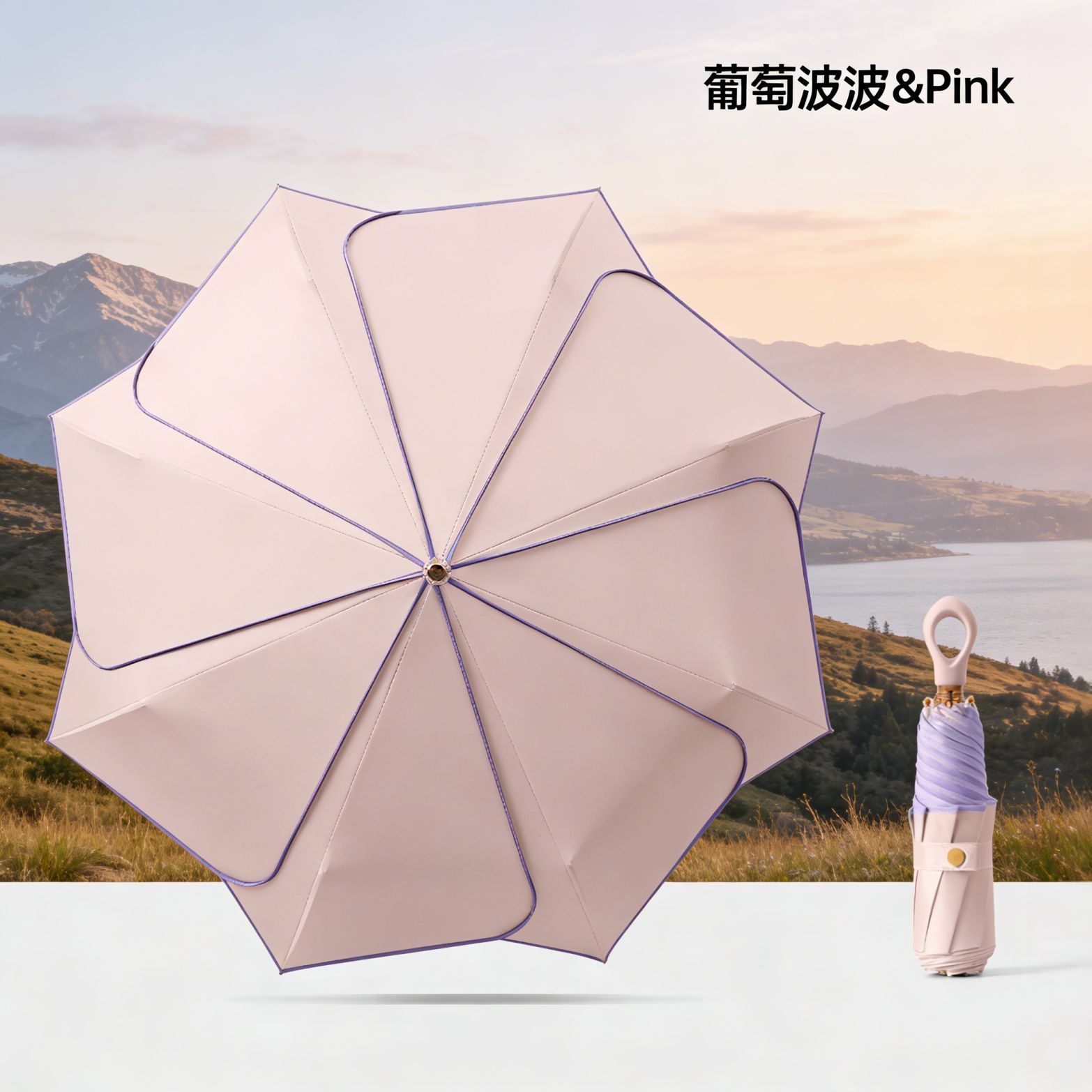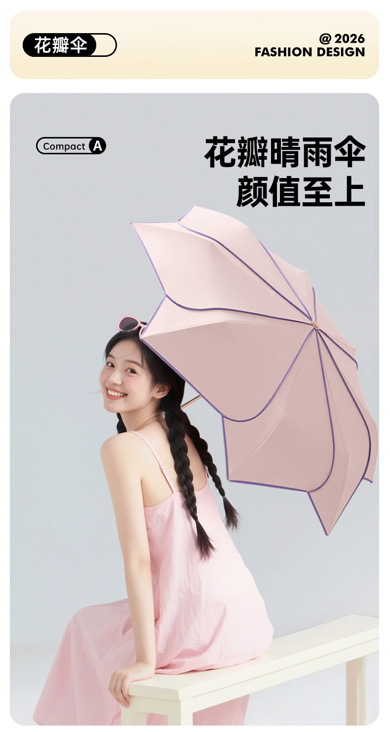彩胶防晒三折手开伞8骨21寸花瓣伞雨伞爱心手柄可悬挂便携遮阳伞