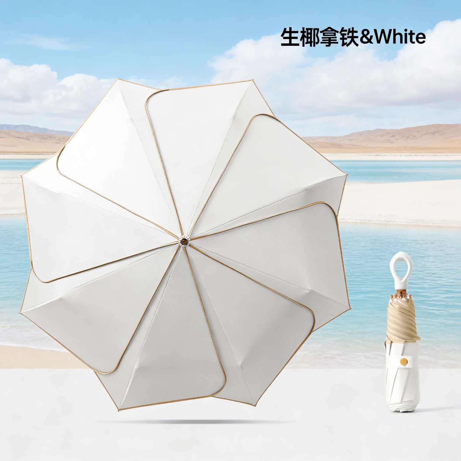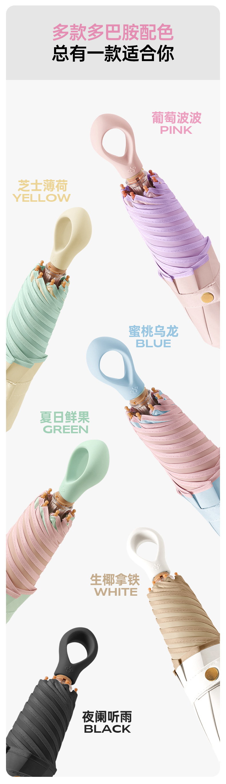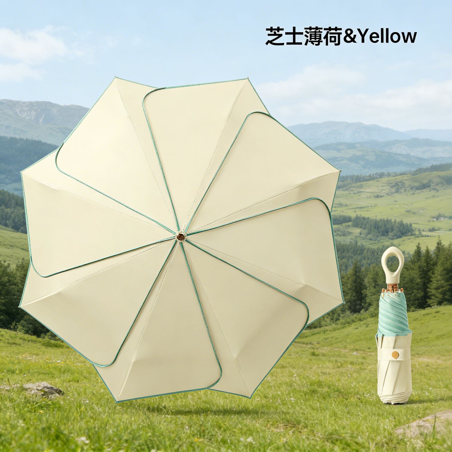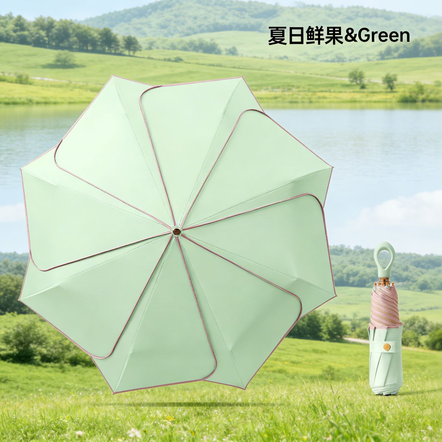 彩胶防晒三折手开伞8骨21寸花瓣伞雨伞爱心手柄可悬挂便携遮阳伞