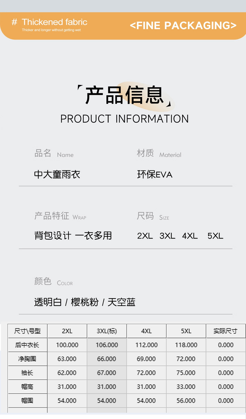 跨境外贸爆款儿童雨衣长款全身防暴雨初中小学生大童自行车雨披