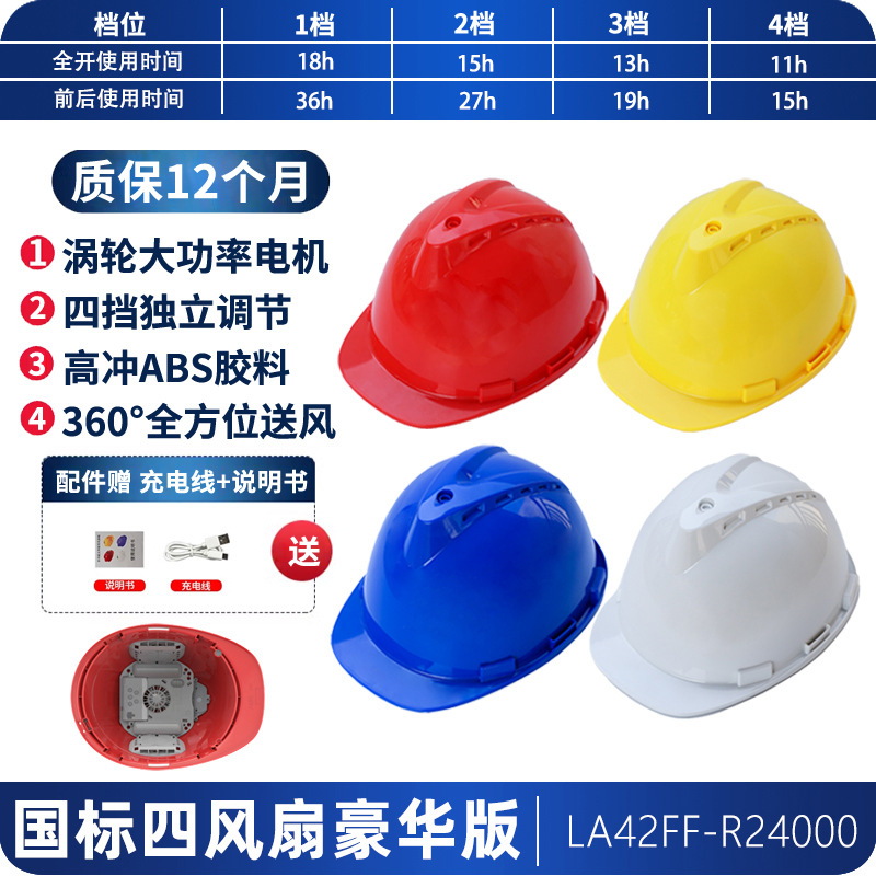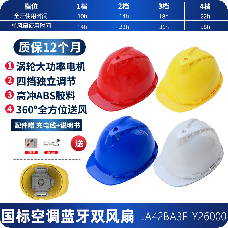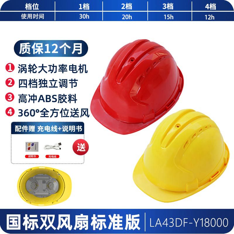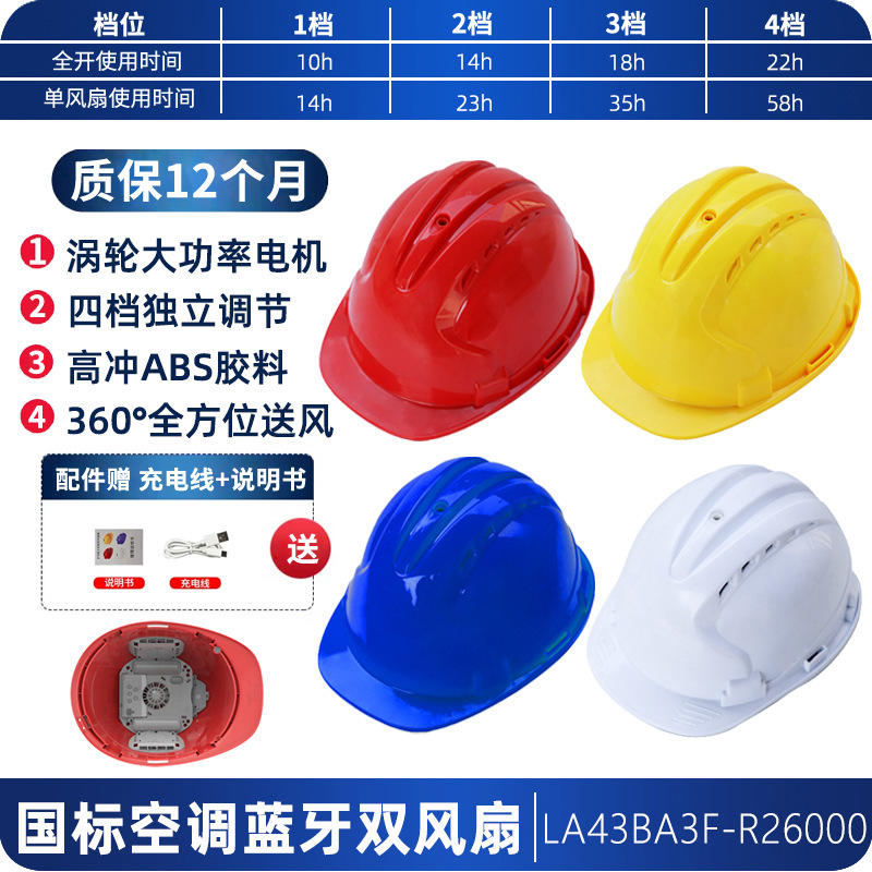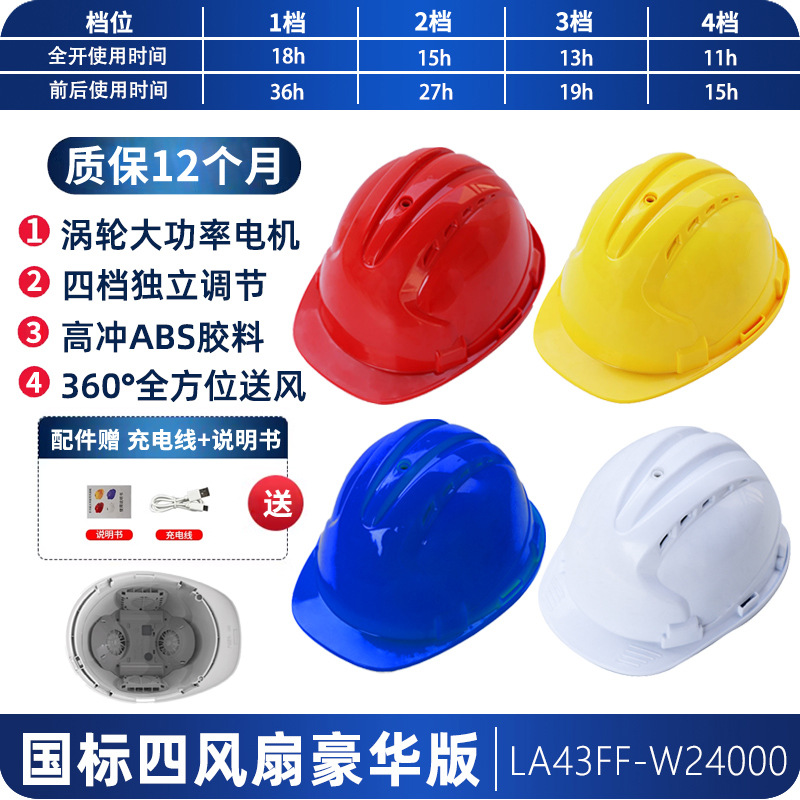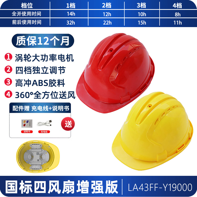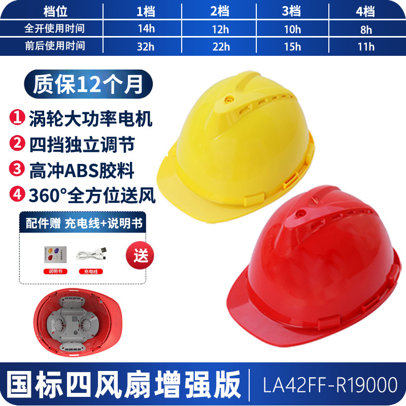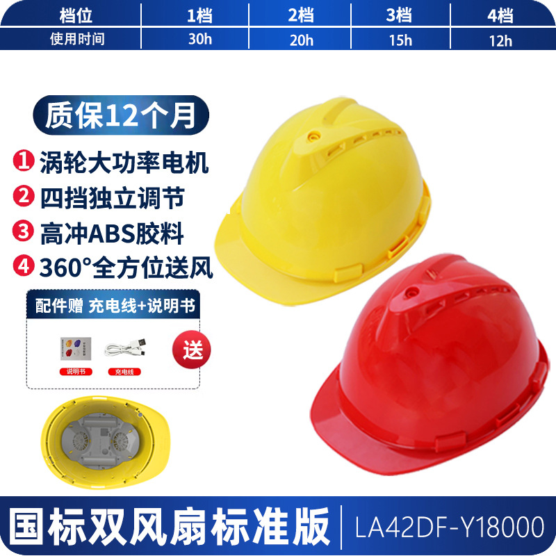 工地国标ABS夏季轻便通风降温神器抗砸可充锂电涡轮双风扇安全帽
