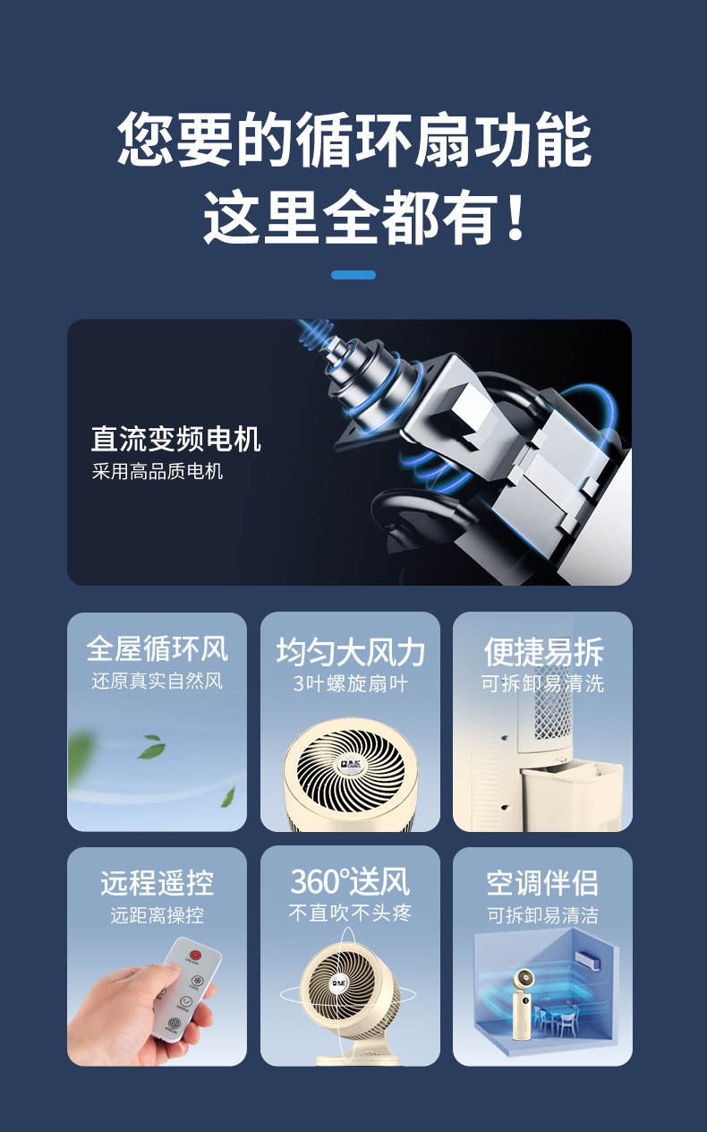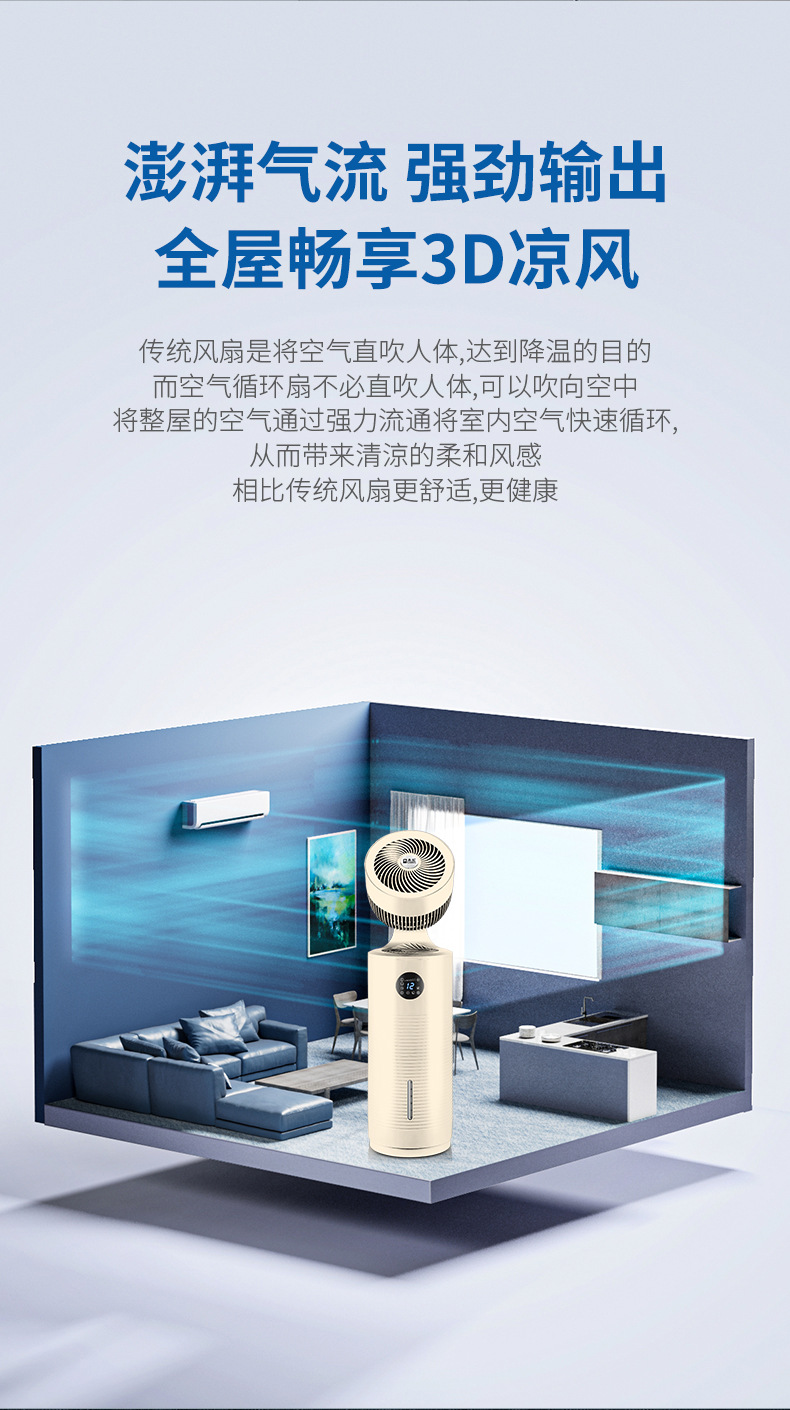 跨境新款空气循环扇家用智能语音对流扇大风量摇头轻音遥控落地扇