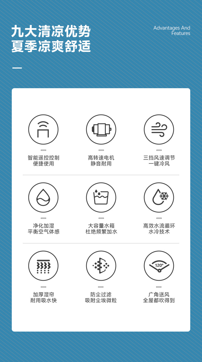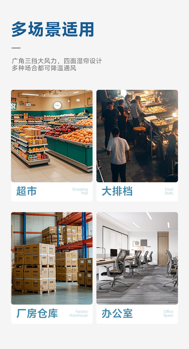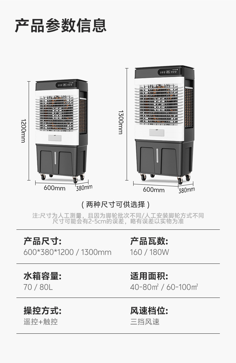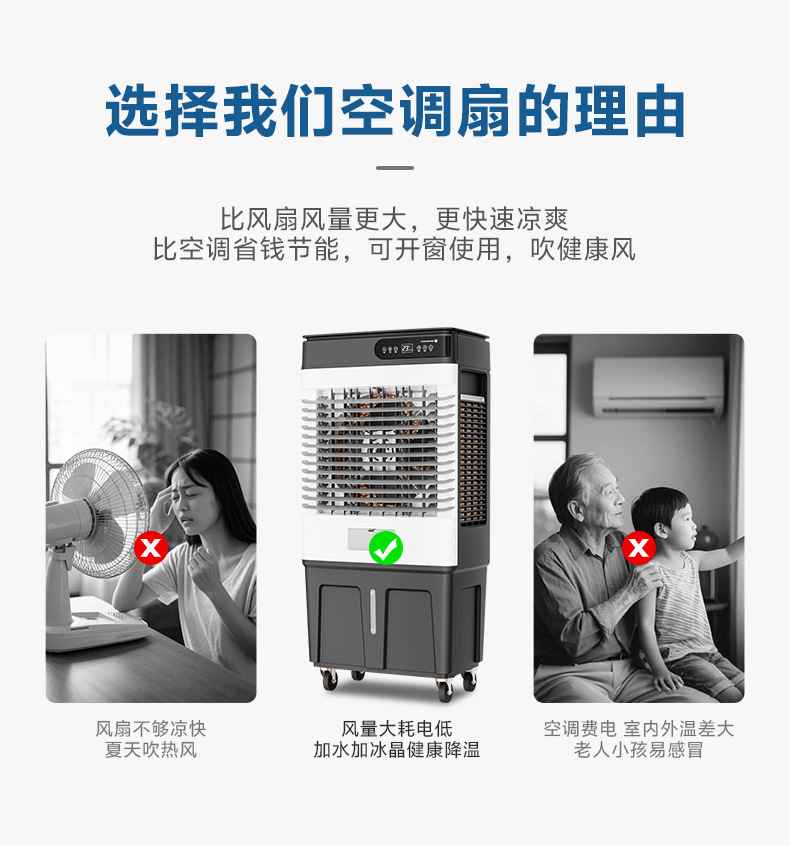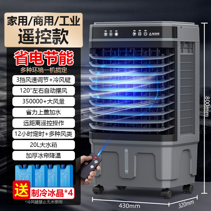 跨境可移动遥控冷风机工业空调扇加湿扇饭店工厂车间制冷扇110v