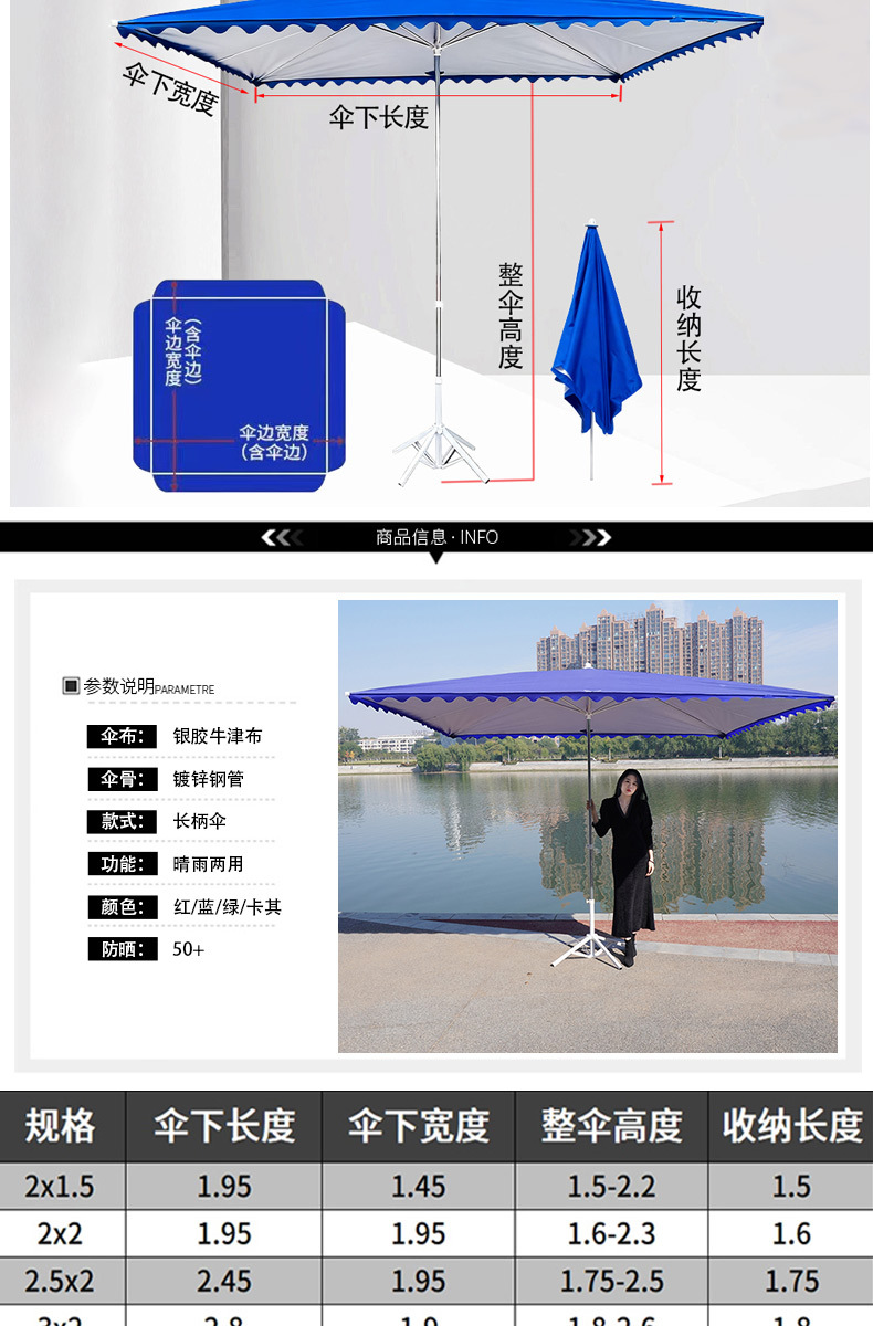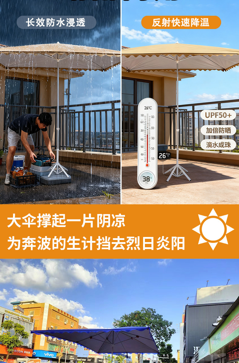 户外摆摊专用大伞遮阳伞室外庭院长方形防暴晒太阳伞商用加厚雨棚
