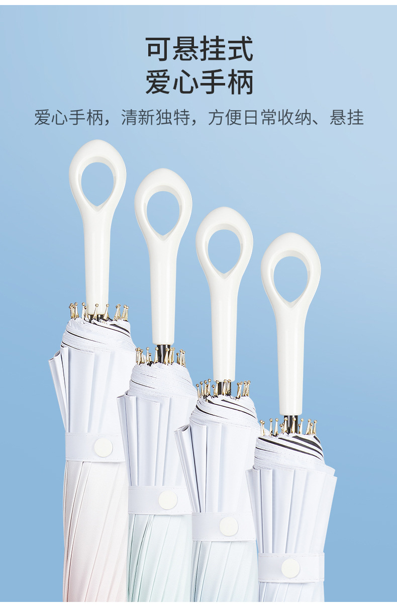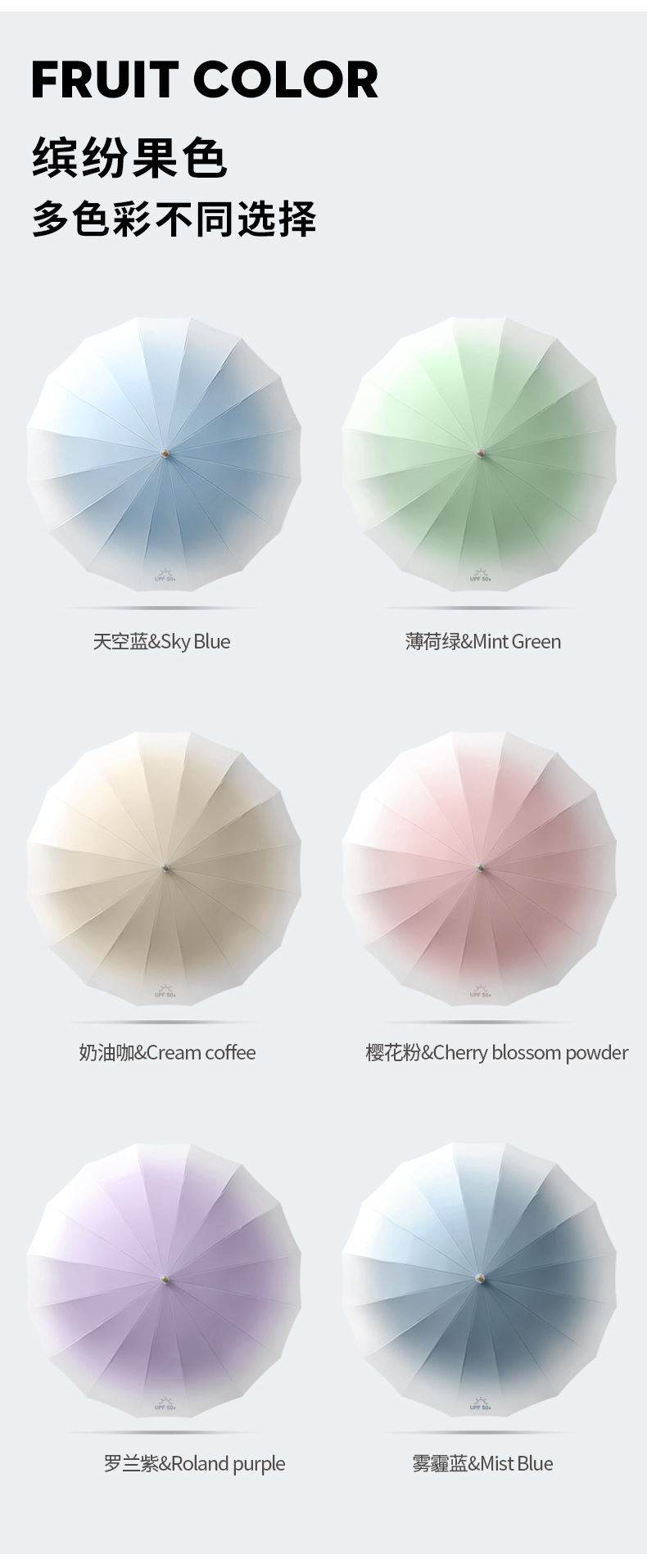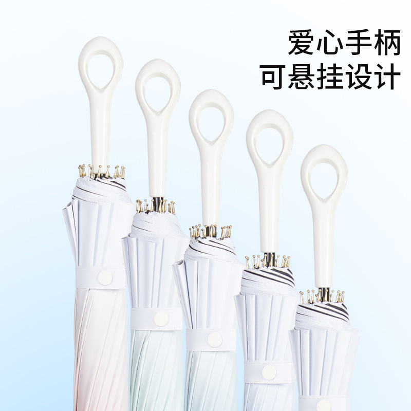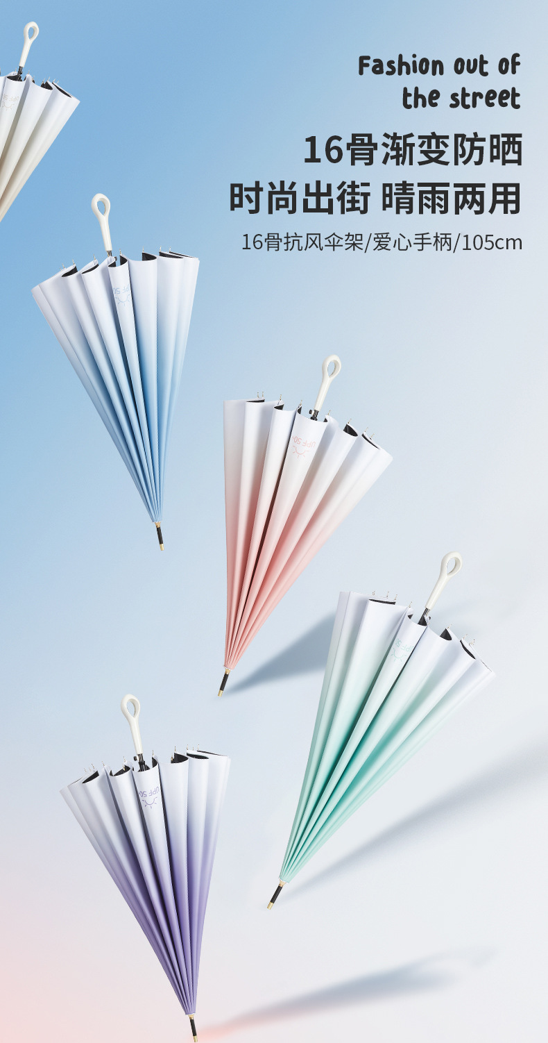 跨境外贸爆款16骨直杆爱心手柄渐变色晴雨两用雨伞防晒可加印LOGO