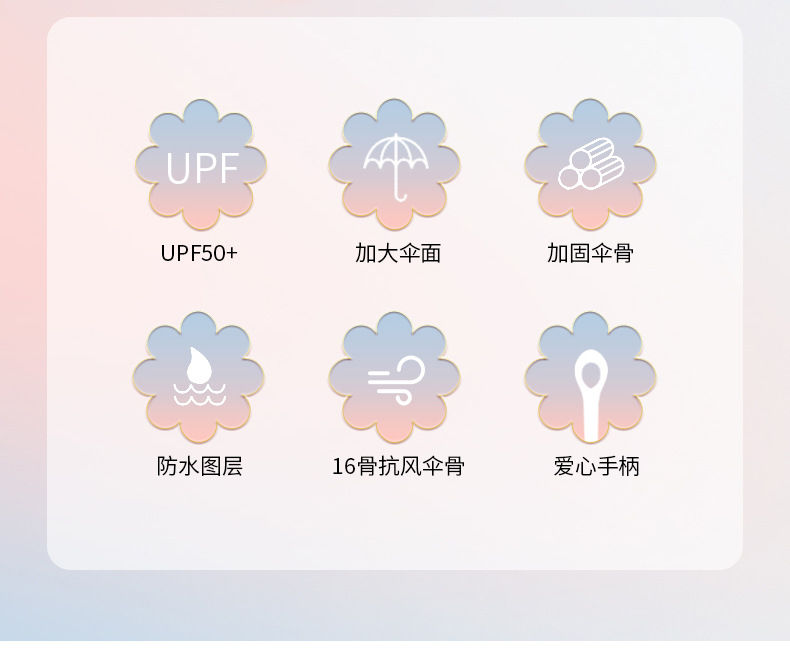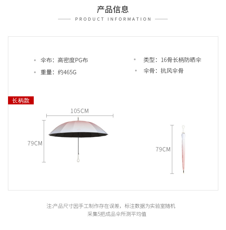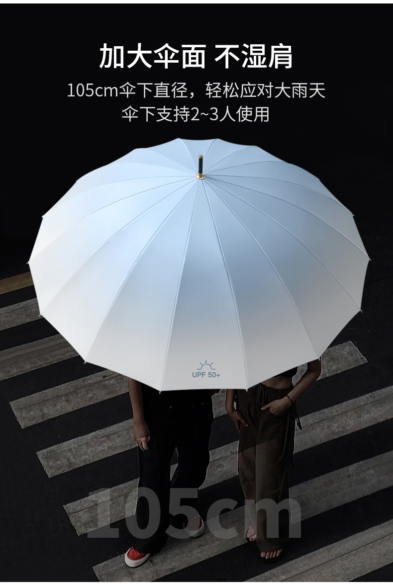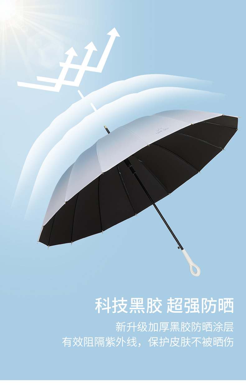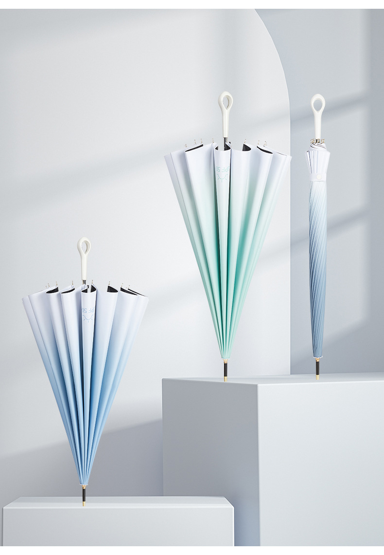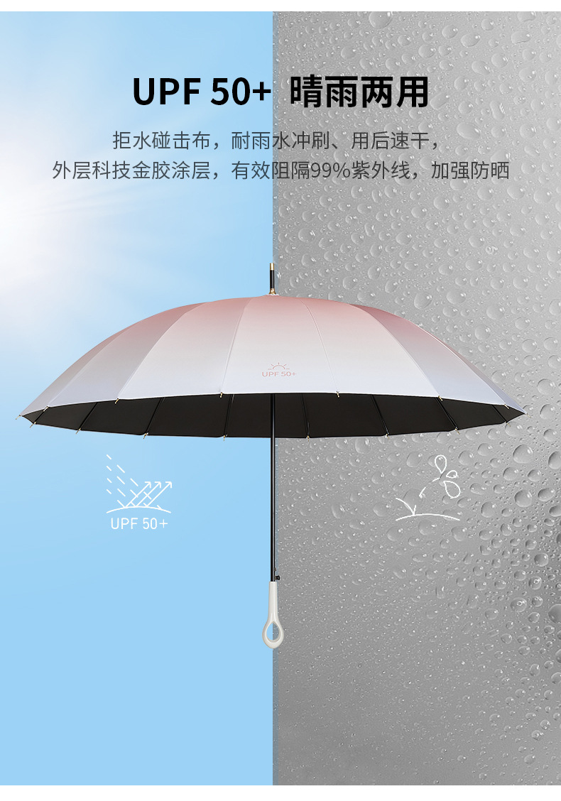 跨境外贸爆款16骨直杆爱心手柄渐变色晴雨两用雨伞防晒可加印LOGO