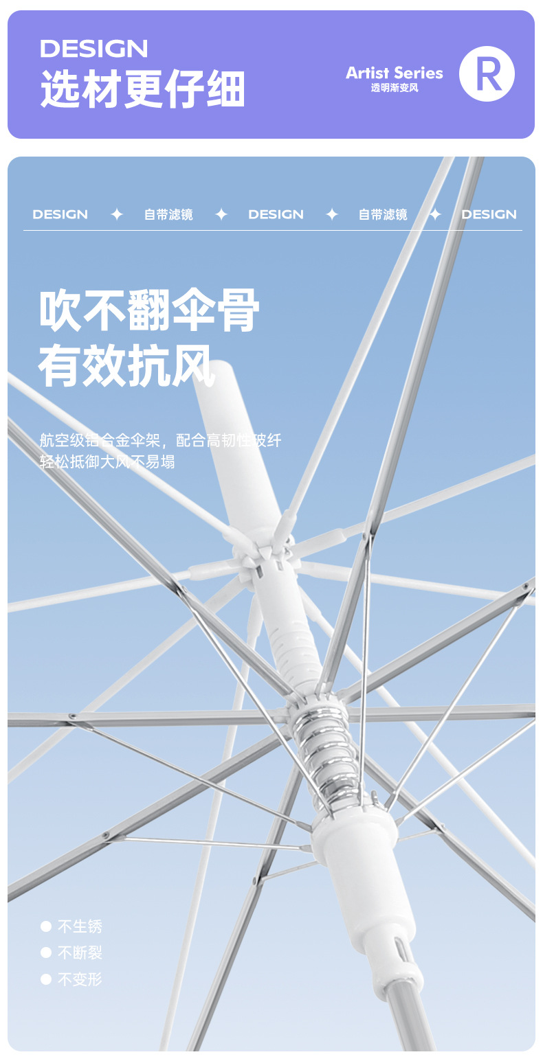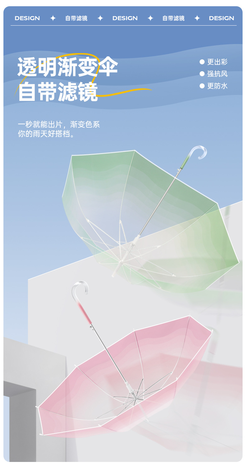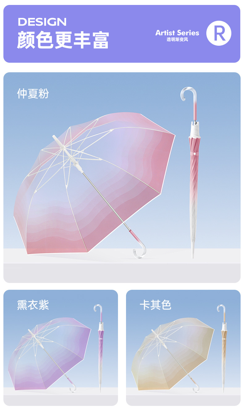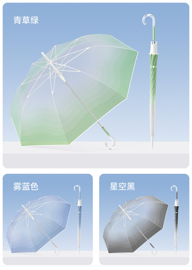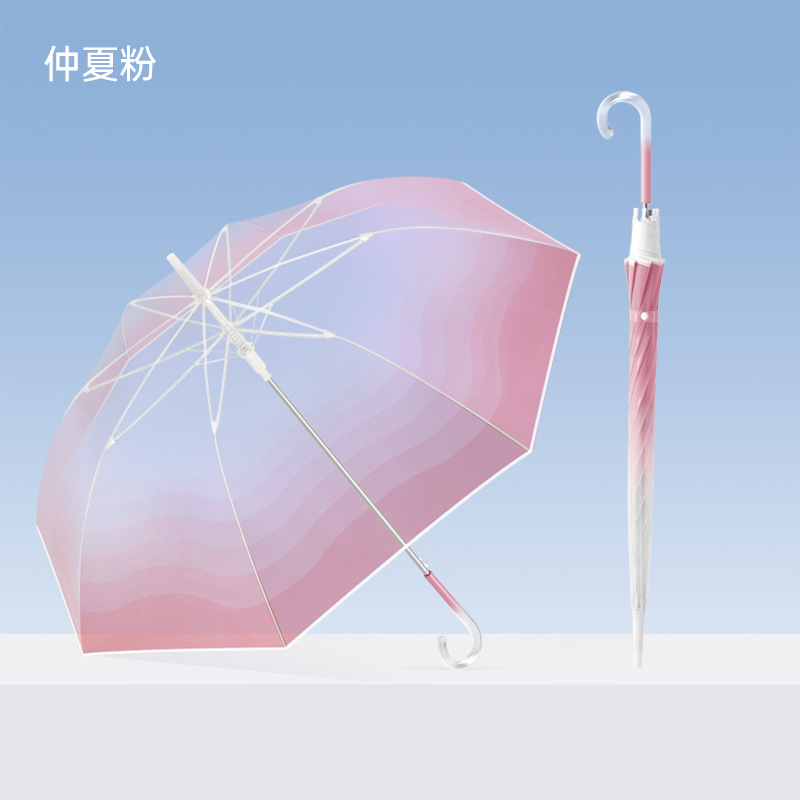 外贸彩色小清新渐变透明直杆伞写生直柄广告伞批发印字logo长柄伞