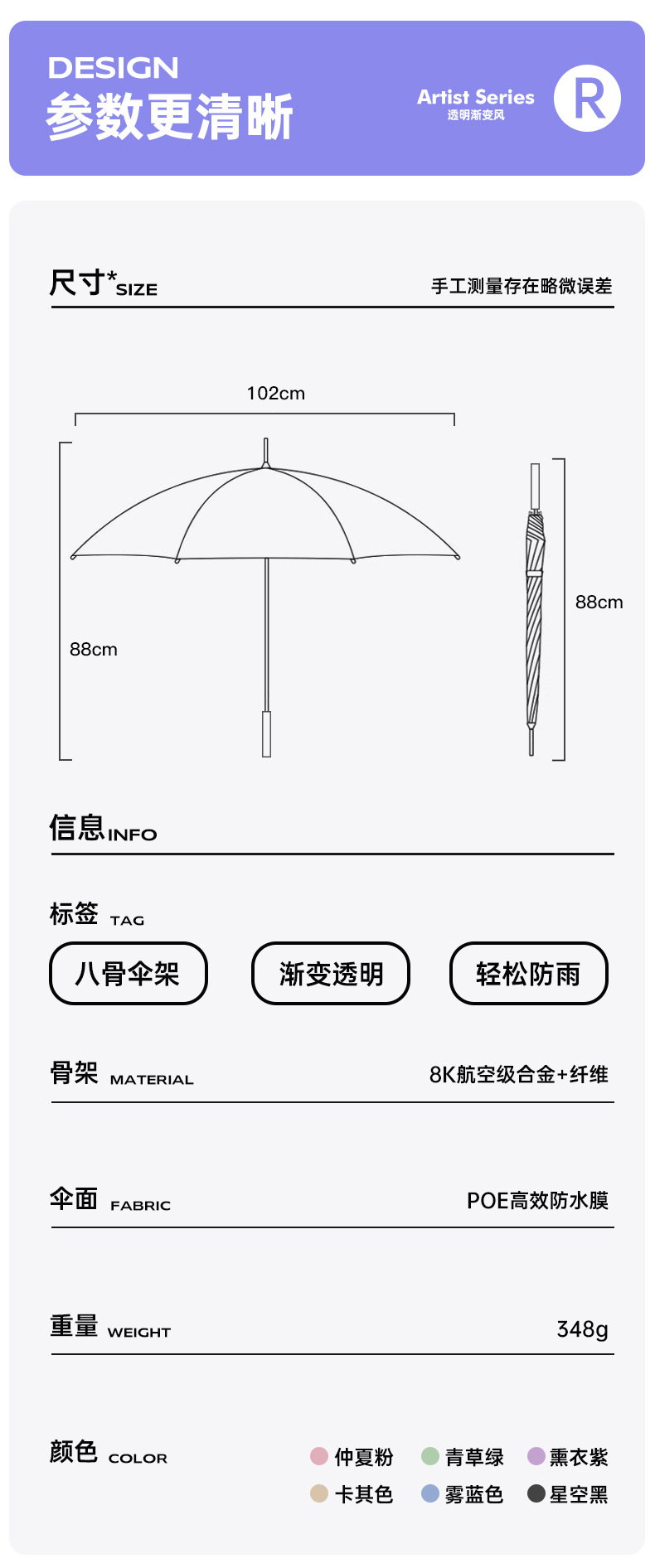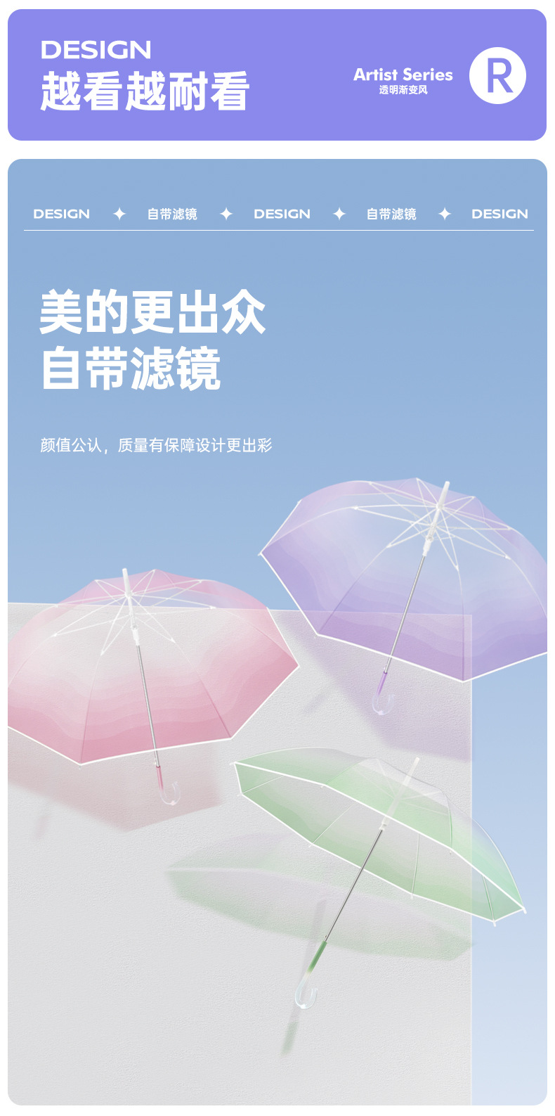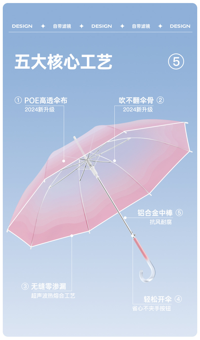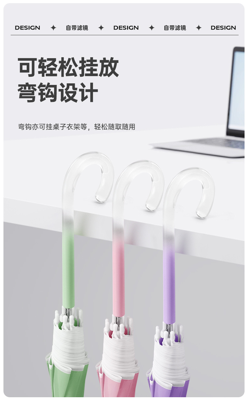 外贸彩色小清新渐变透明直杆伞写生直柄广告伞批发印字logo长柄伞