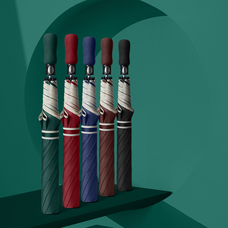新款双人抗风雨伞纯色两折高尔夫伞定 制半自动商务广告伞logo
