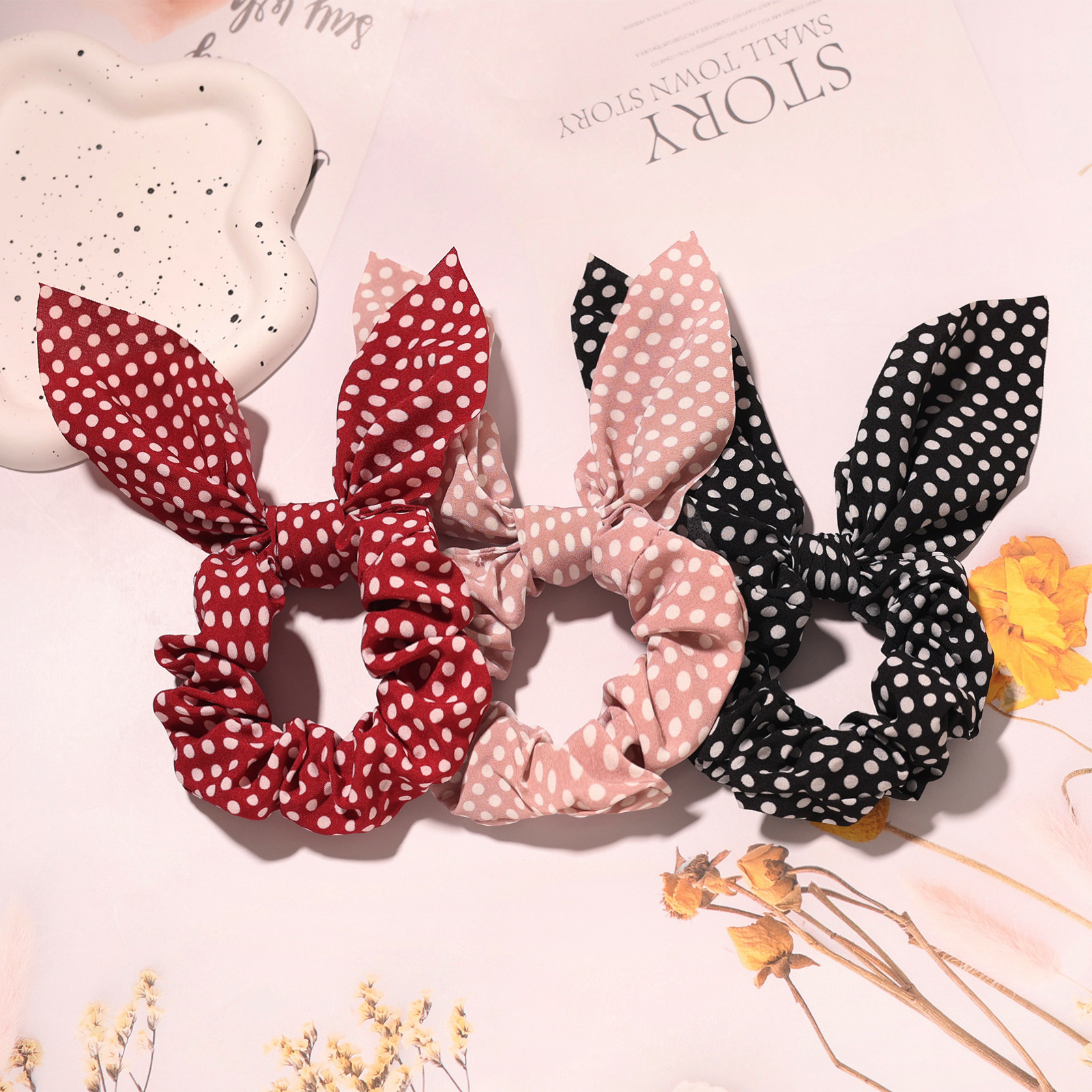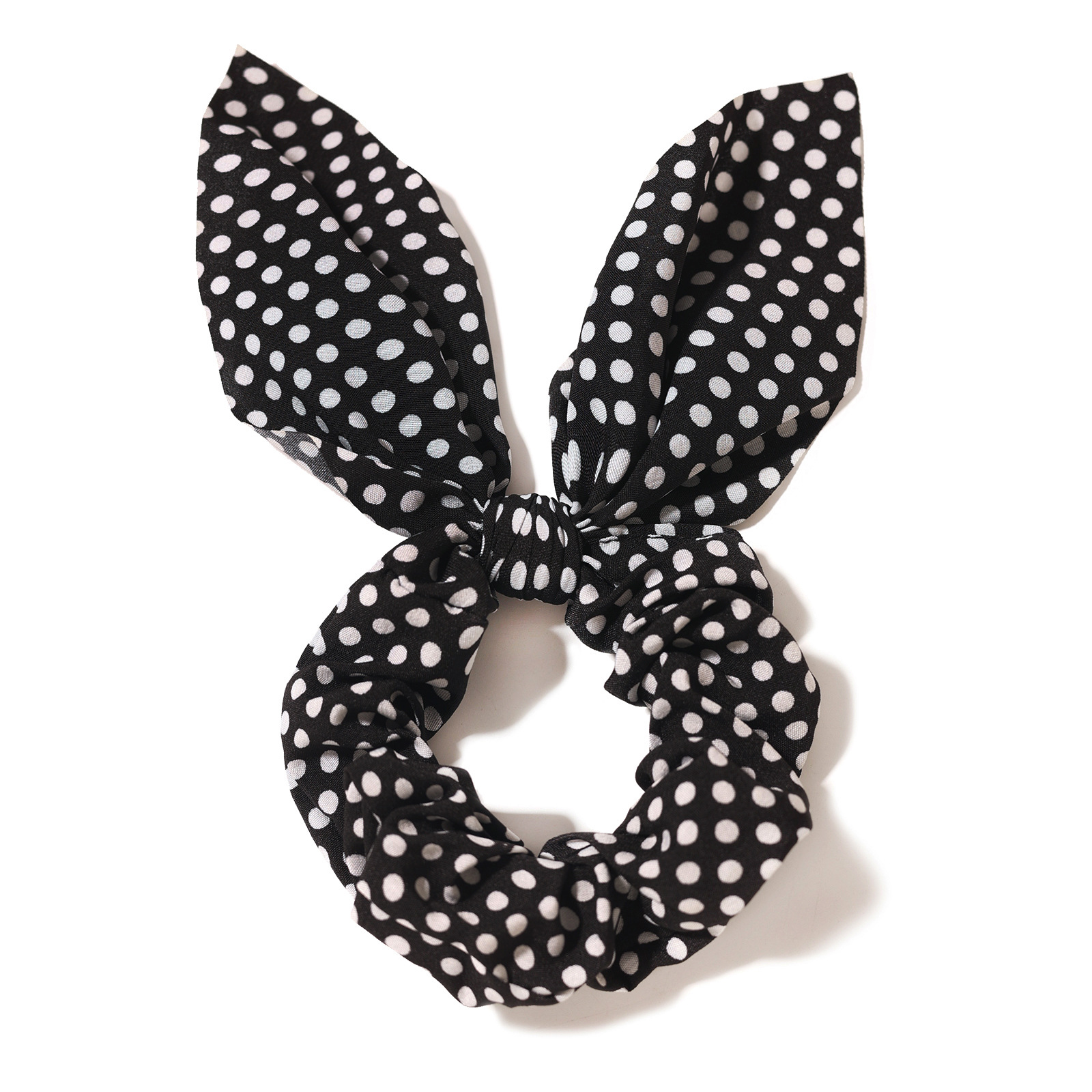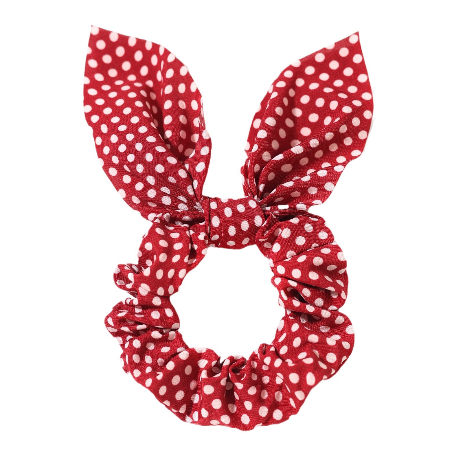 新款圆点印花兔耳朵发圈蝴蝶结松紧大肠发圈女孩马尾辫发绳发饰