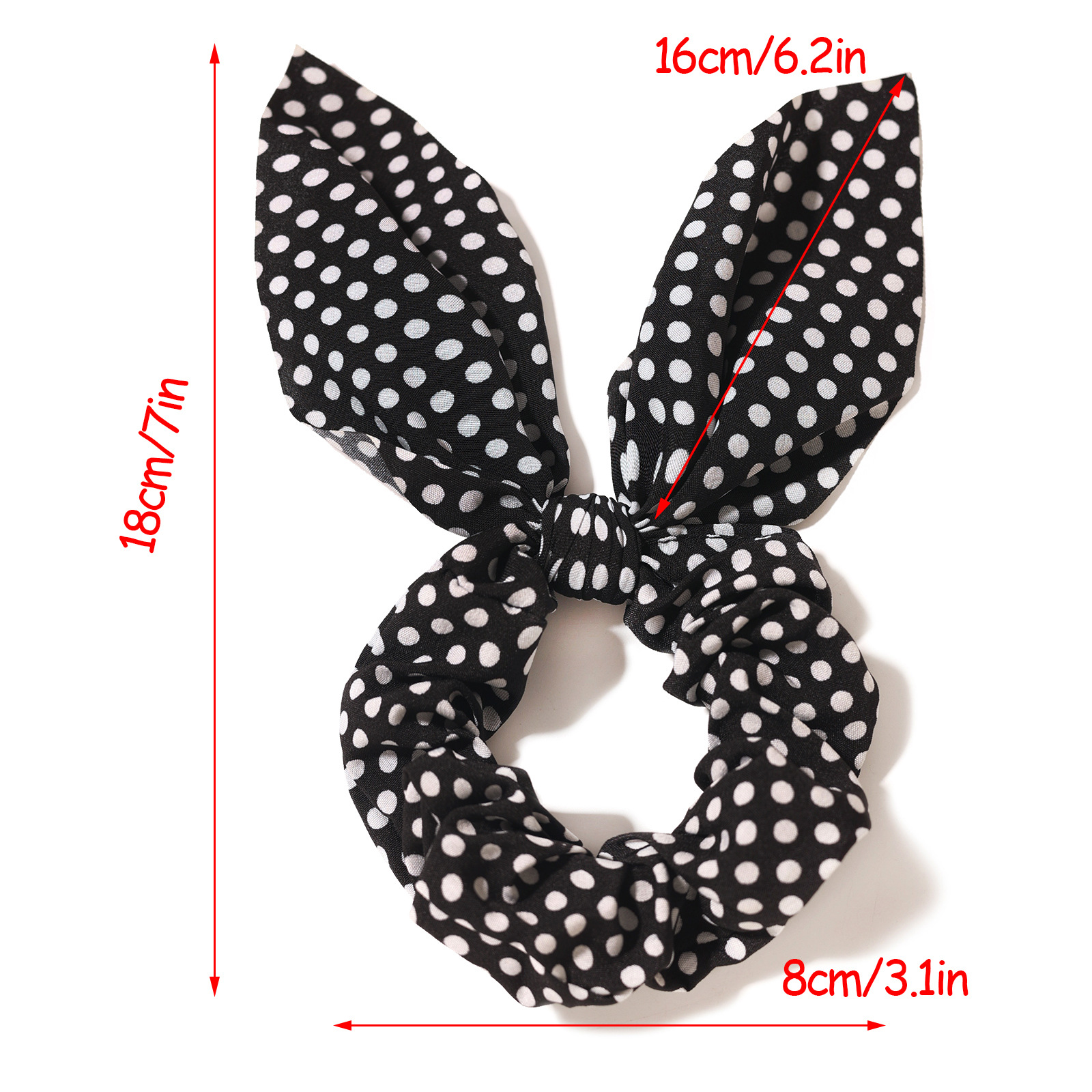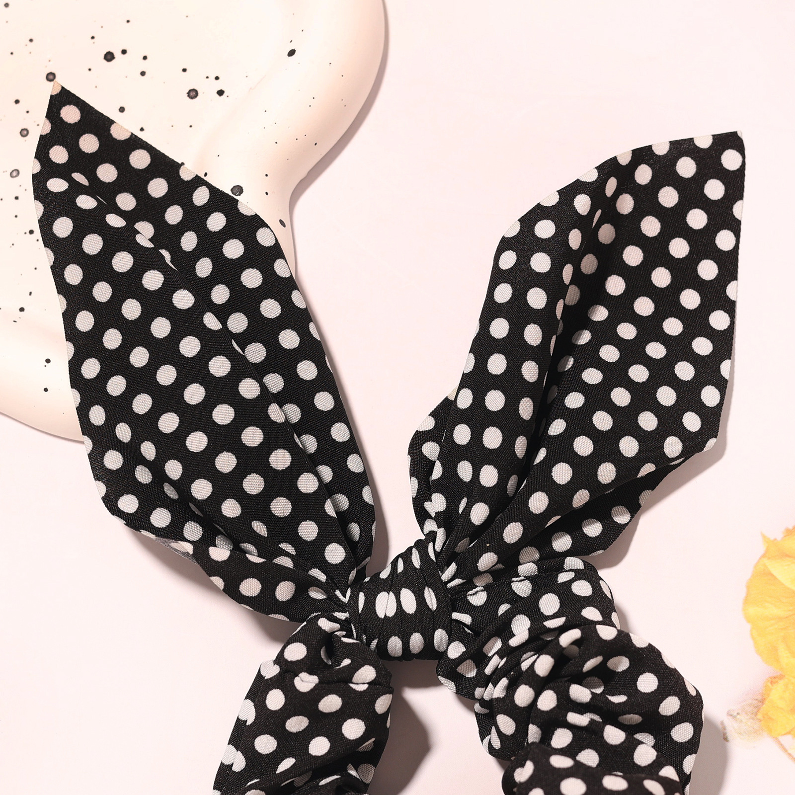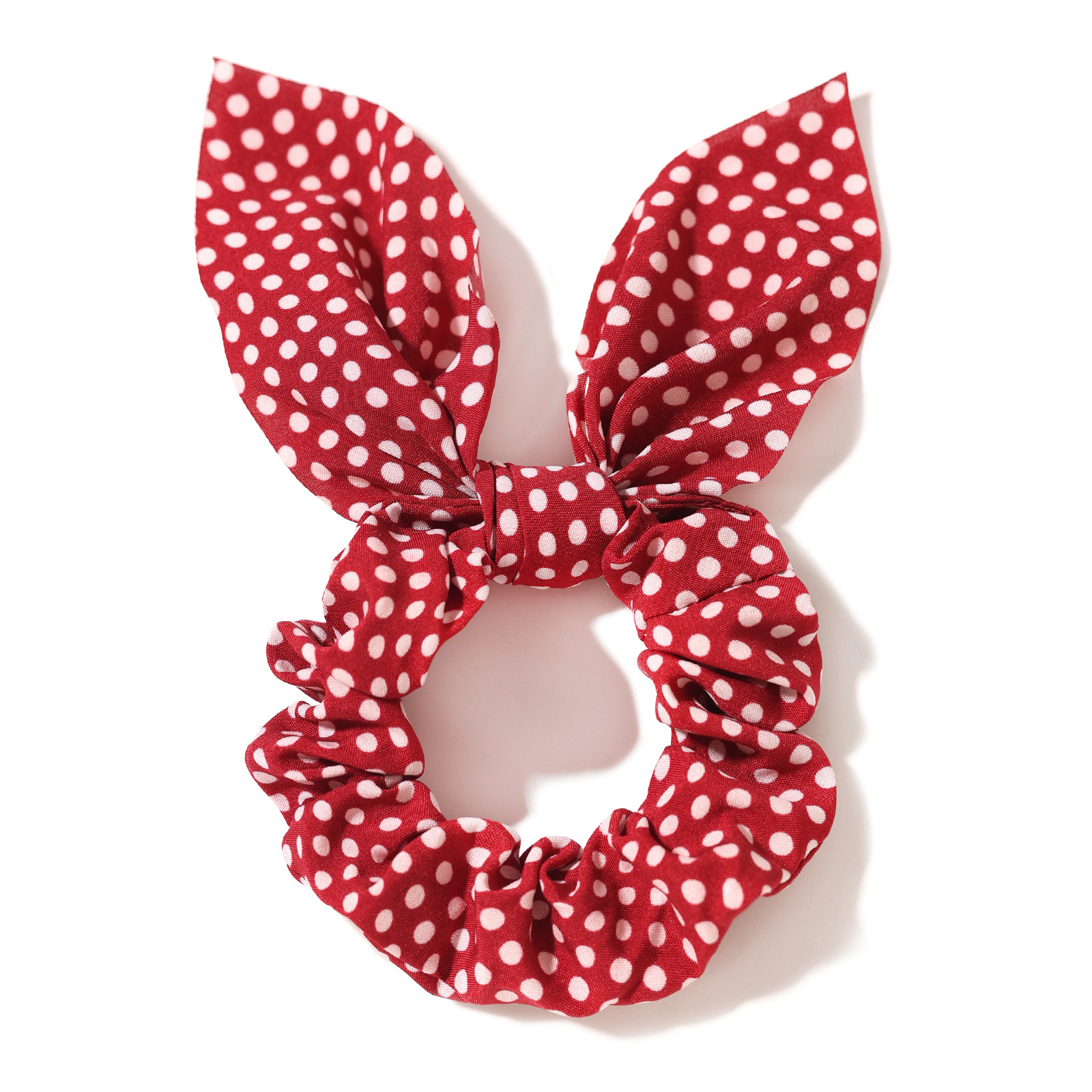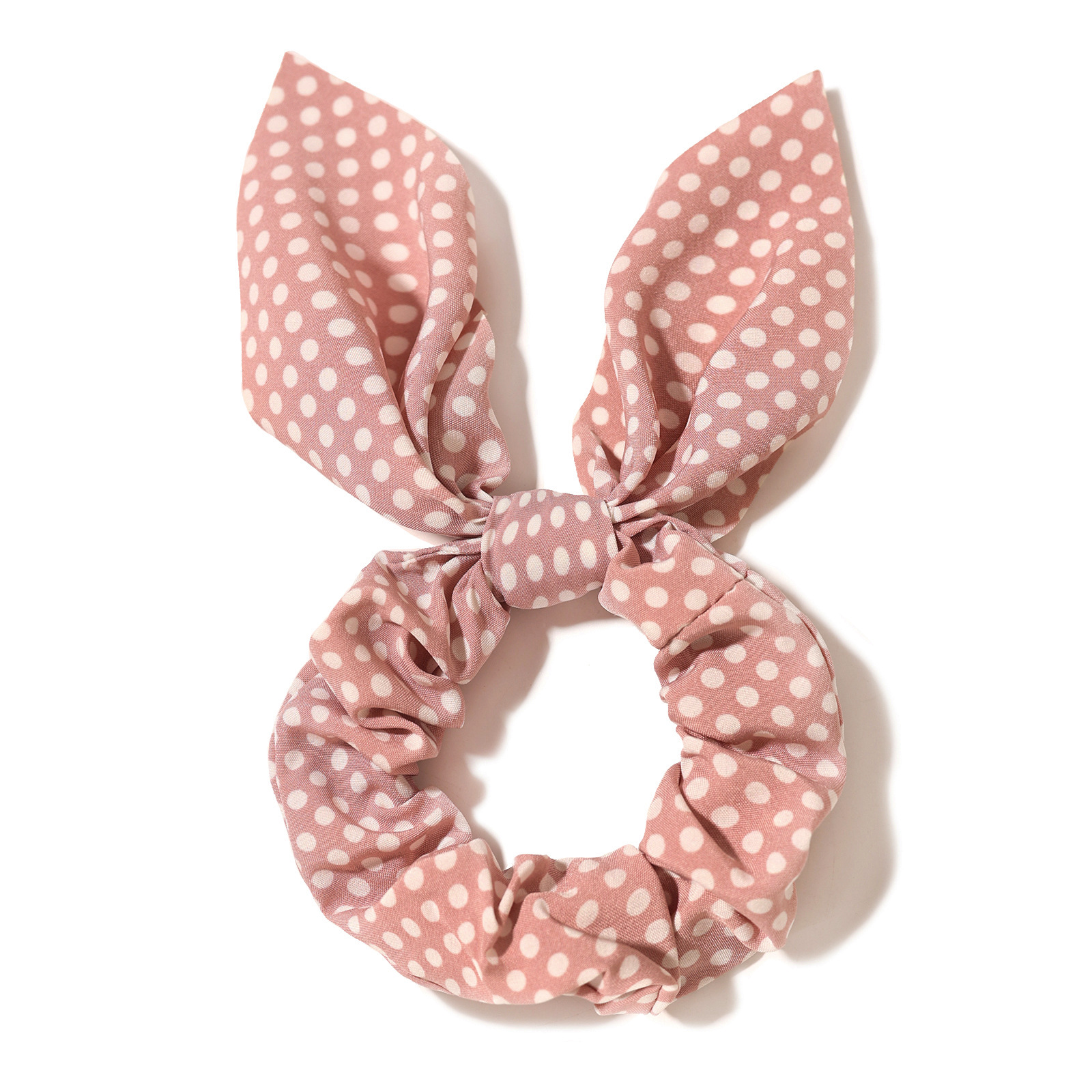 新款圆点印花兔耳朵发圈蝴蝶结松紧大肠发圈女孩马尾辫发绳发饰