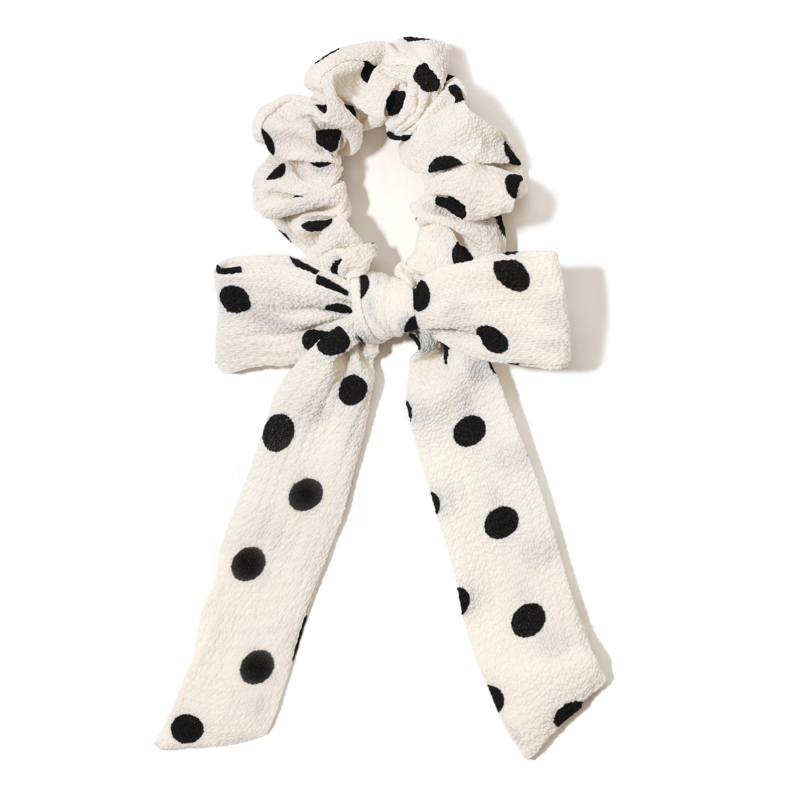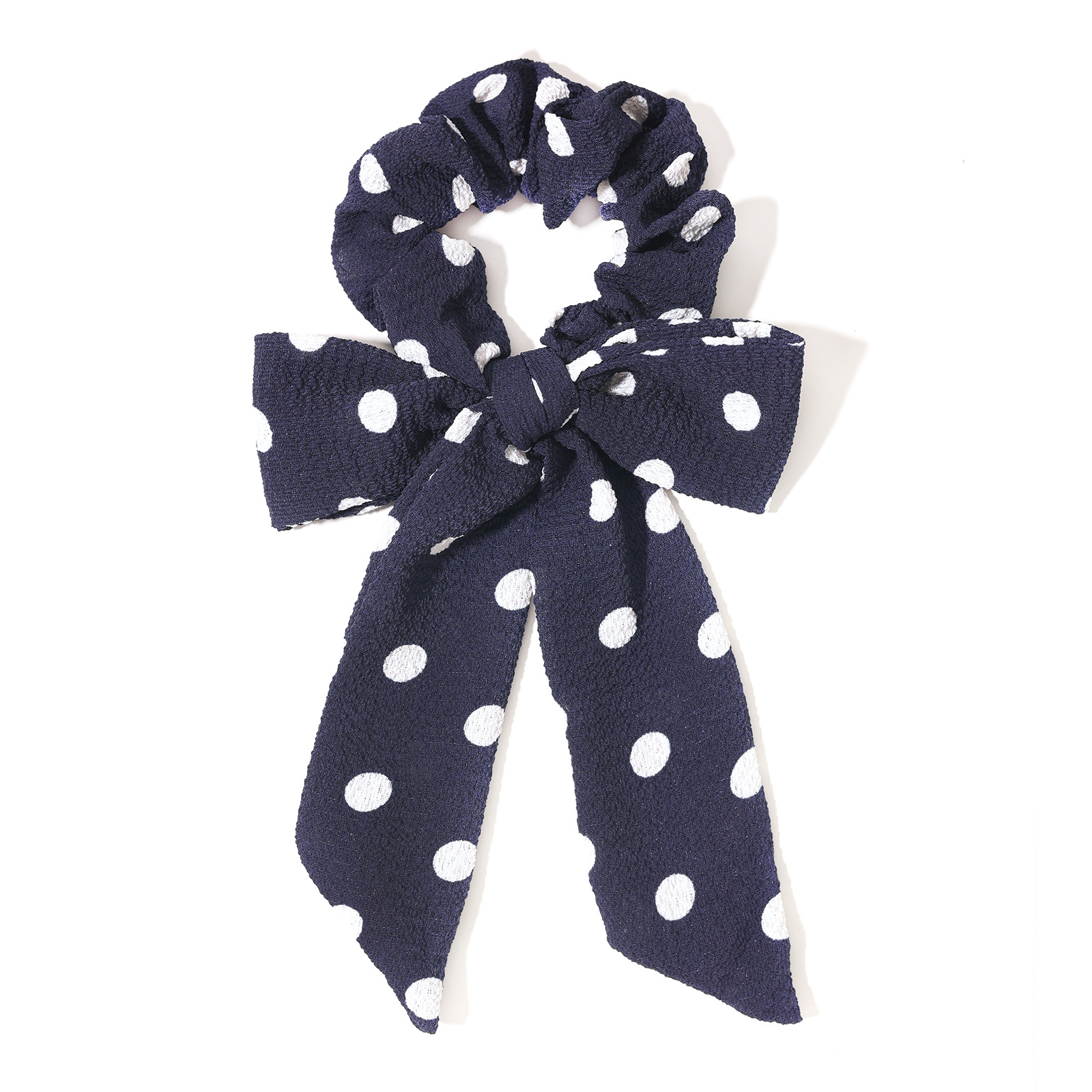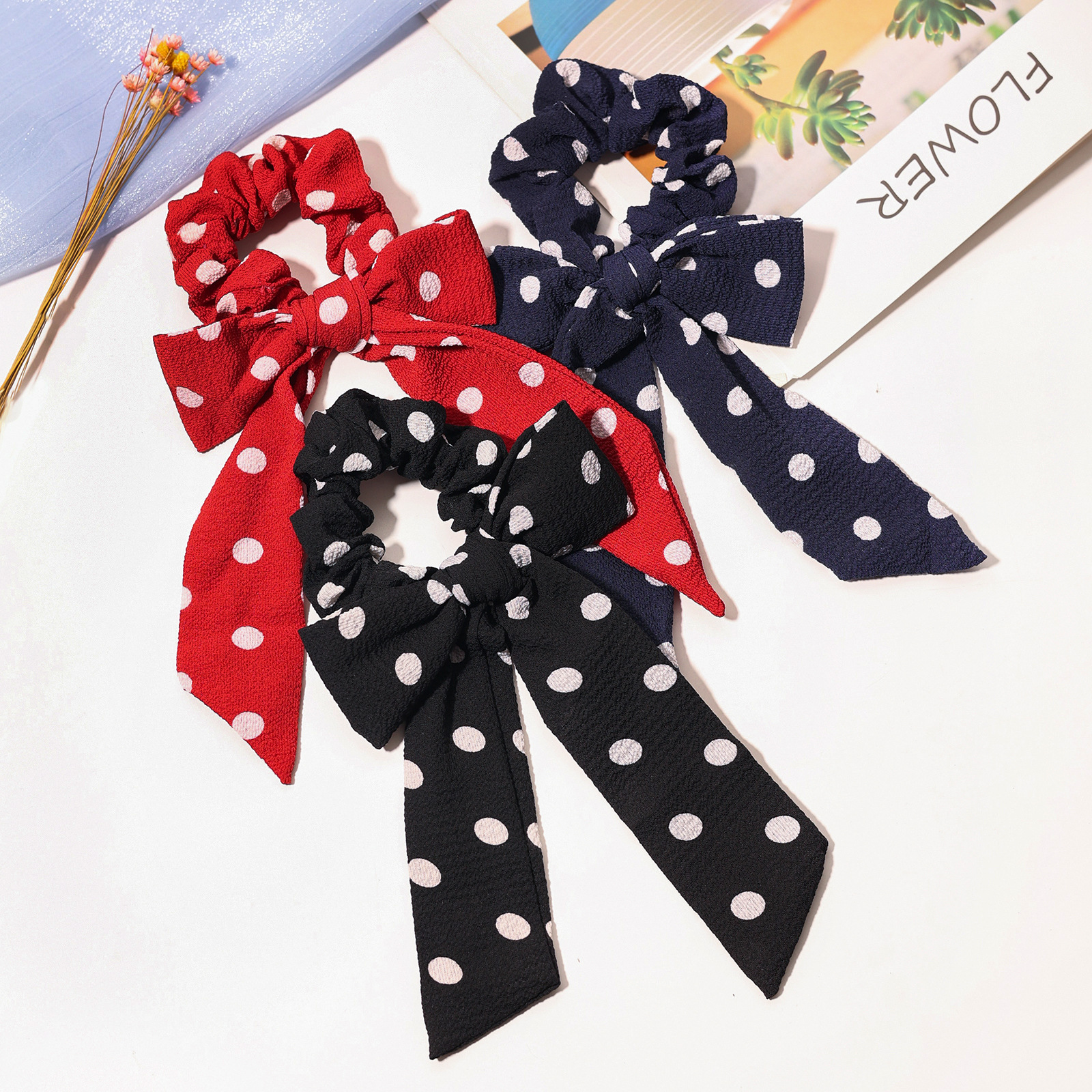 布艺蝴蝶结飘带泡泡棉波点发圈点点印花女士发饰圆点皮筋不伤发