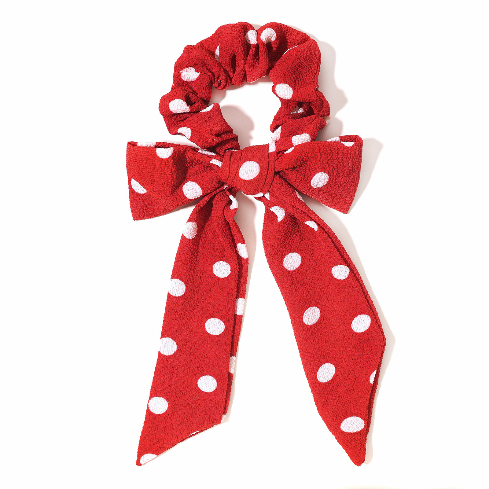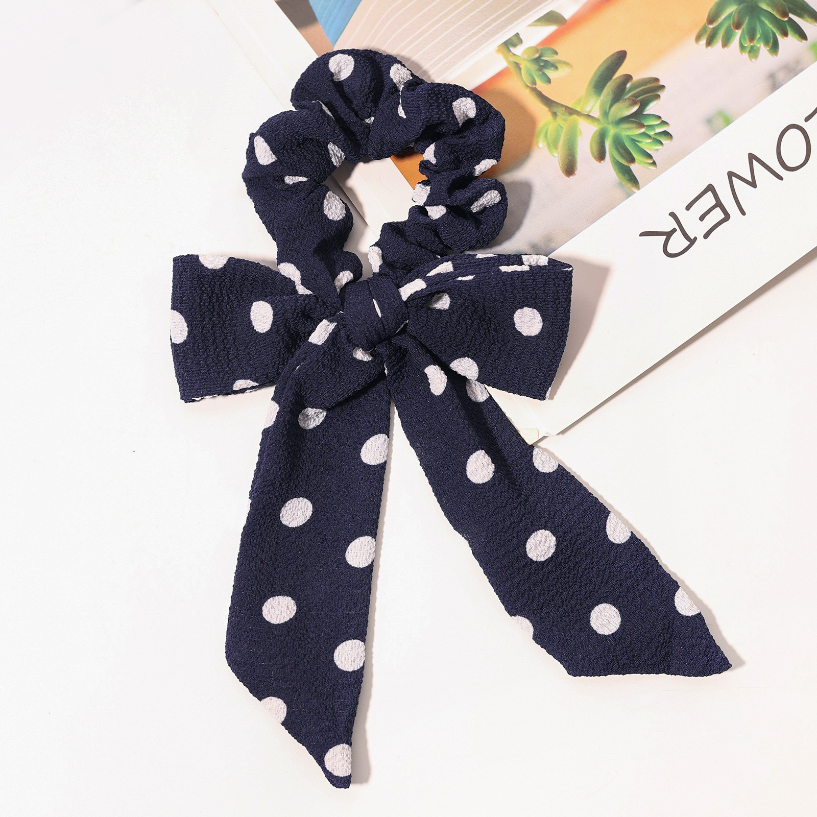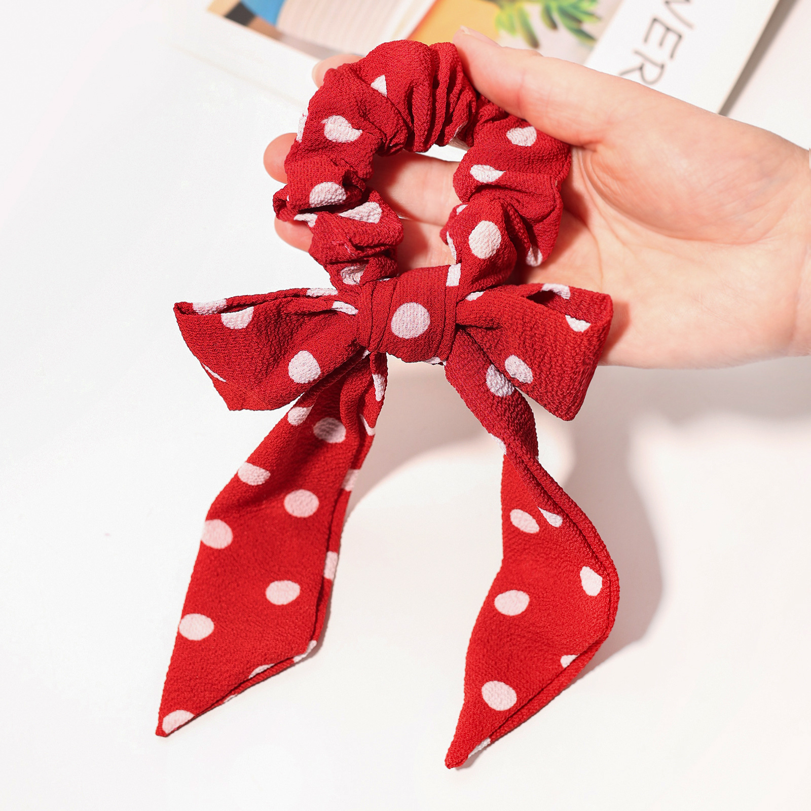 布艺蝴蝶结飘带泡泡棉波点发圈点点印花女士发饰圆点皮筋不伤发