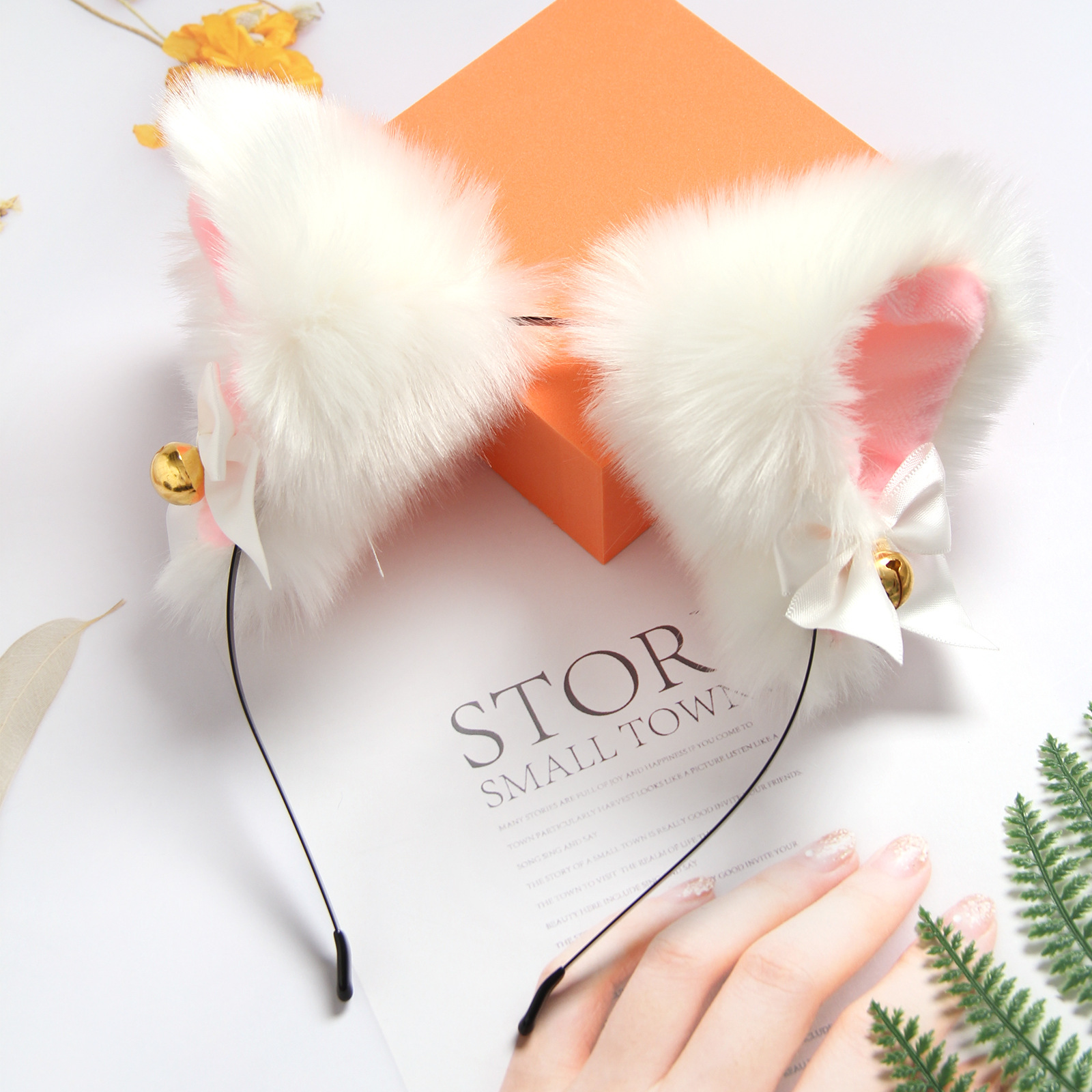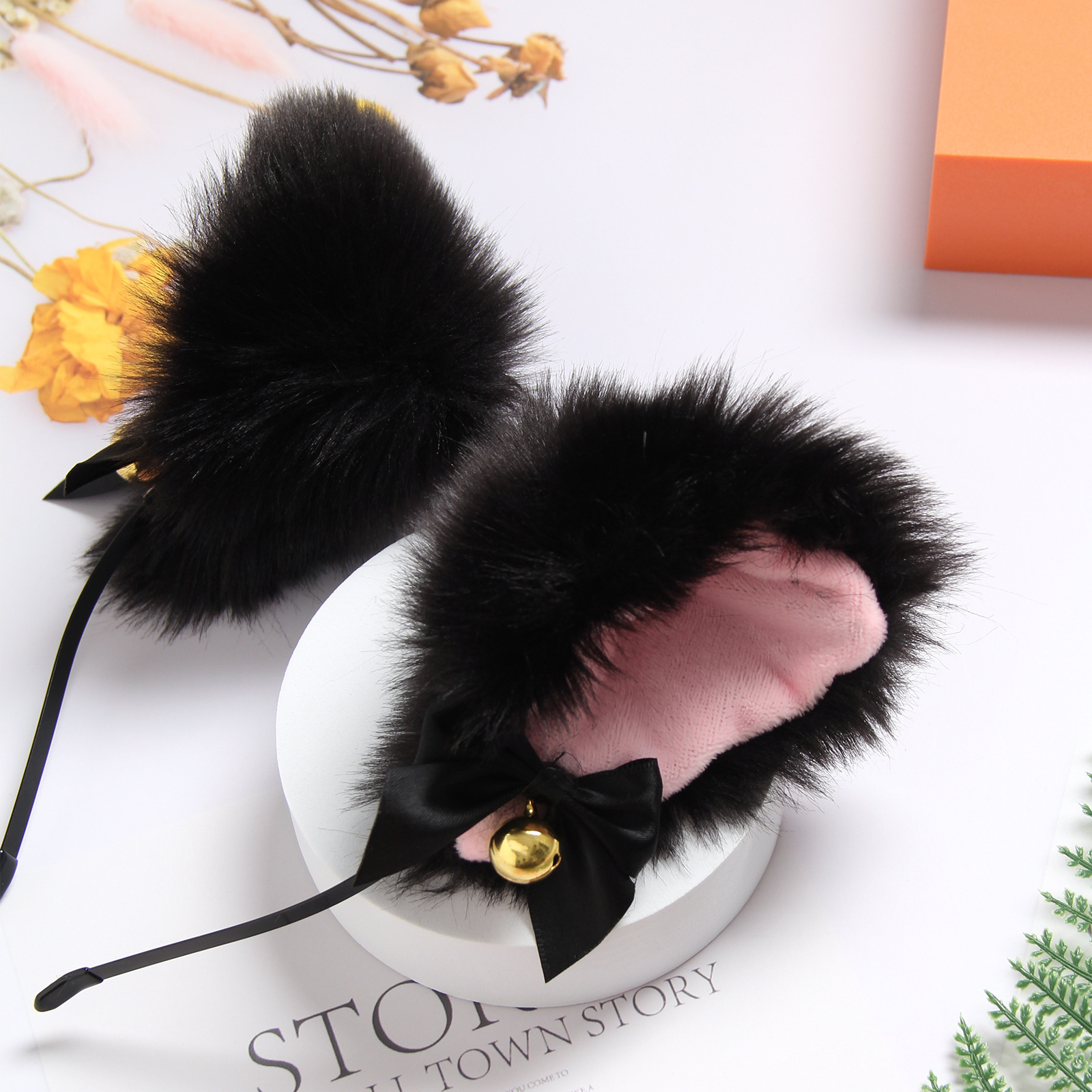 可爱萌系毛绒猫耳发箍发饰猫耳铃铛Cosplay毛绒猫耳朵发箍
