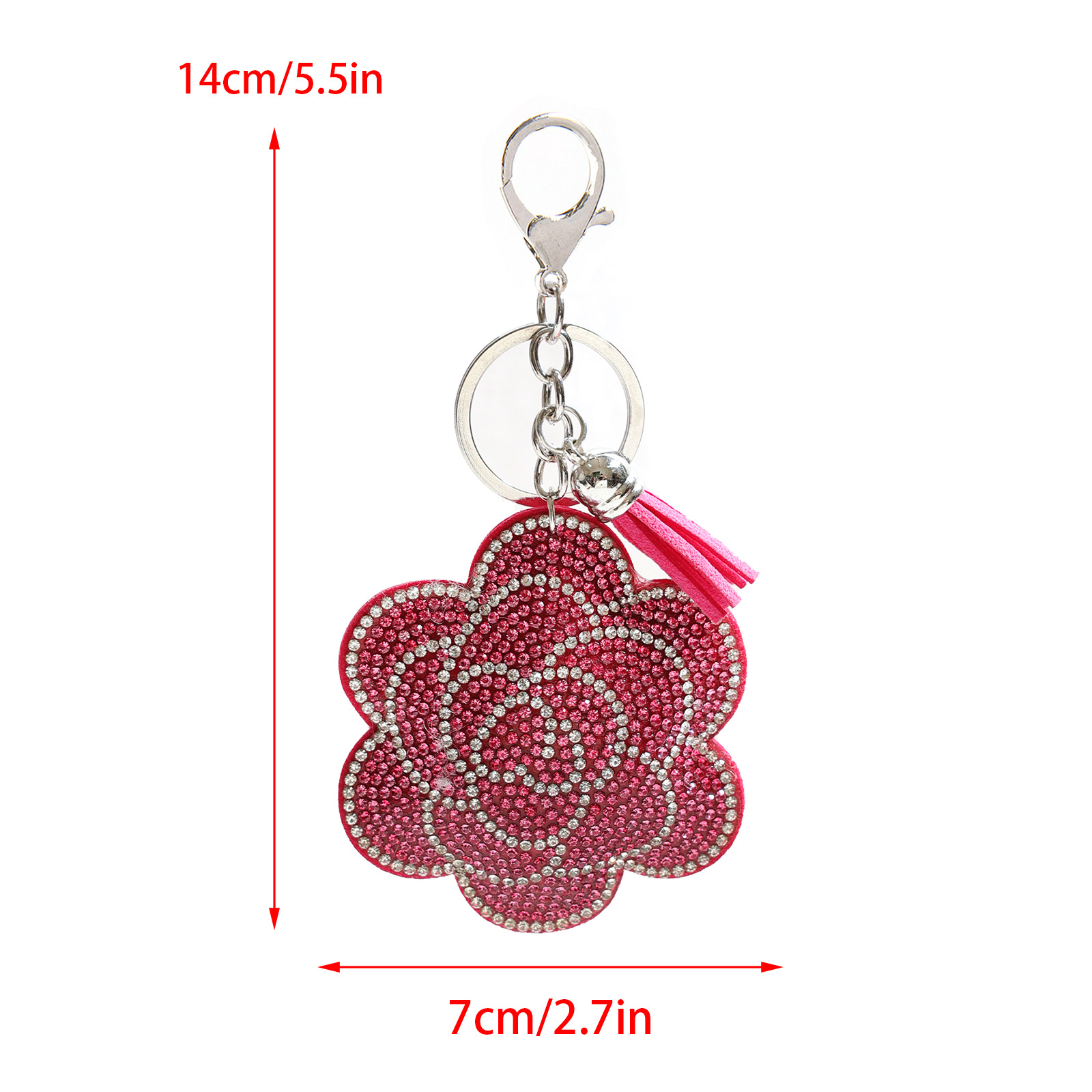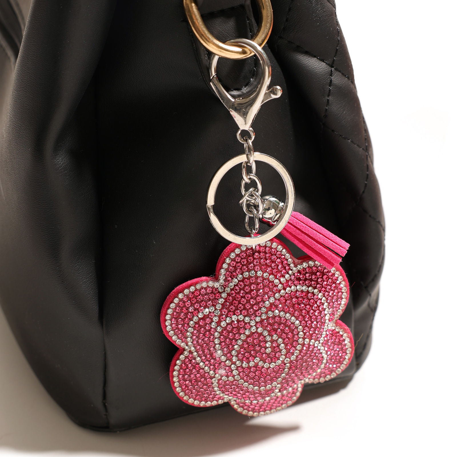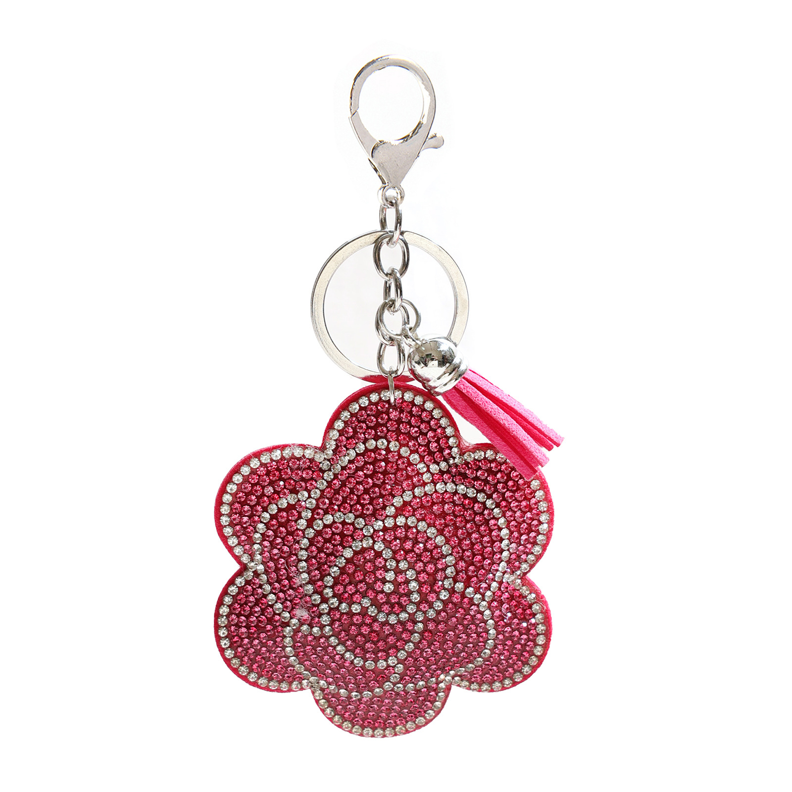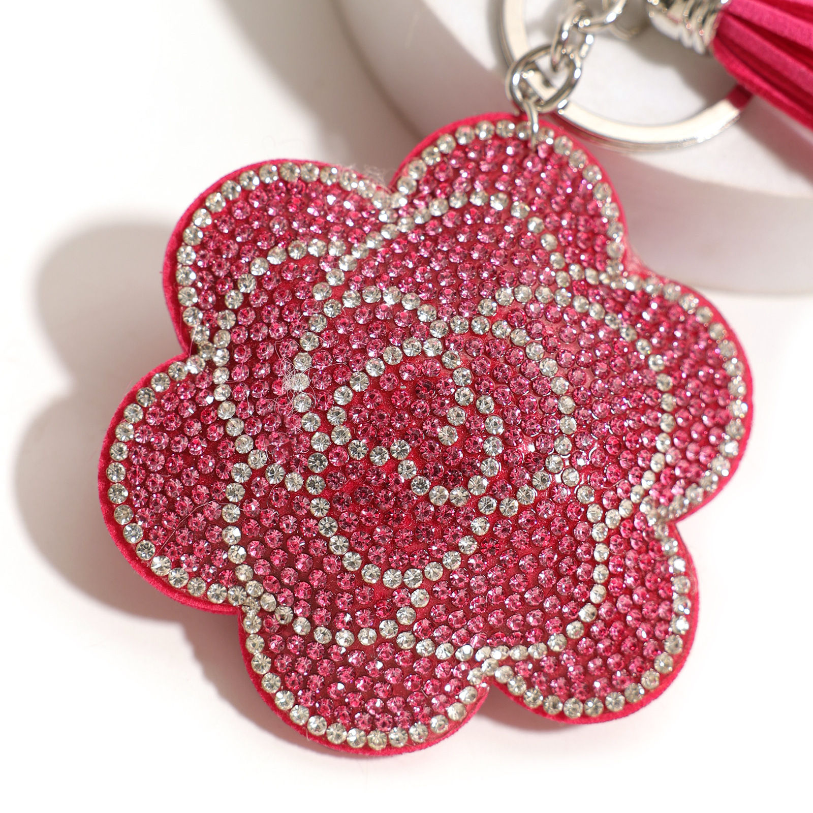创意绒布烫钻花朵钥匙扣可爱包包流苏水钻挂件挂饰钥匙扣配饰