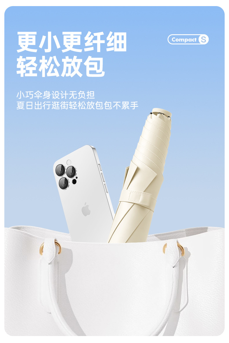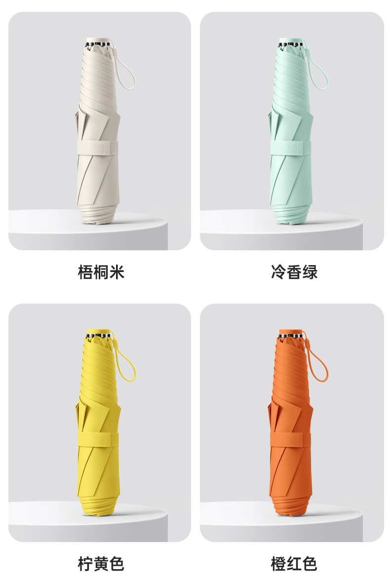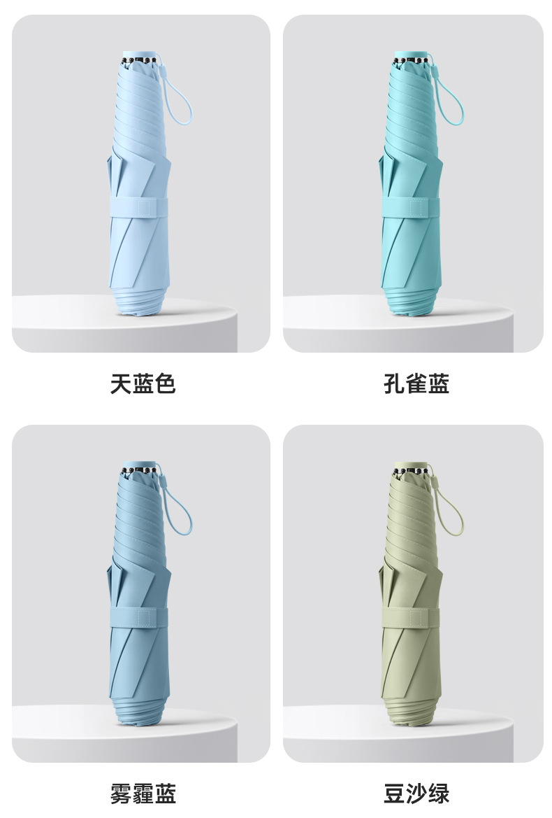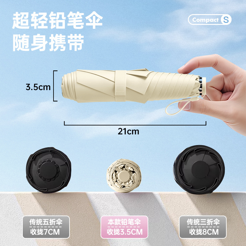 超轻便捷三折6骨铅笔伞晴雨两用广告伞定制logo黑胶遮阳伞礼品伞