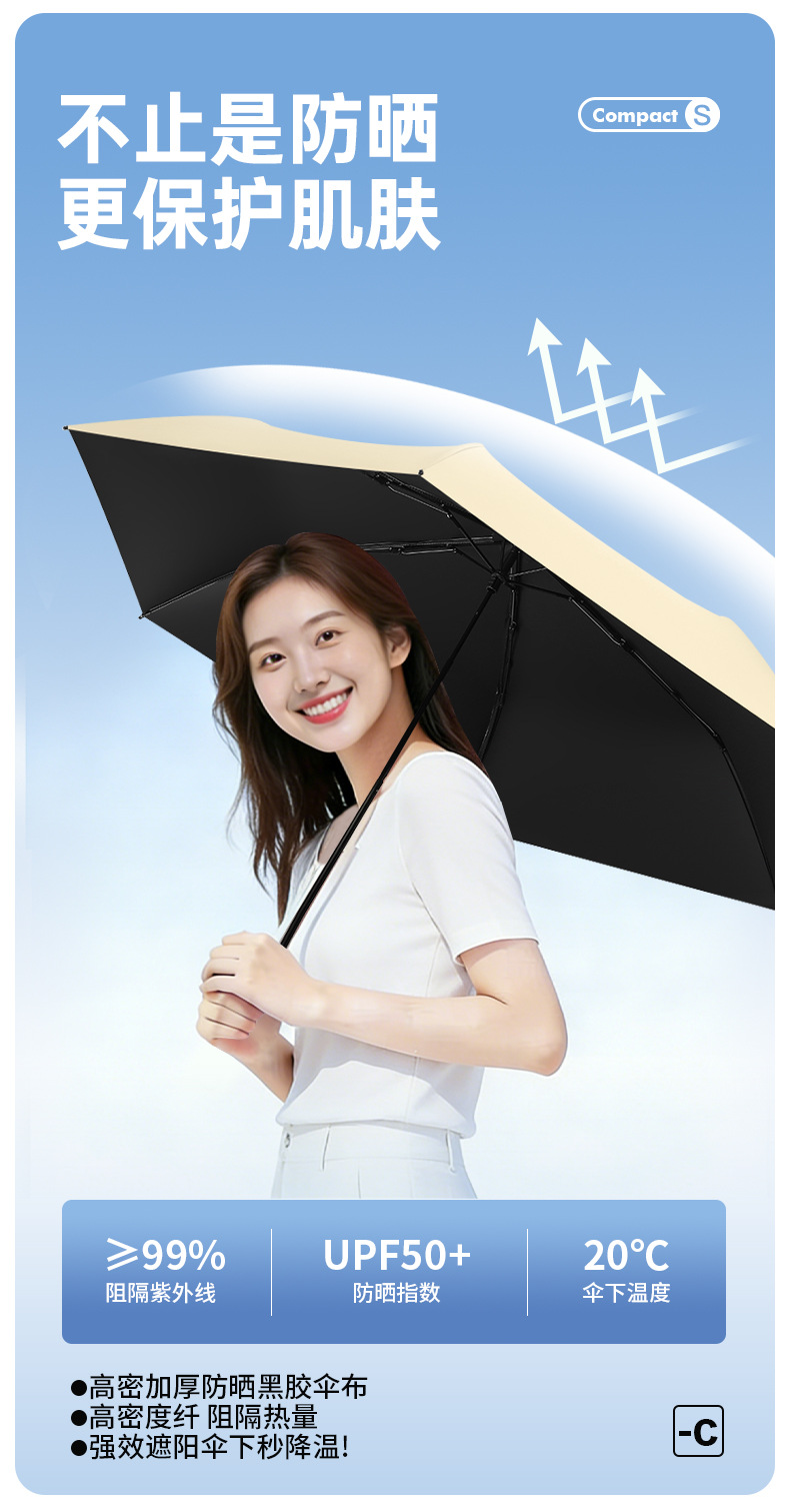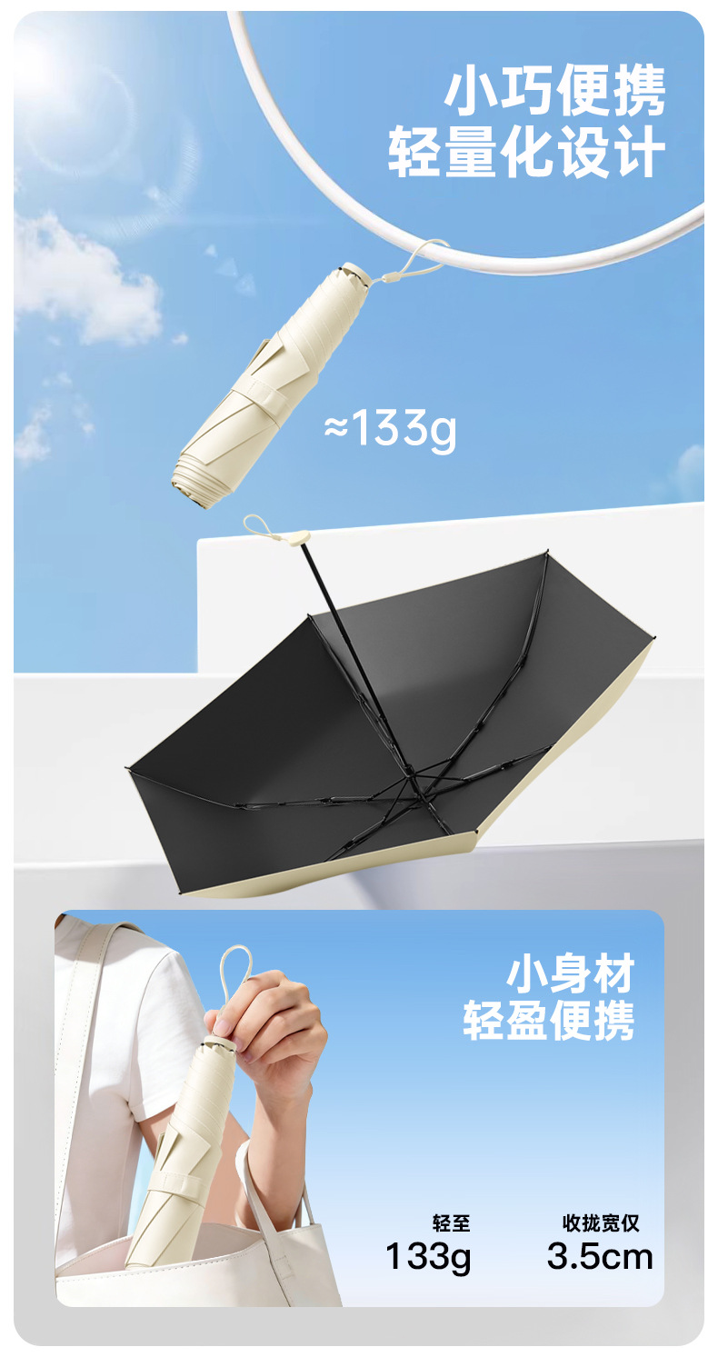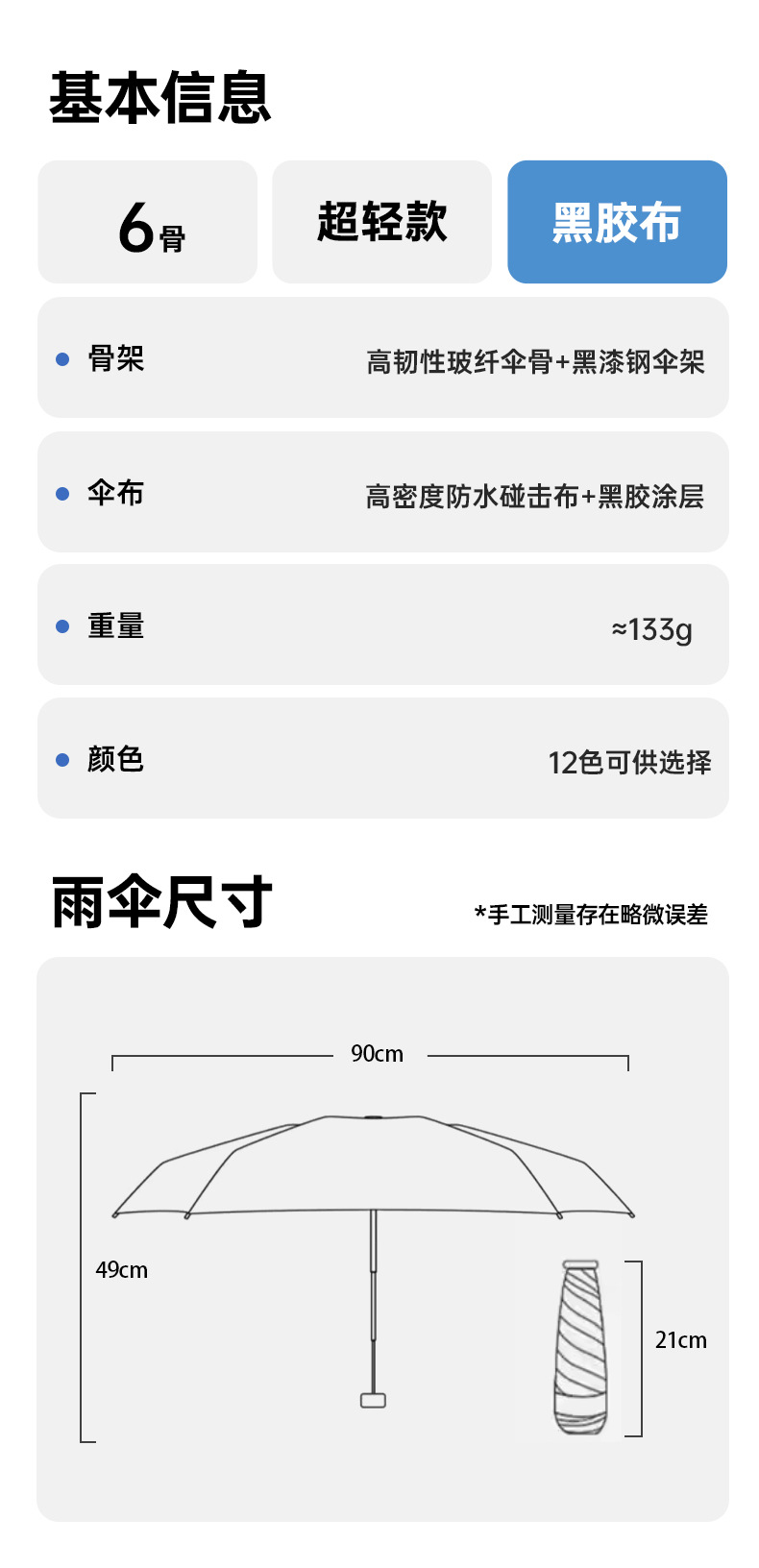 超轻便捷三折6骨铅笔伞晴雨两用广告伞定制logo黑胶遮阳伞礼品伞