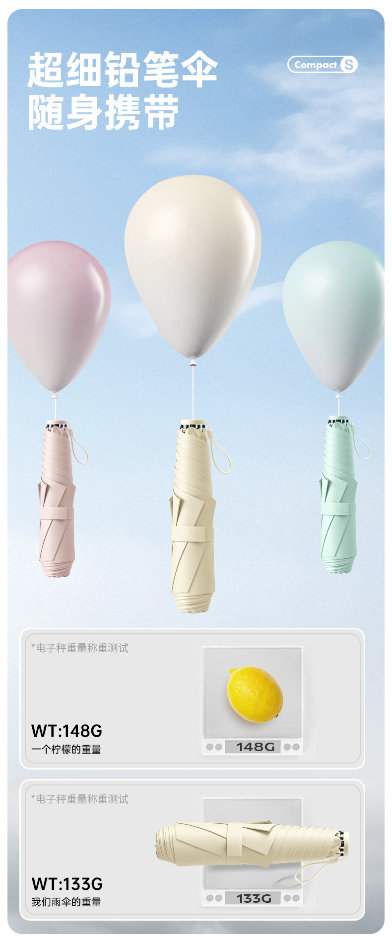 超轻便捷6骨铅笔伞-天空蓝 USD $4.18 5000 piece available