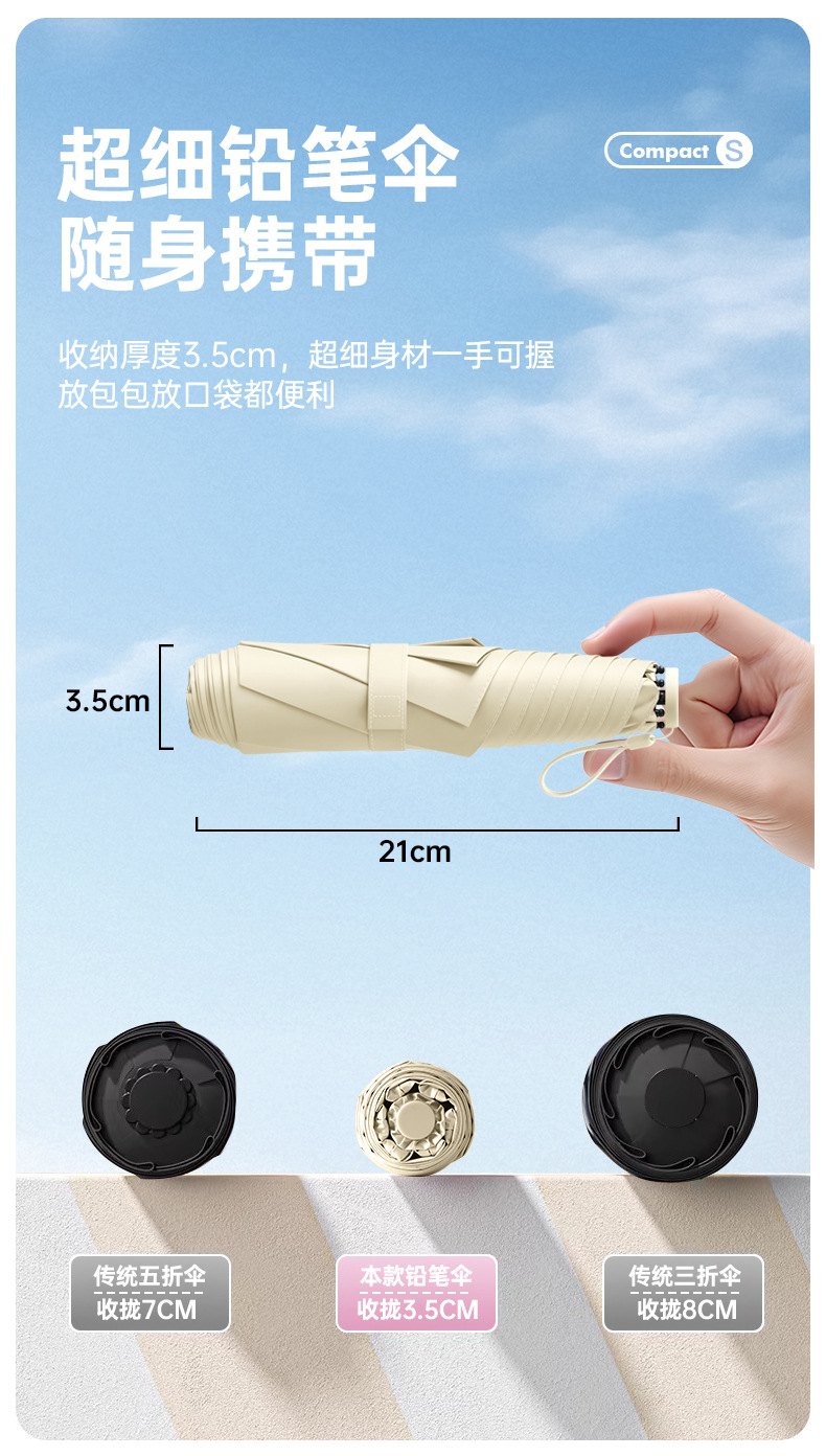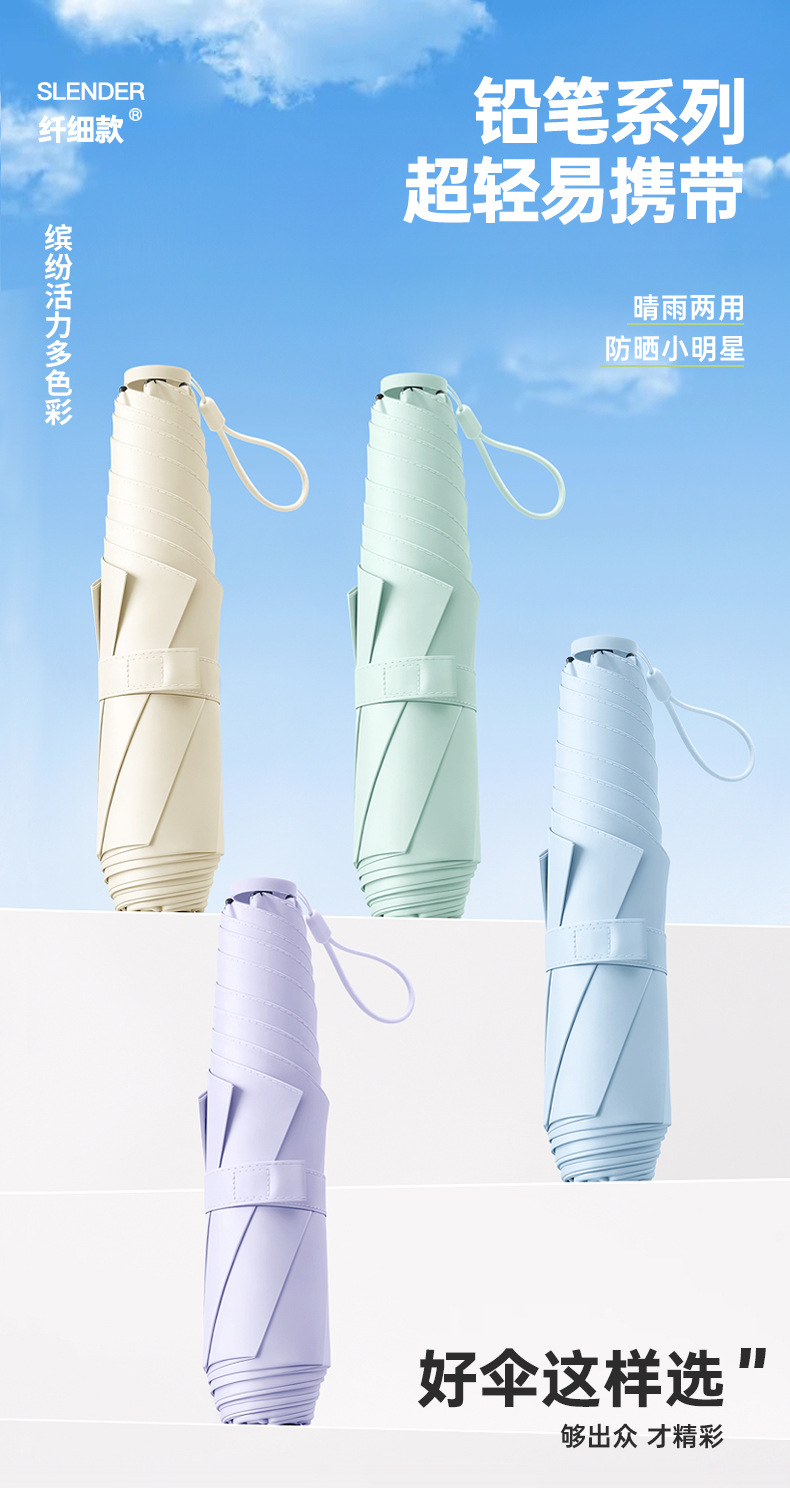 超轻便捷6骨铅笔伞-梧桐米 USD $4.18 5000 piece available
