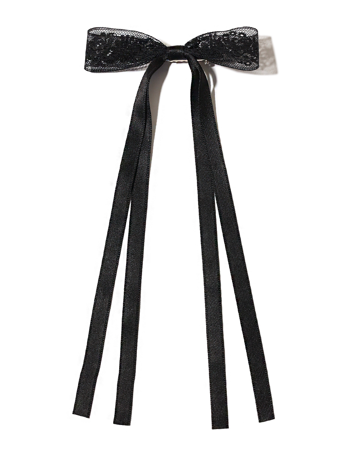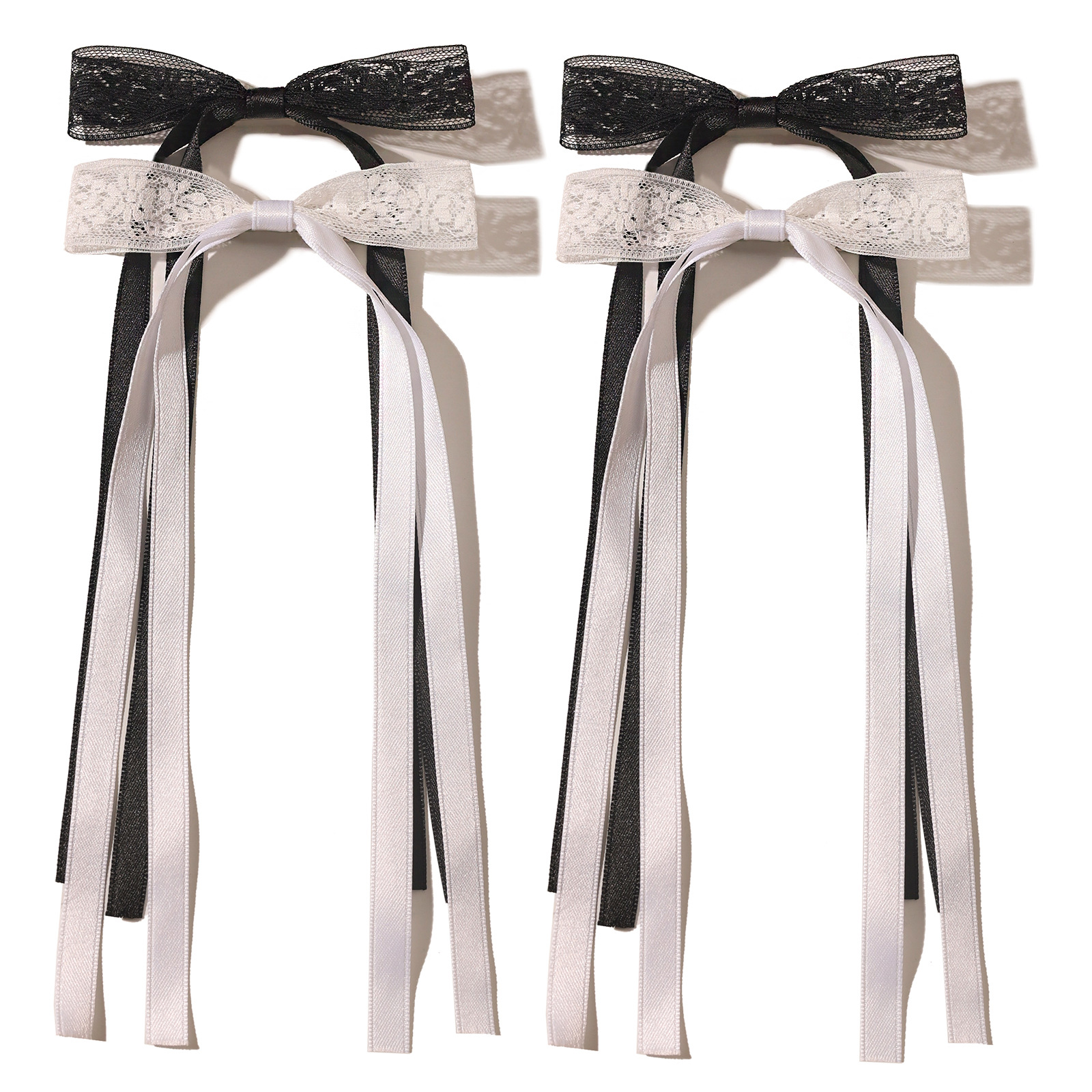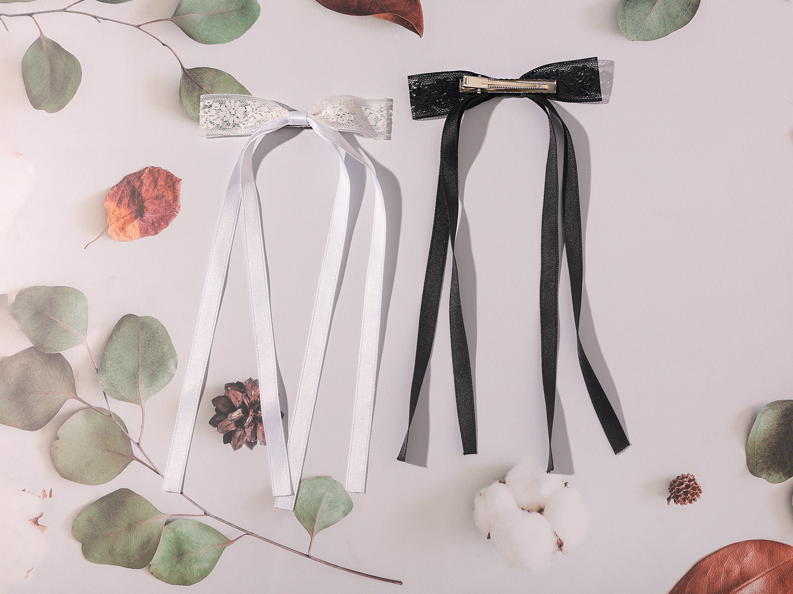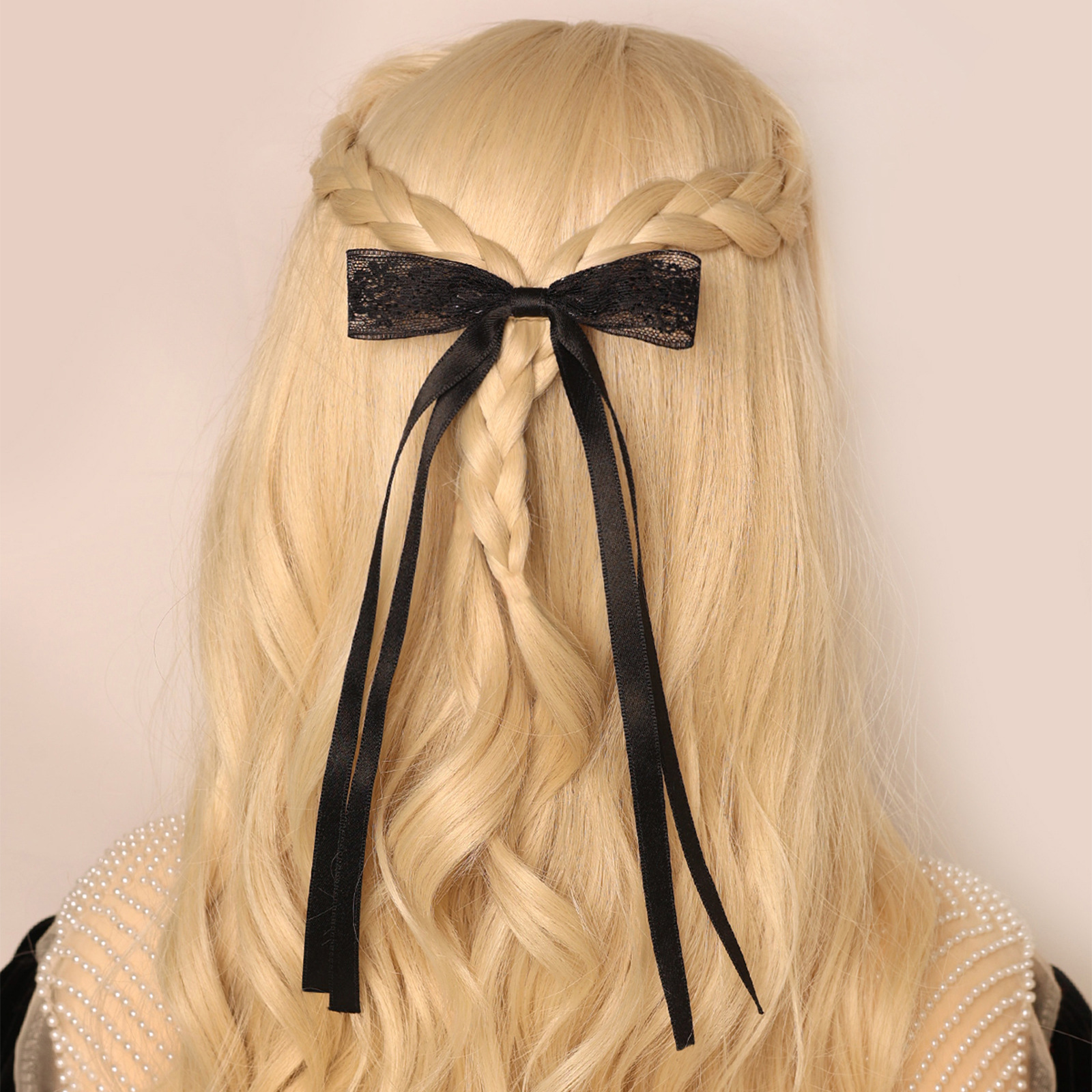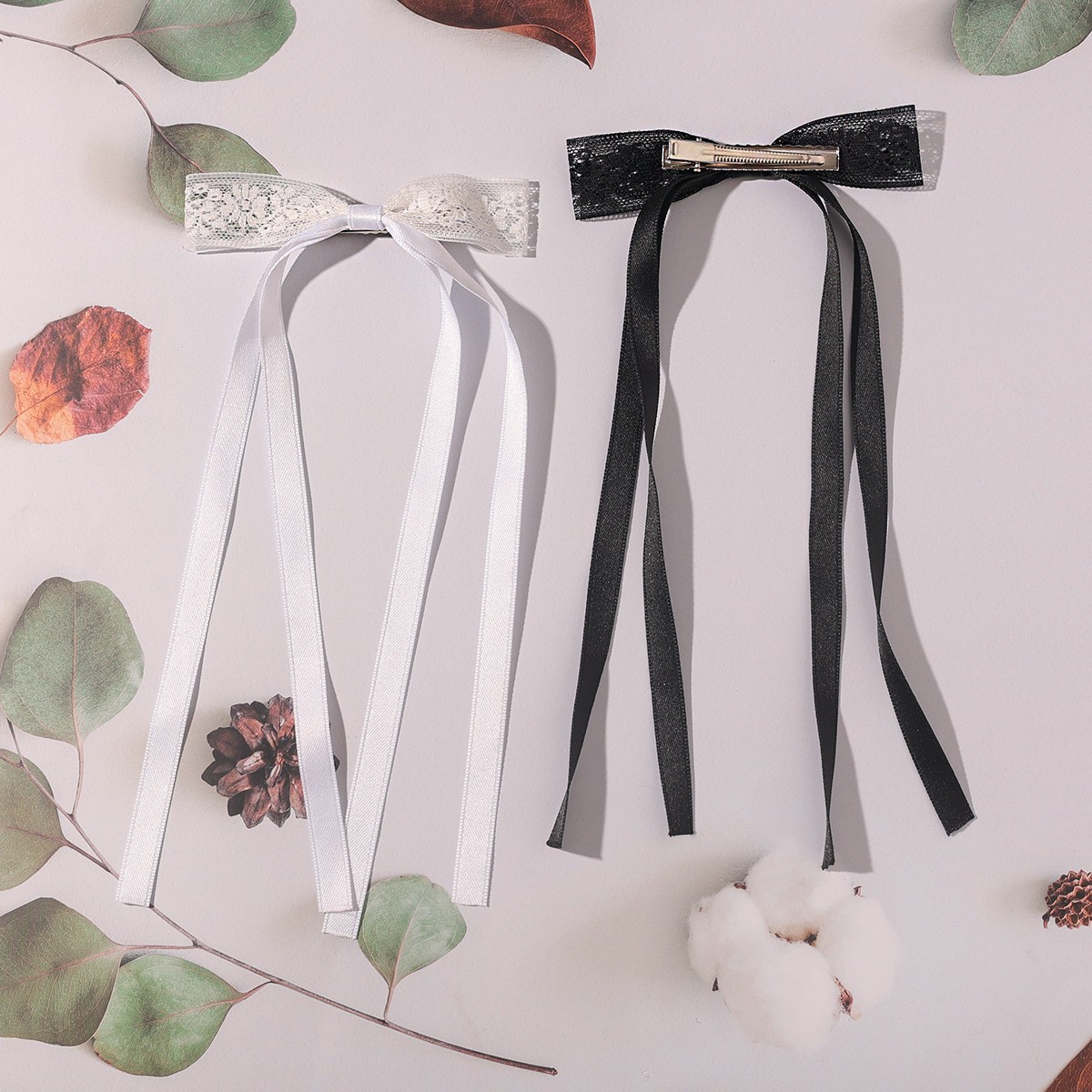 日韩森系双层织带蕾丝蝴蝶结鸭嘴夹超仙甜美黑白蕾丝顶夹边夹发饰
