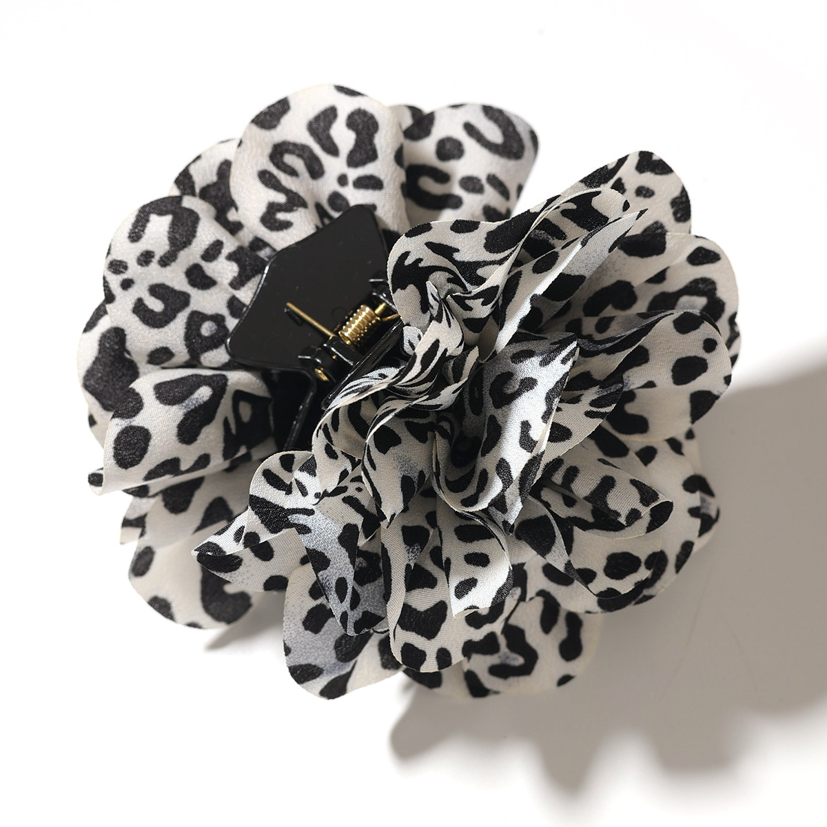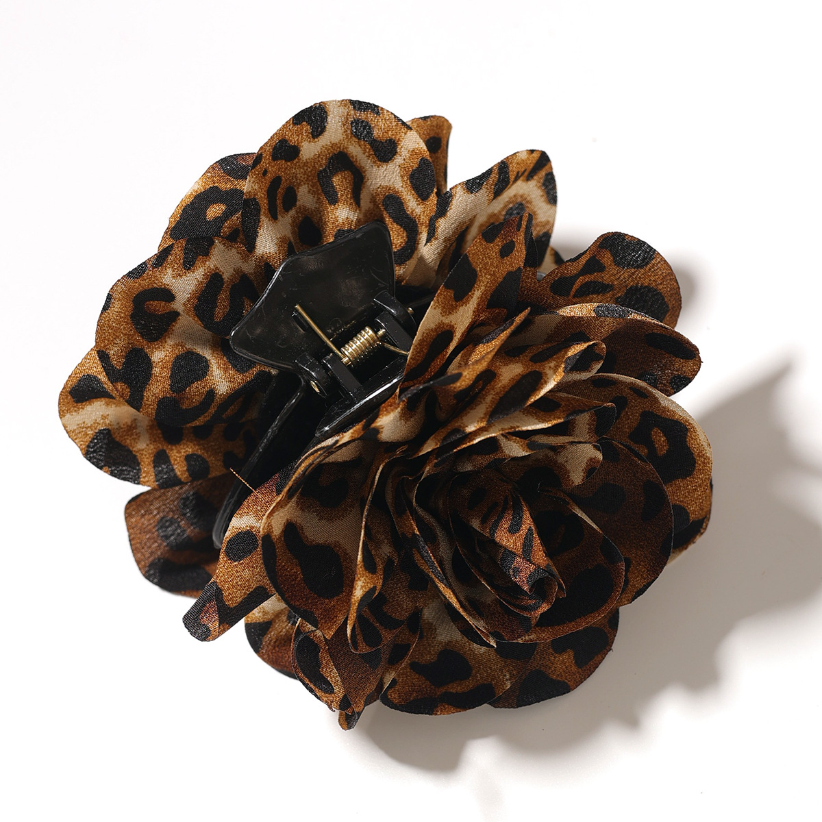 时尚布艺豹纹山茶花抓夹欧美个性女生后脑勺盘发花朵抓夹发饰