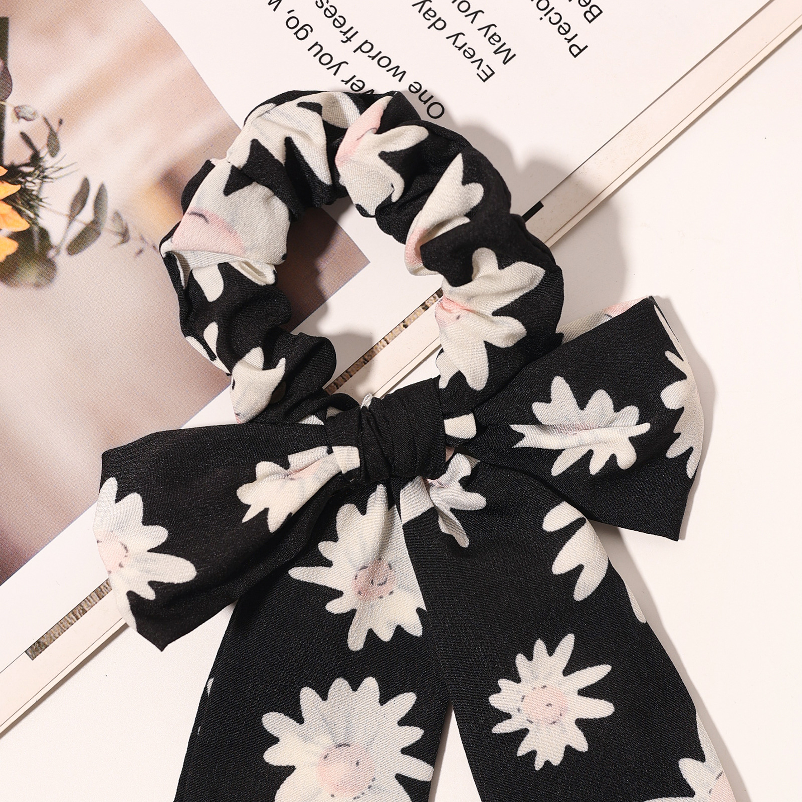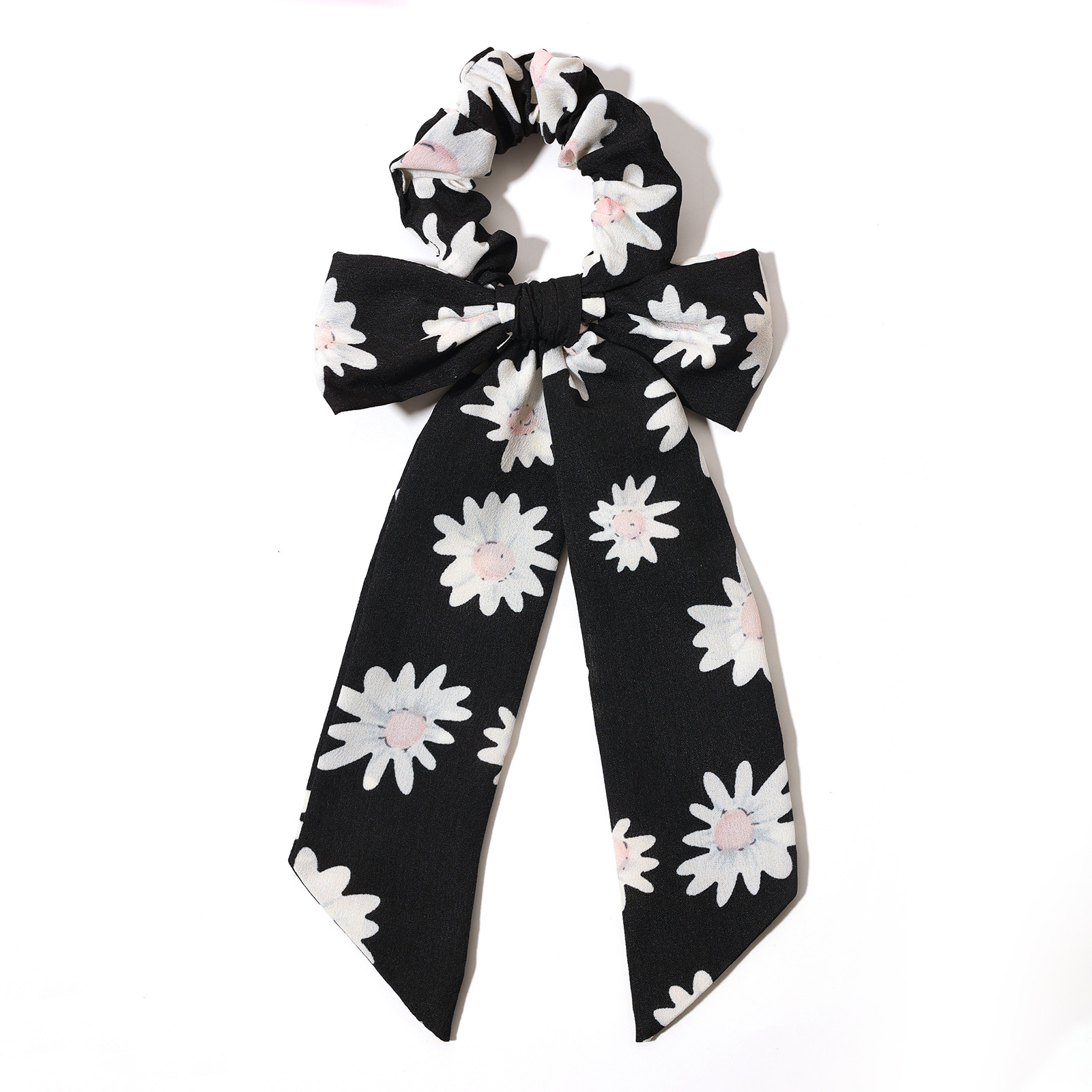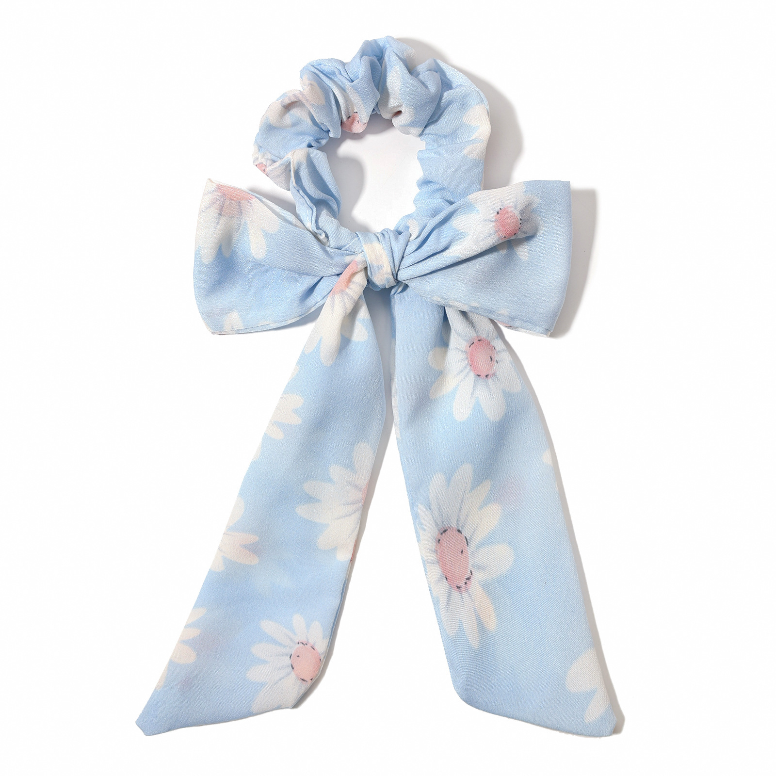 印花雏菊蝴蝶结飘带大肠发圈 韩版布艺头绳发饰女士头饰