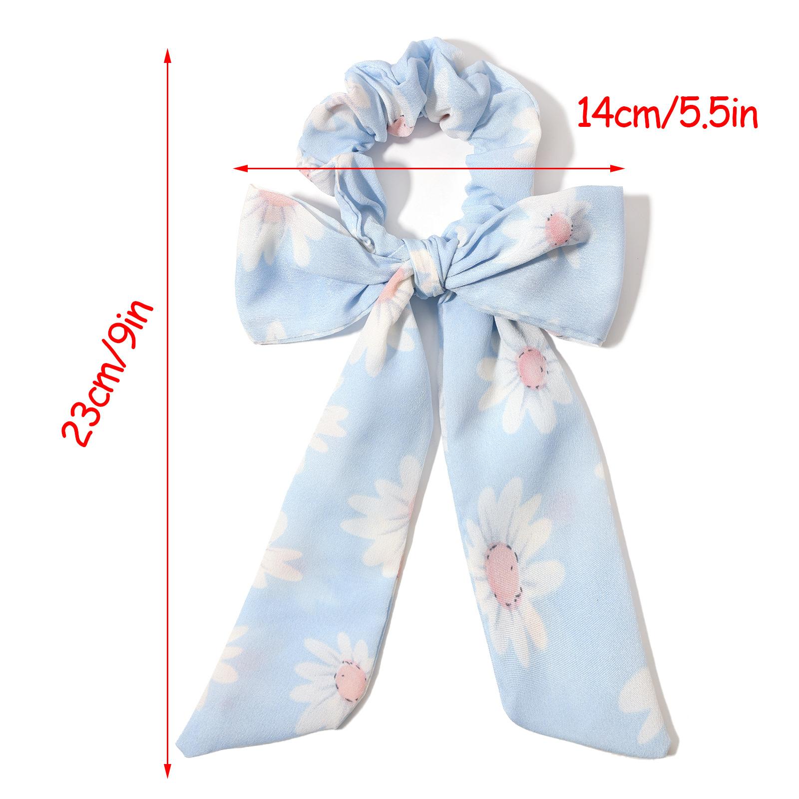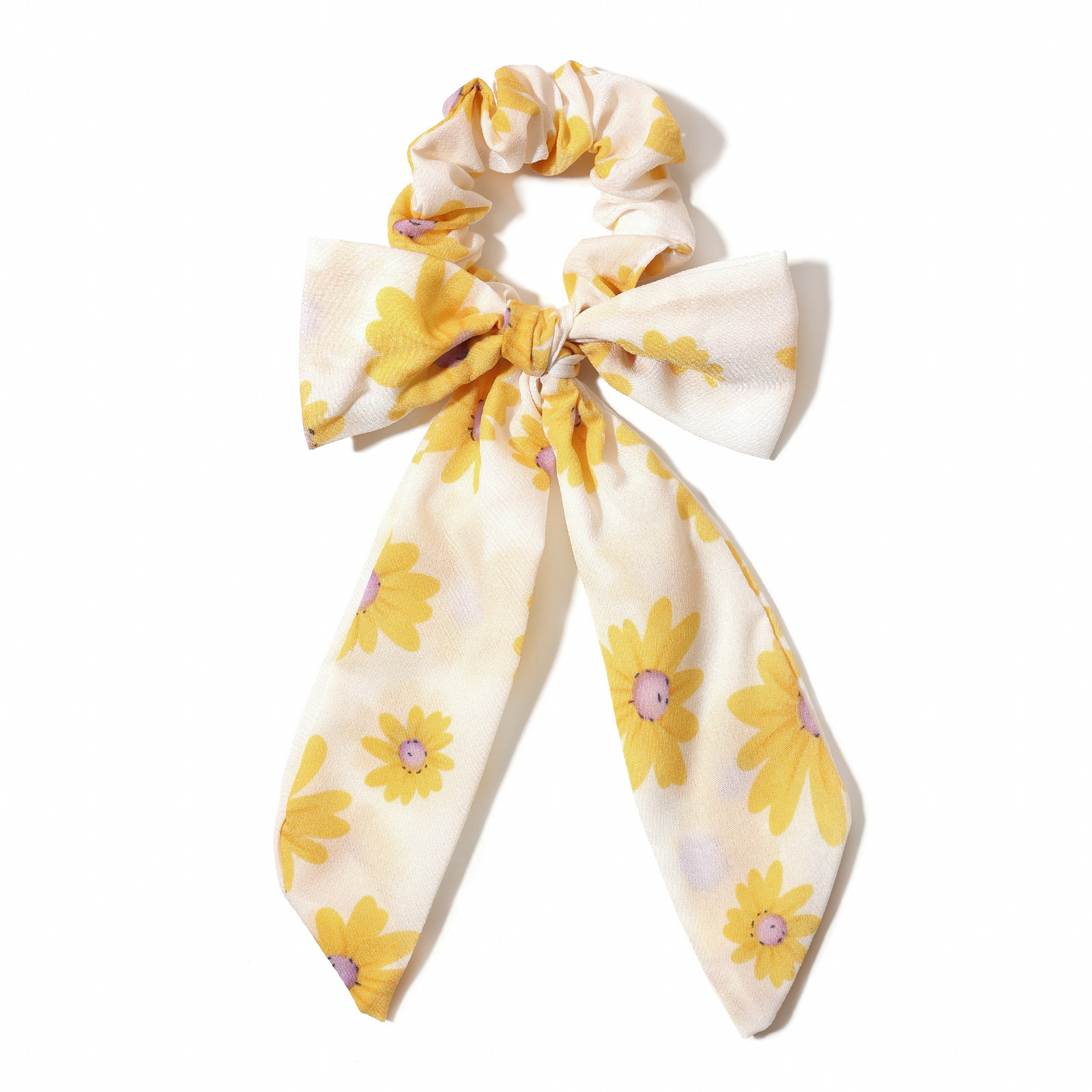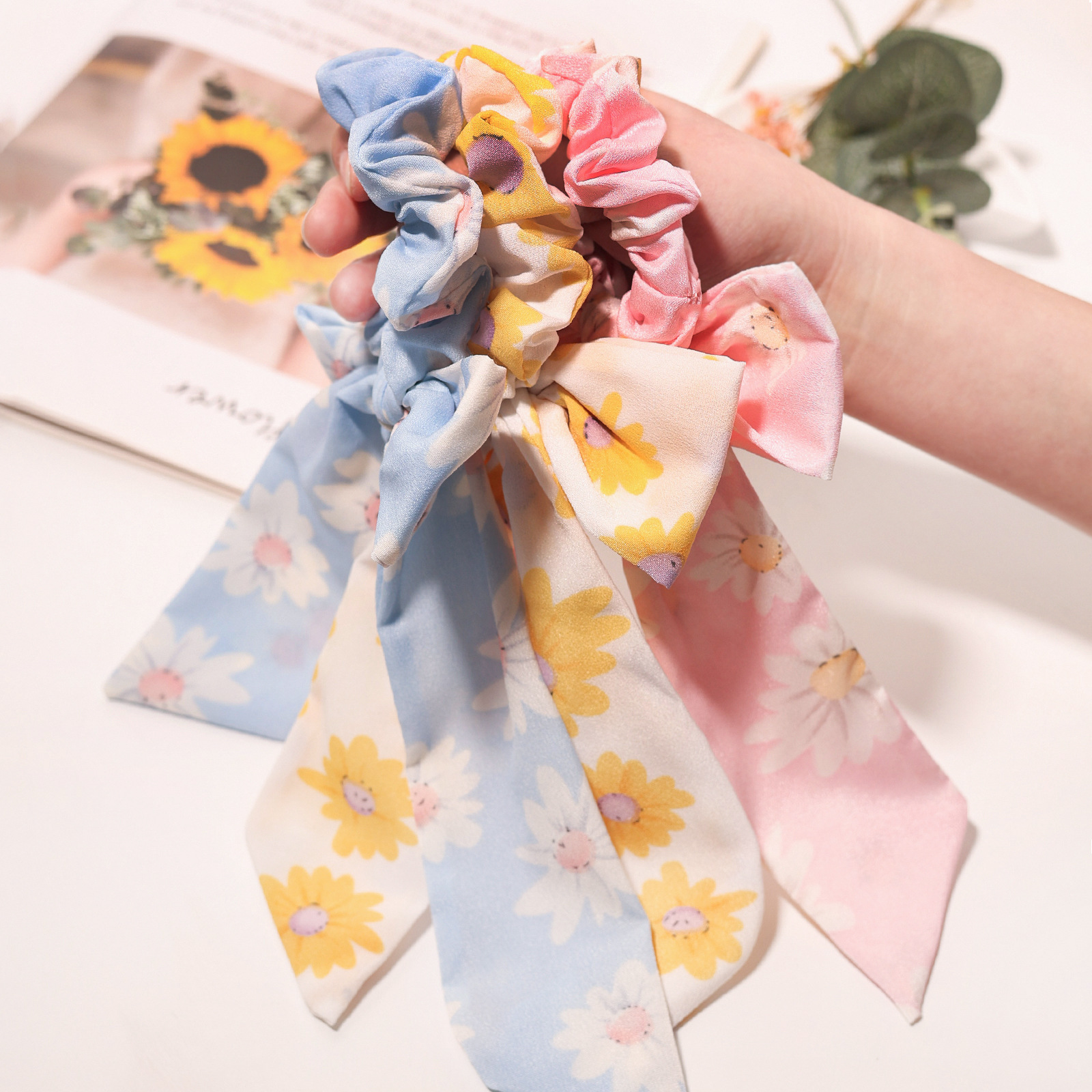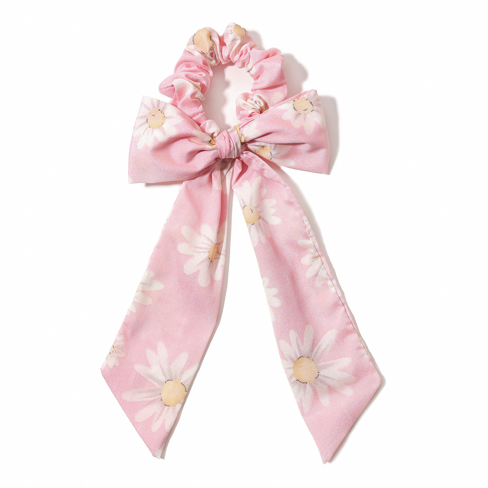 印花雏菊蝴蝶结飘带大肠发圈 韩版布艺头绳发饰女士头饰