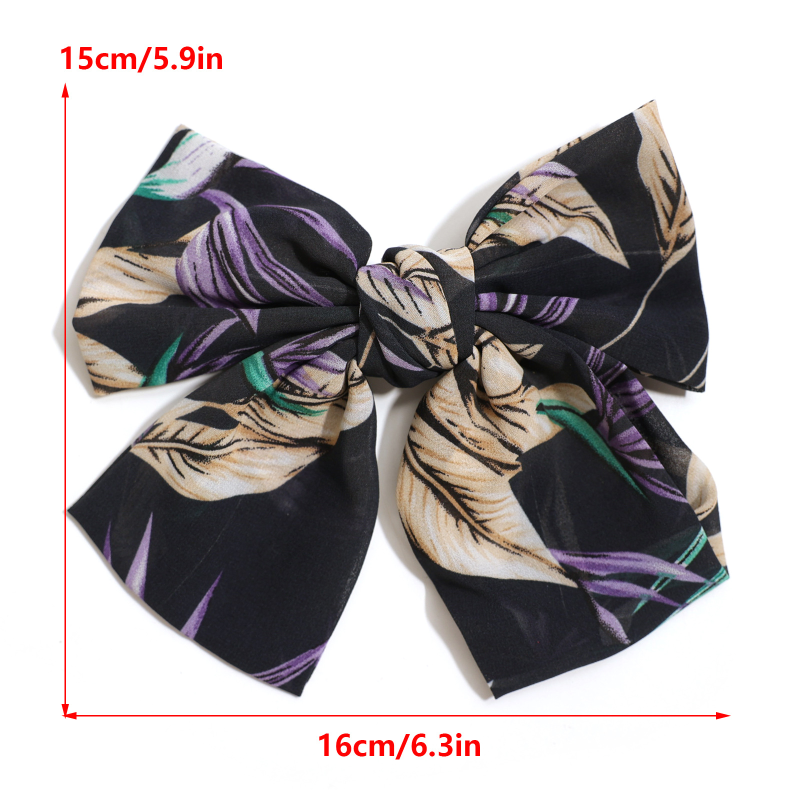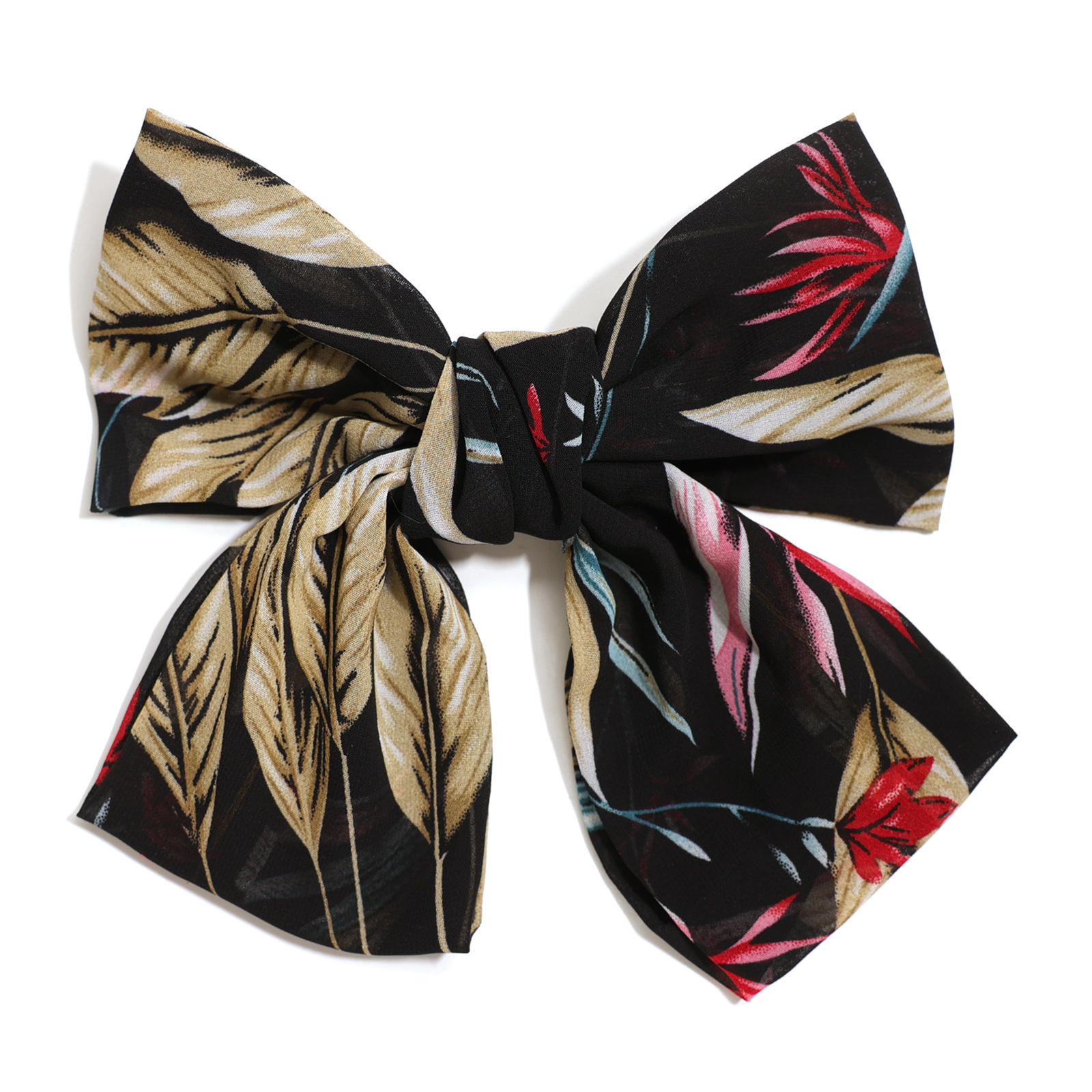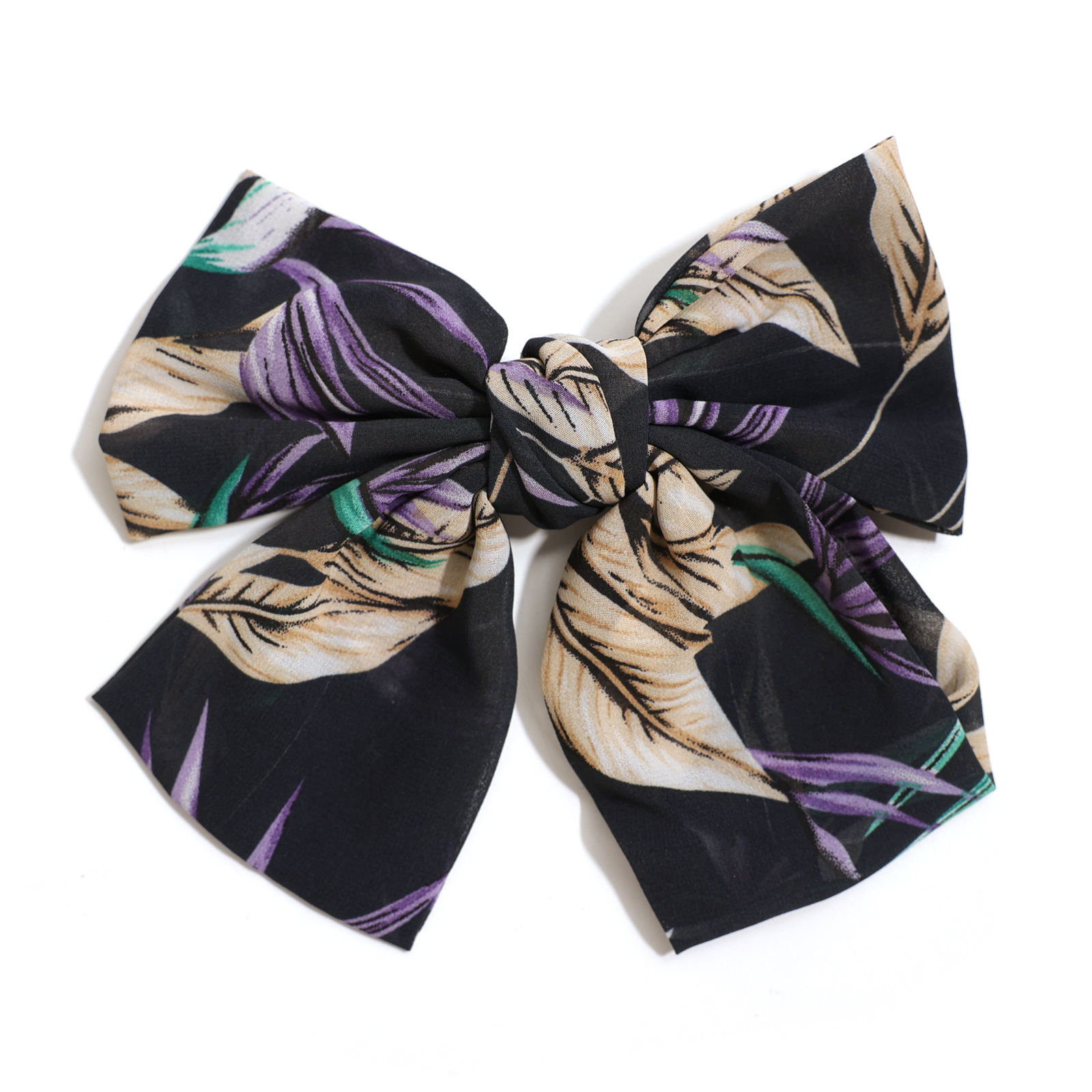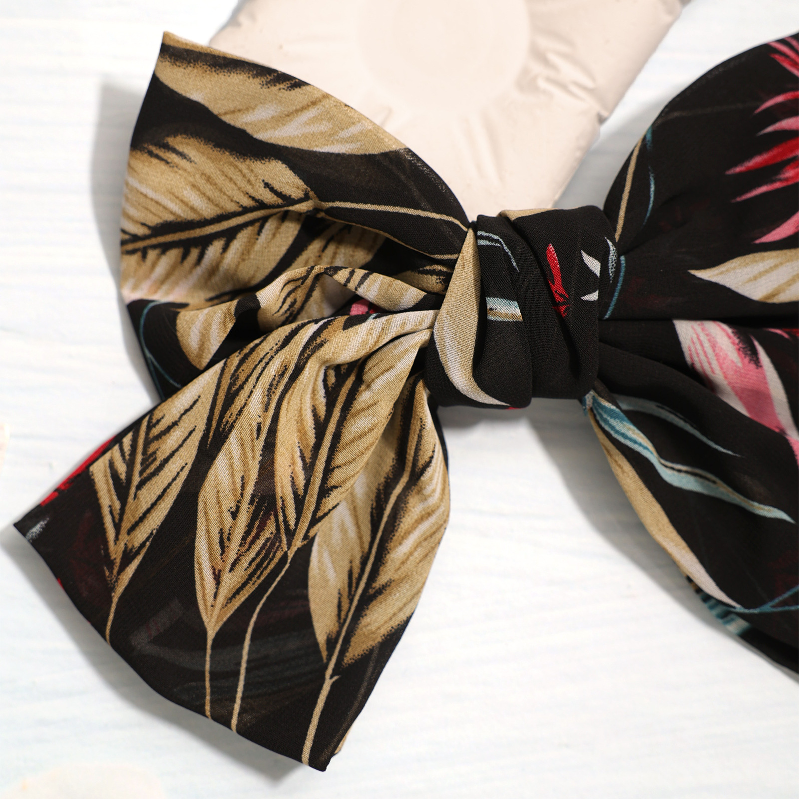 韩版气质羽毛印花蝴蝶结发夹女后脑勺半扎马尾印花飘带弹簧夹头饰