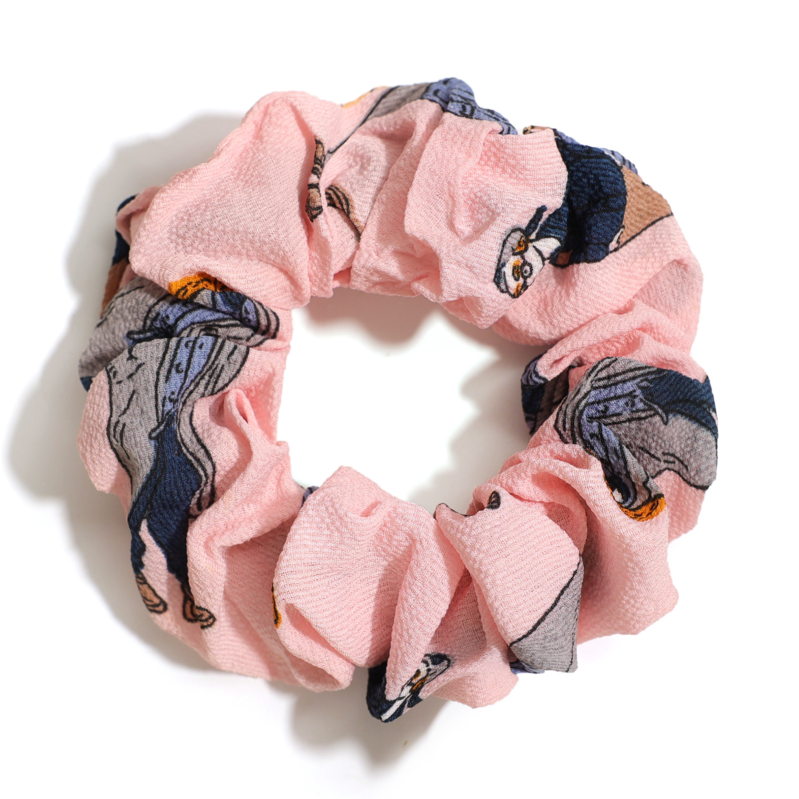 韩版卡通人物泡泡棉布艺印花发圈女性束头花扎马尾清新发绳头饰