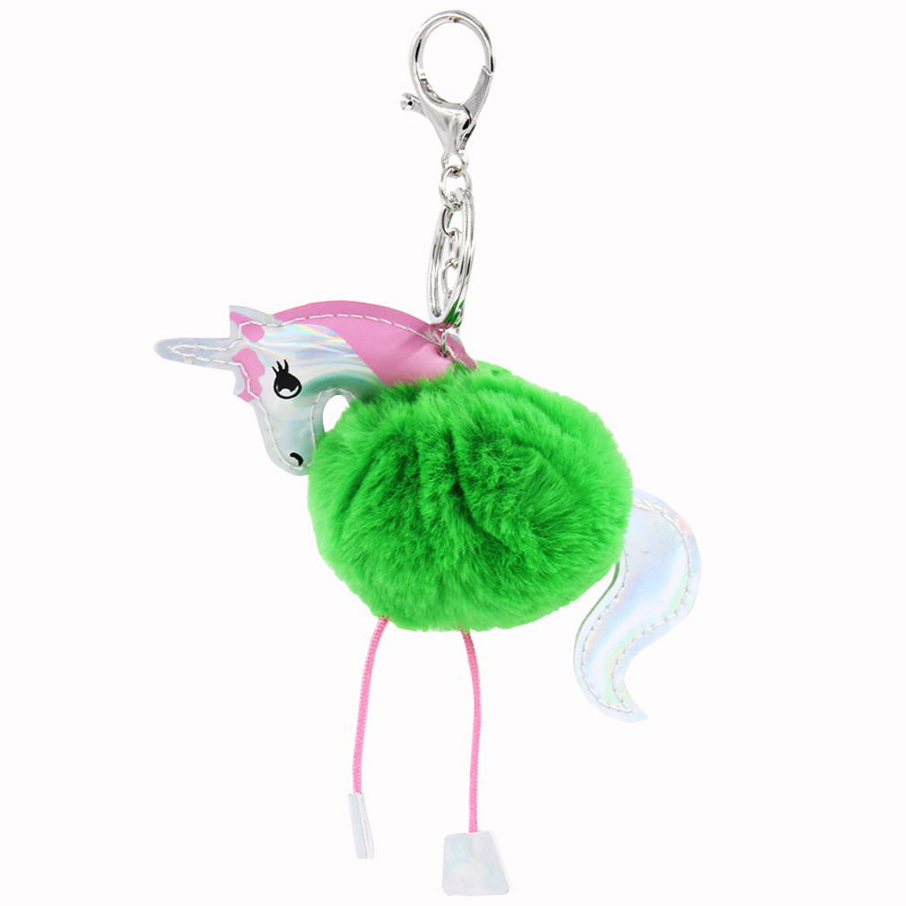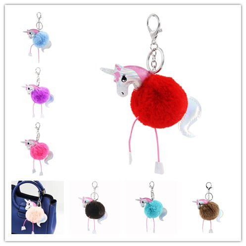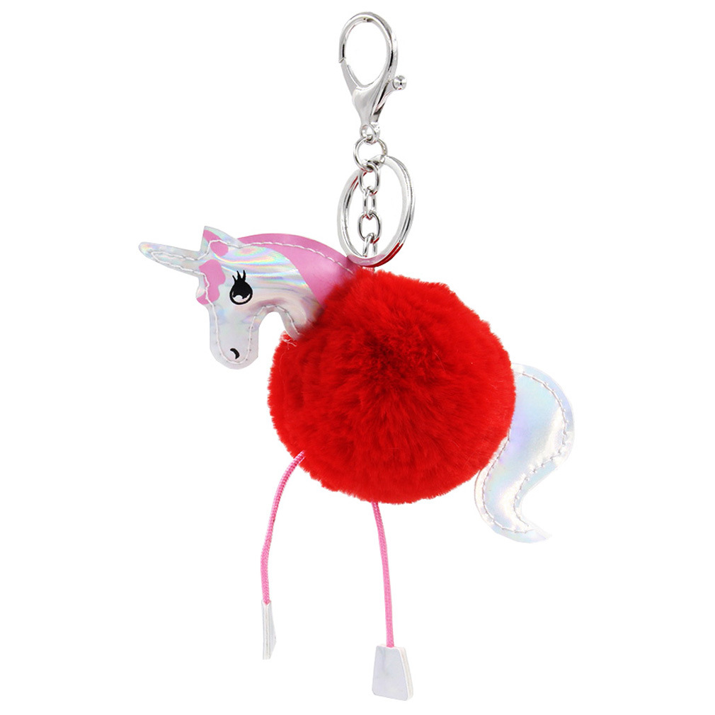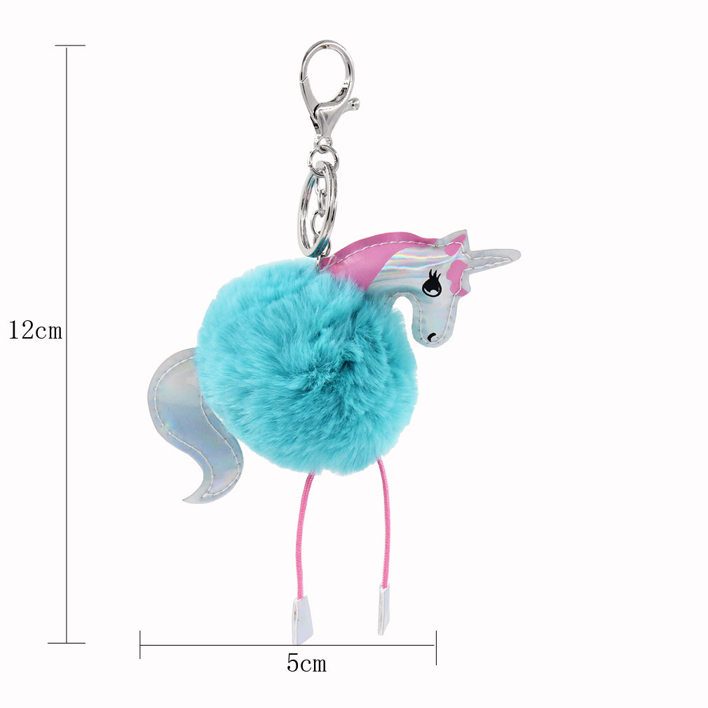 新款独角兽毛球钥匙扣时尚包包挂件卡通小马毛绒球汽车箱包配饰