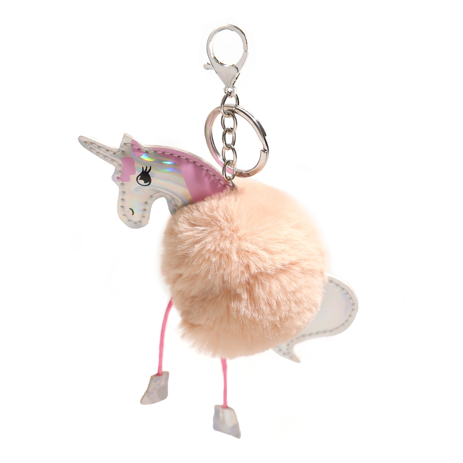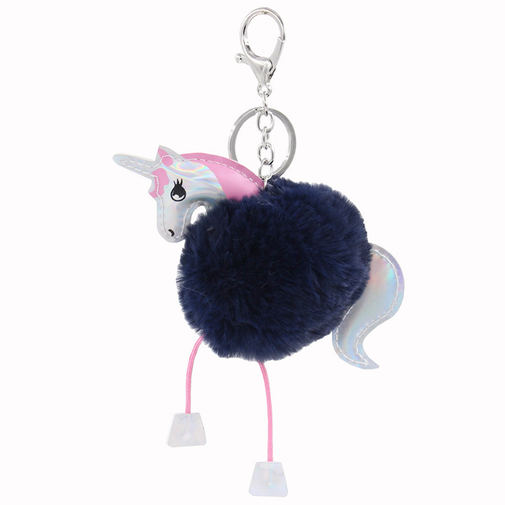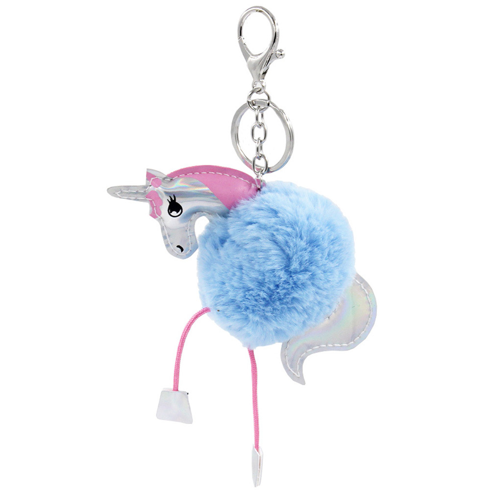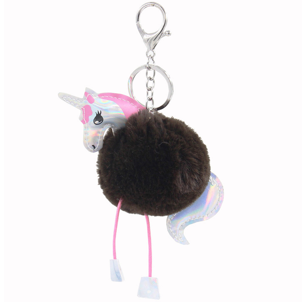 新款独角兽毛球钥匙扣时尚包包挂件卡通小马毛绒球汽车箱包配饰