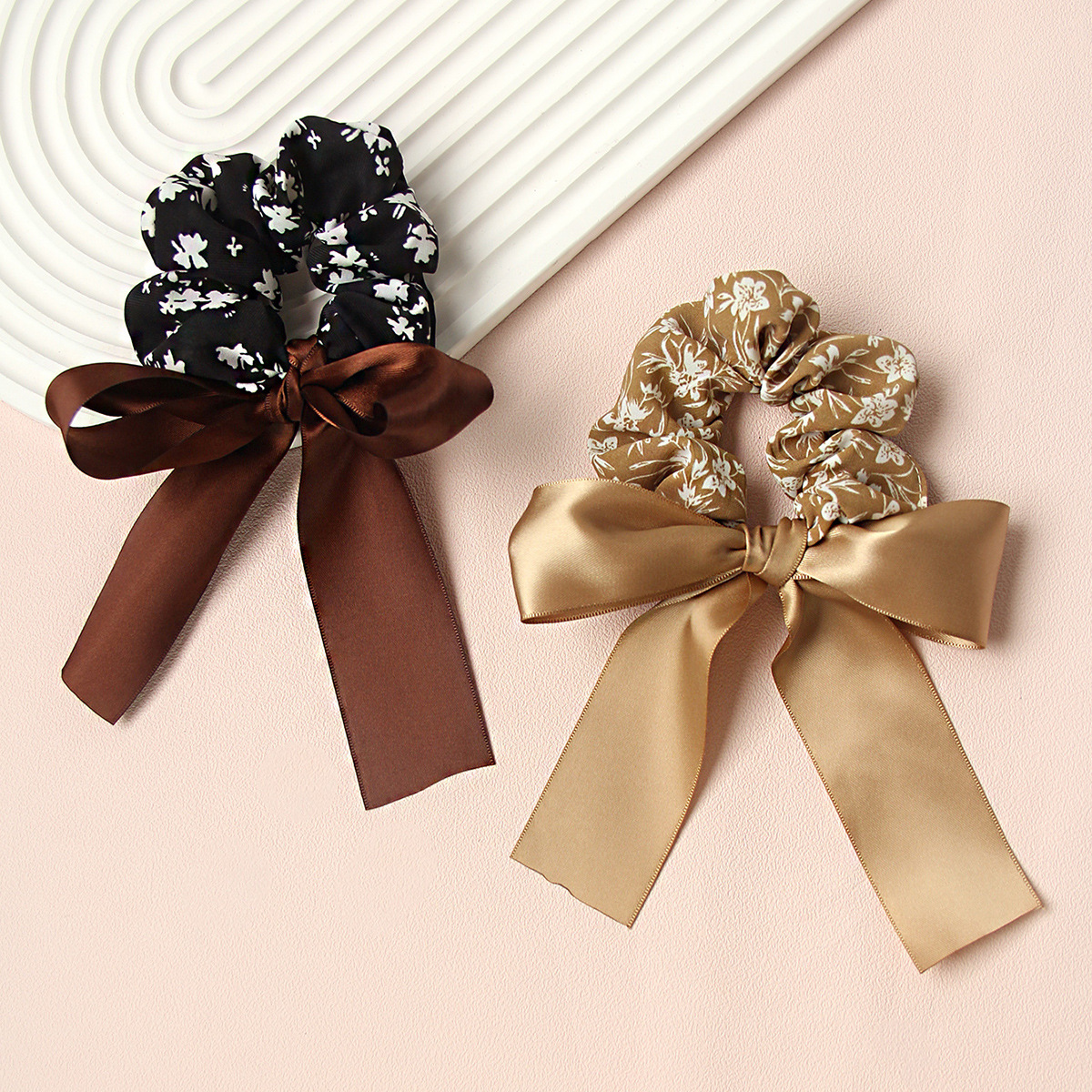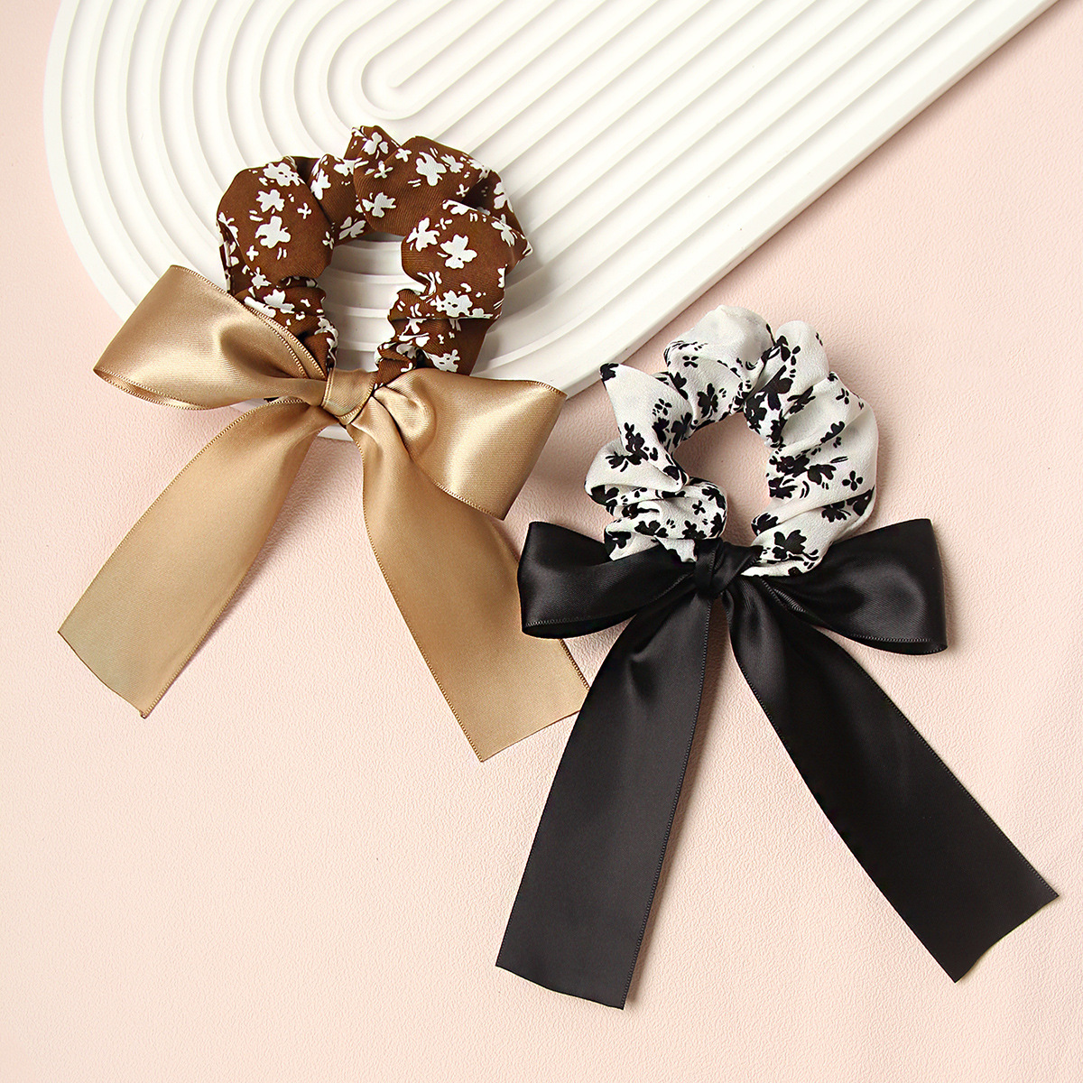 韩系布艺碎花蝴蝶结缎带发圈绑马尾头绳甜美少女半扎发头饰
