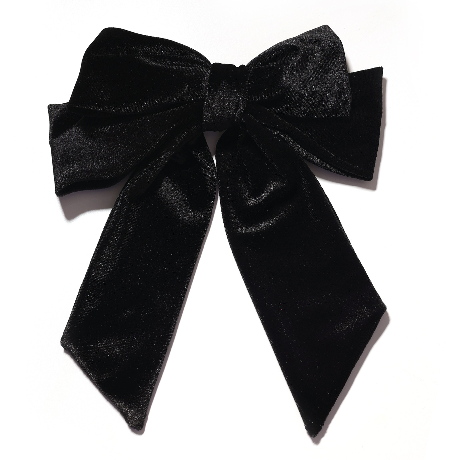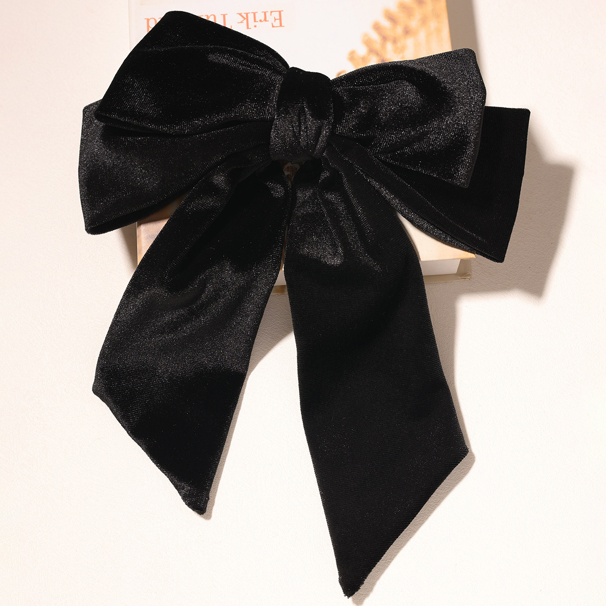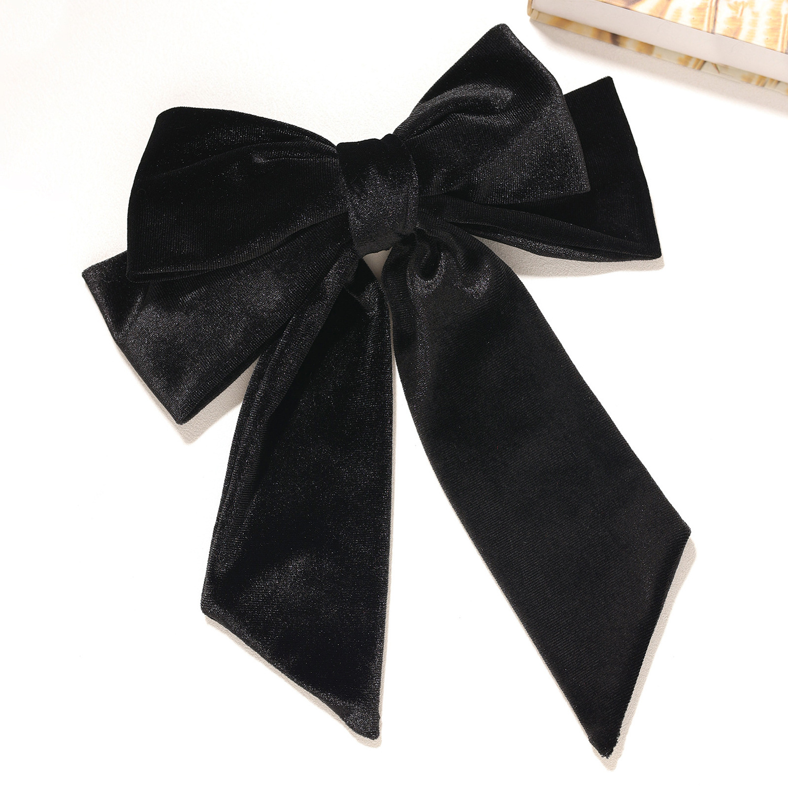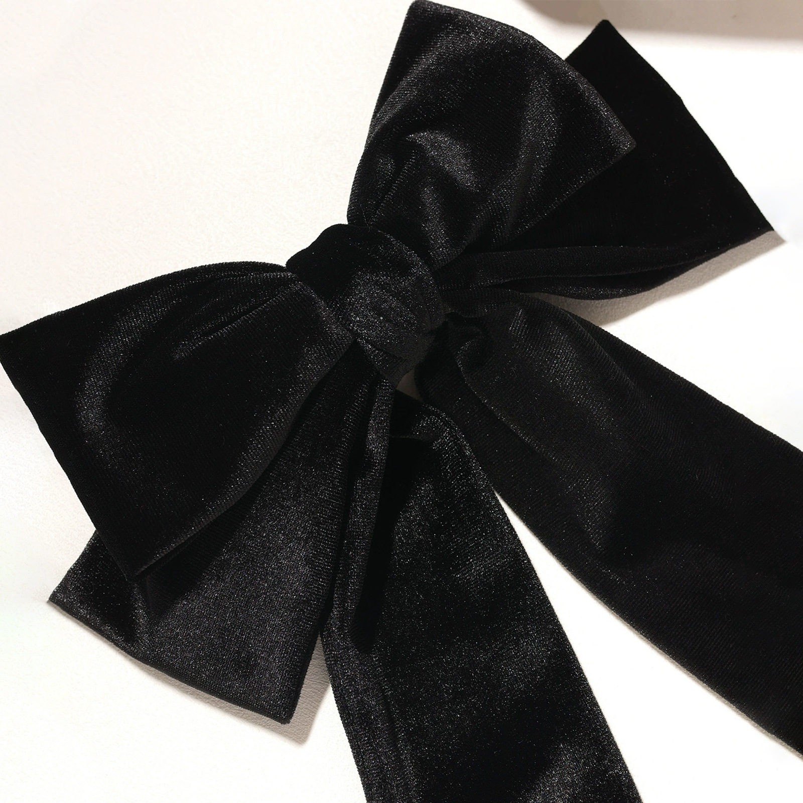 复古法式绒布双层蝴蝶结弹簧夹高级感纯色后脑勺半扎发马尾夹头饰